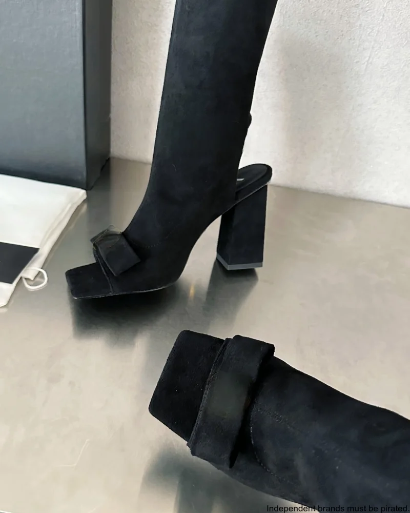 Handmade Women's Winter Over-the-Knee Leather Boots with High Heel VER Shoes-Genuine Leather Waterproof Feature