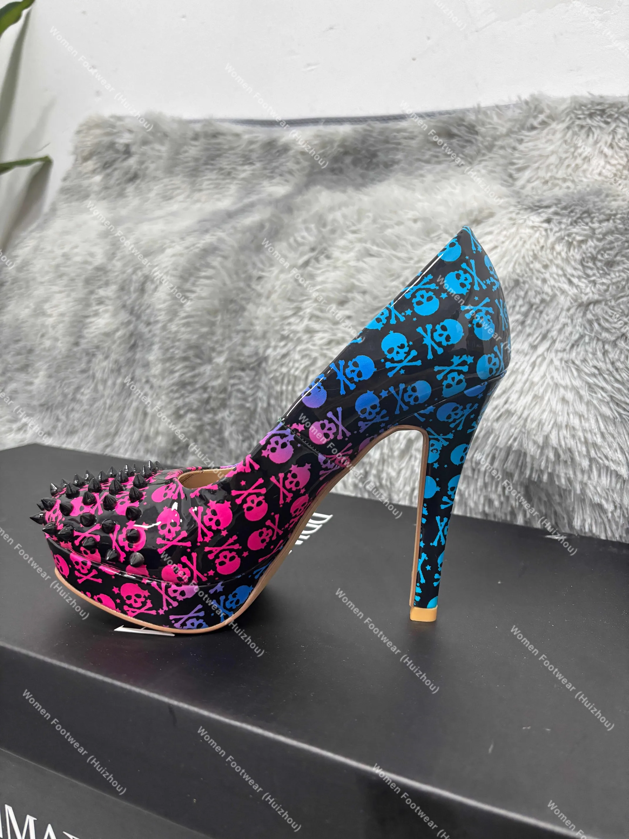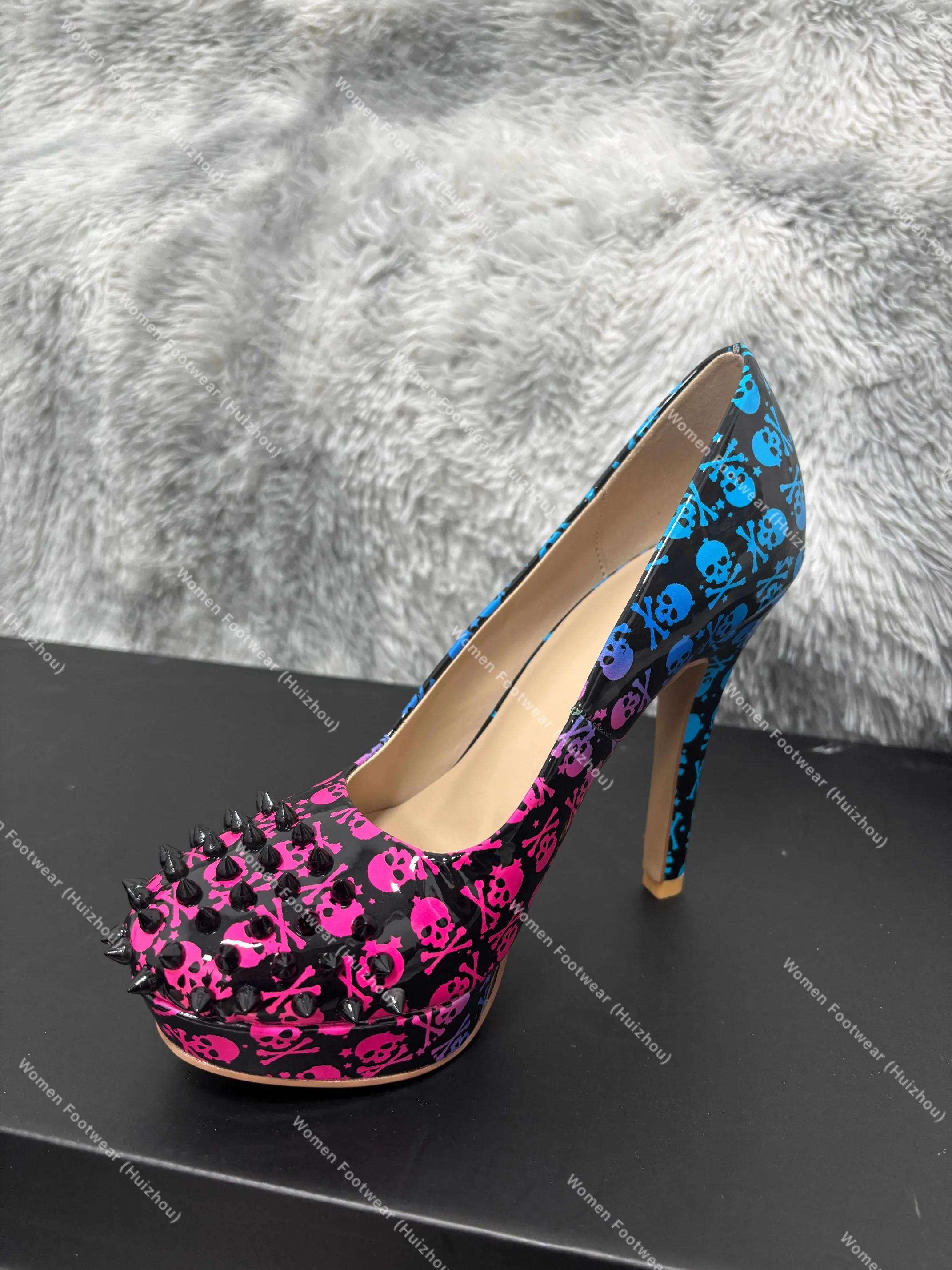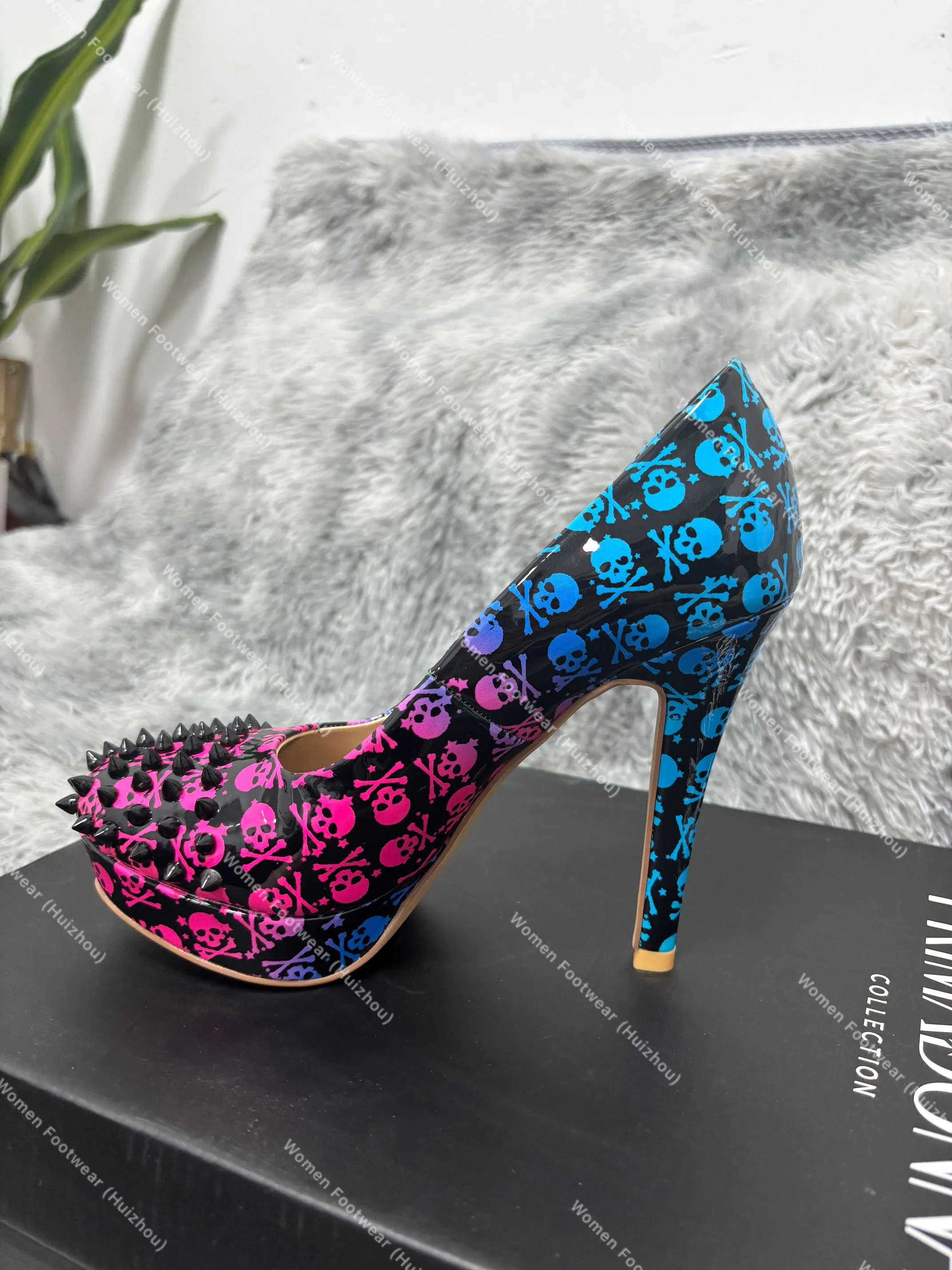 European American Gothic Customized Super High Heels Pumps Water Table Rivet Skull Design Please Contact Merchant for Order