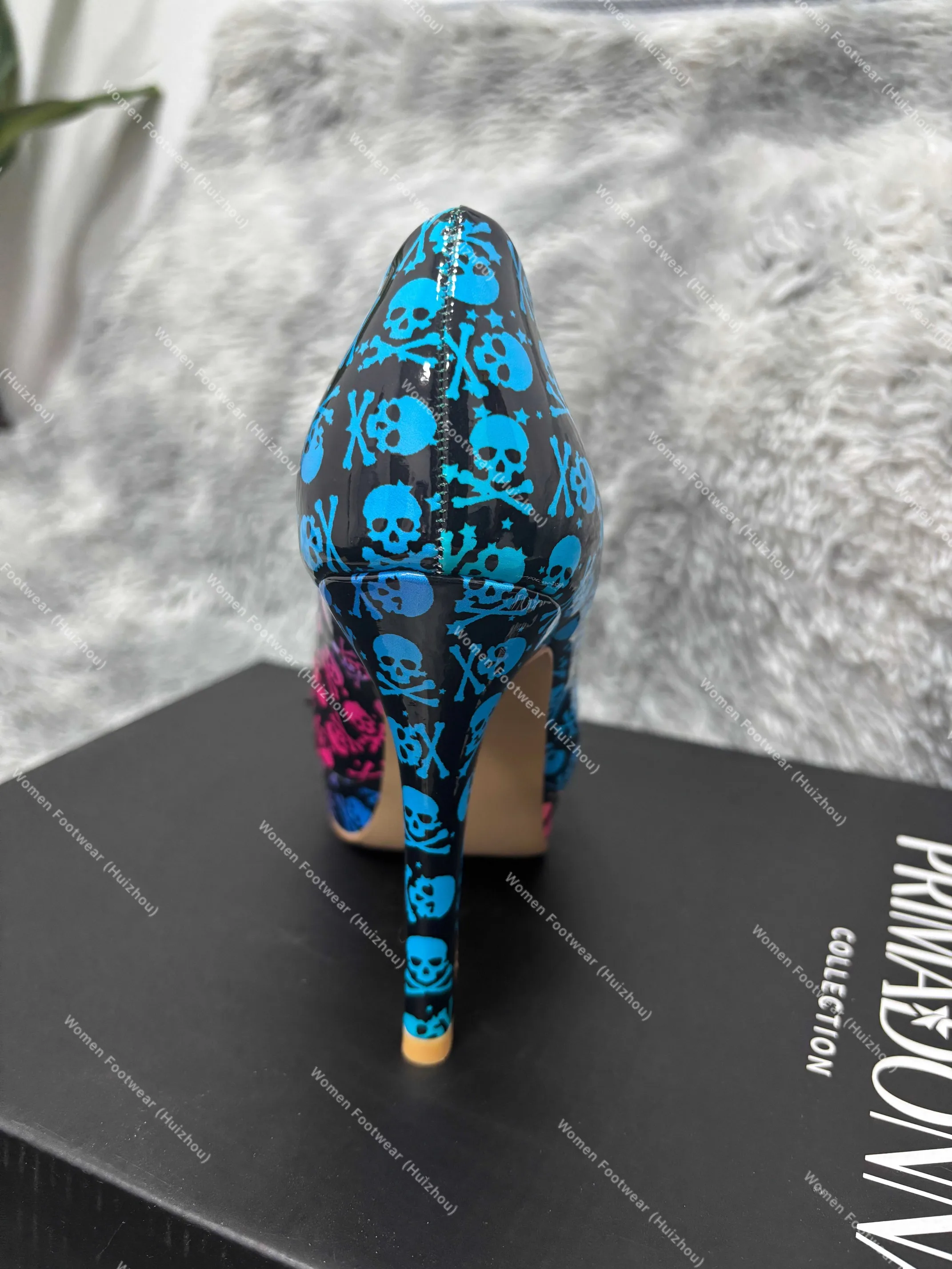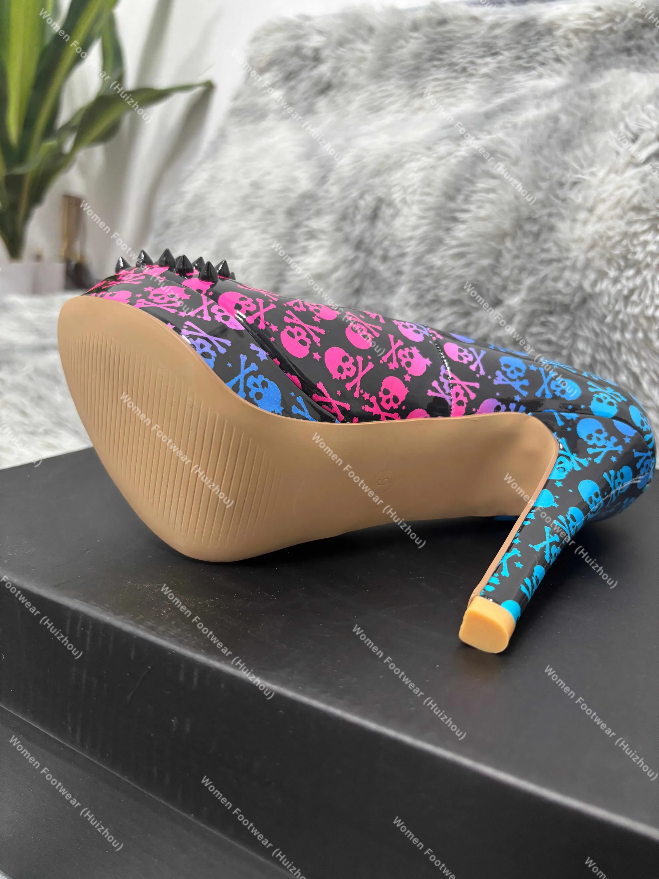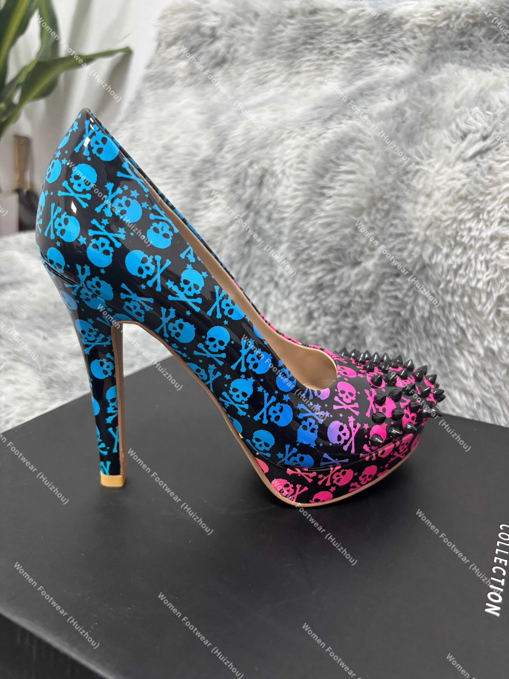 European American Gothic Customized Super High Heels Pumps Water Table Rivet Skull Design Please Contact Merchant for Order