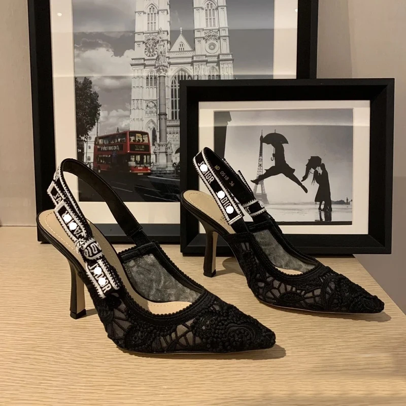 D Letter Lace Sandals for Women - 2025 Sexy Breathable Butterfly Cat-Topped Shoes - Dark Black - Versatile Basic Sandals