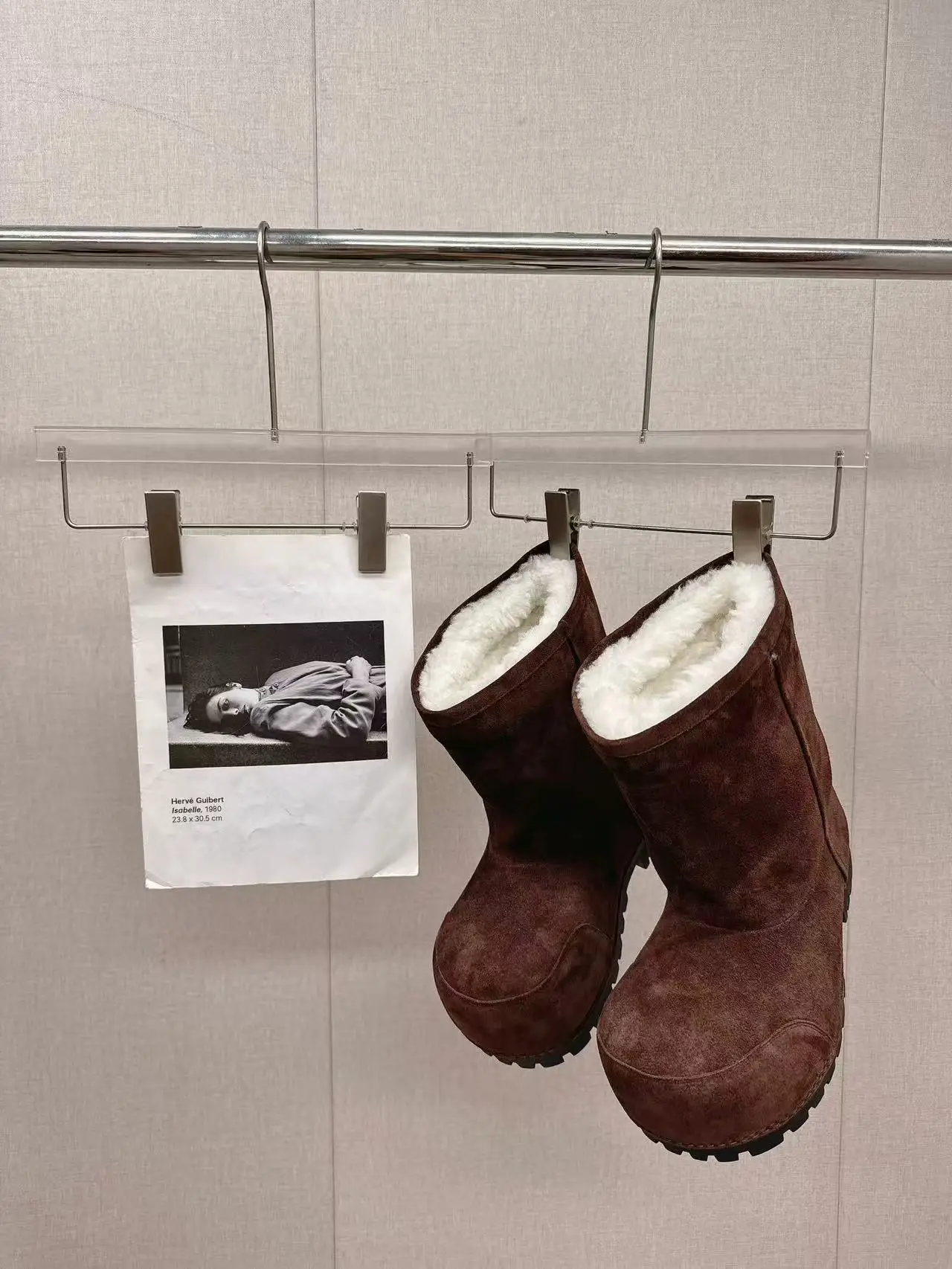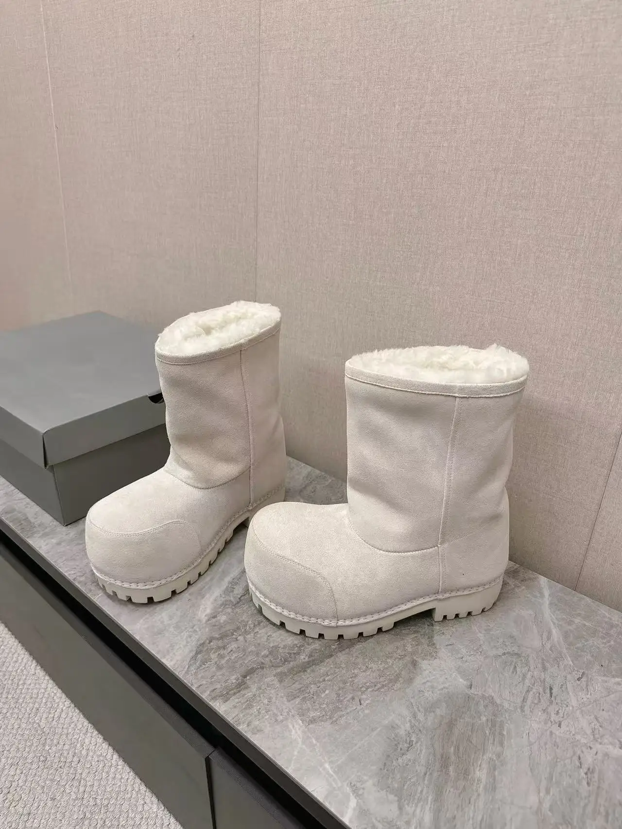 2025 Designer Winter Snow Boots Shoes for Women Cowhide Suede Cute Big Toe Thick-Soled Height-Increasing Breathable Boots