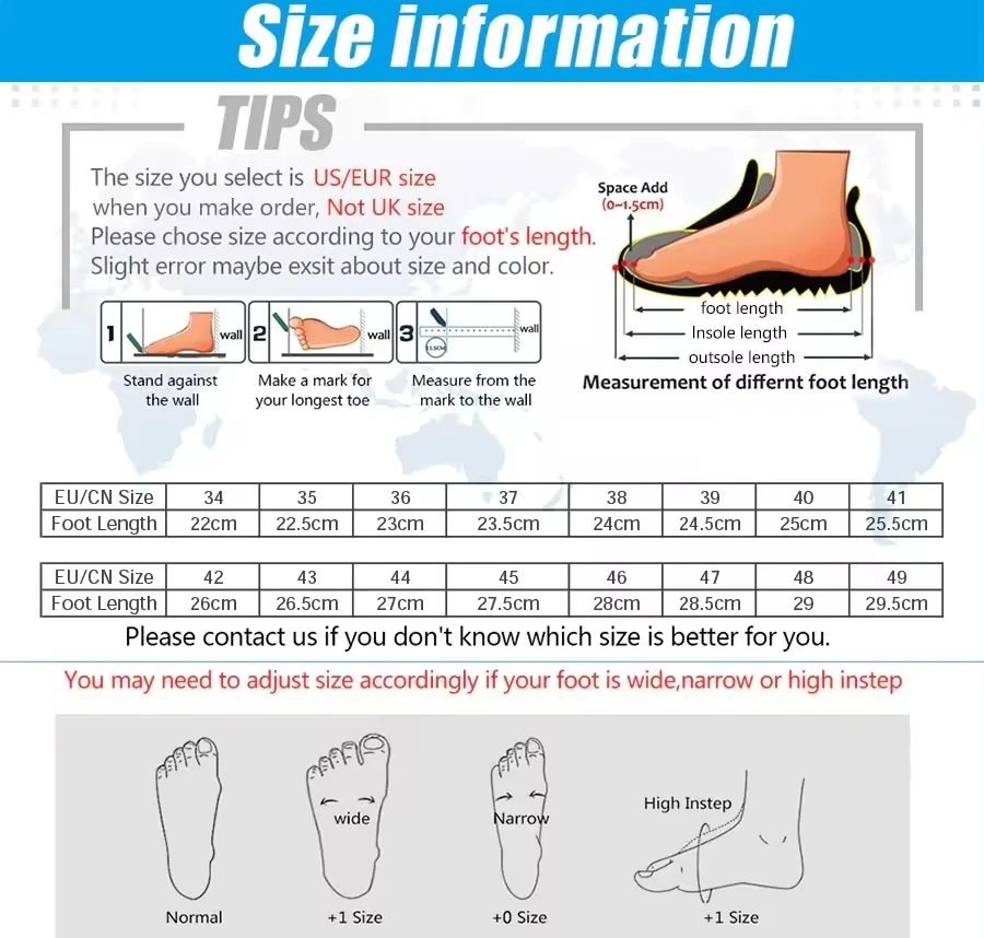 Q:How can I start the order? A:Just click the “start to order”on your phone or send the inquiry to us,then we could help you to make the order. Q:How can I choose the US/UK size? A:The size chart at the top please find.you could choose the correct size according the feet length. Q: What’s your payment term? A: We accept T/T, Paypal, western union account and L/C. Q. What about the delivery time? A:Usually the delivery time for ready style is 7 days, for custom style with small quantity is 15 to 25 days, bulk order is 30 to 40 days. It can be negotiated if have special requirements.shape,size,material,color,packing Q: What’s the sample policy? A: It takes 7-10 days to make the sample and send out. You can choose our existing styles or provide us the sketch to proceed withsample.Sample fee will be charged and it’s refundable when production.