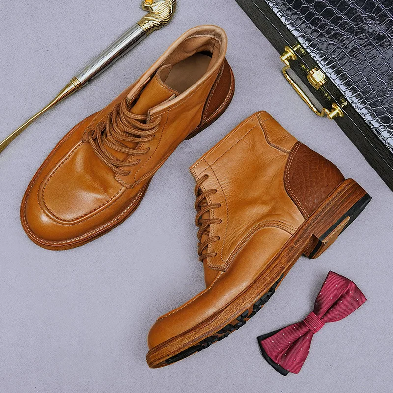 Durable and comfortable leather shoes, handcrafted minimalist cowhide boots, washable genuine leather boots
