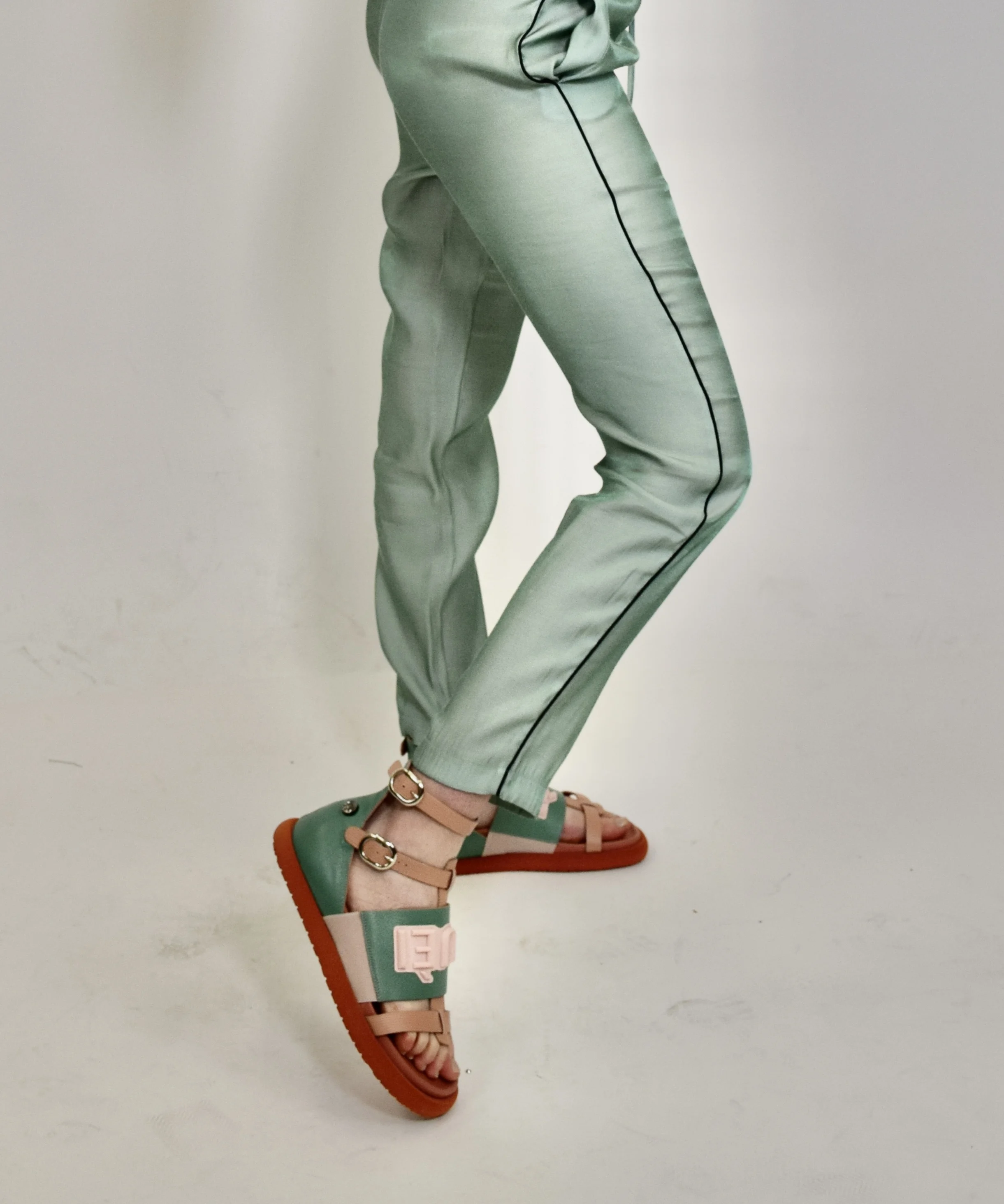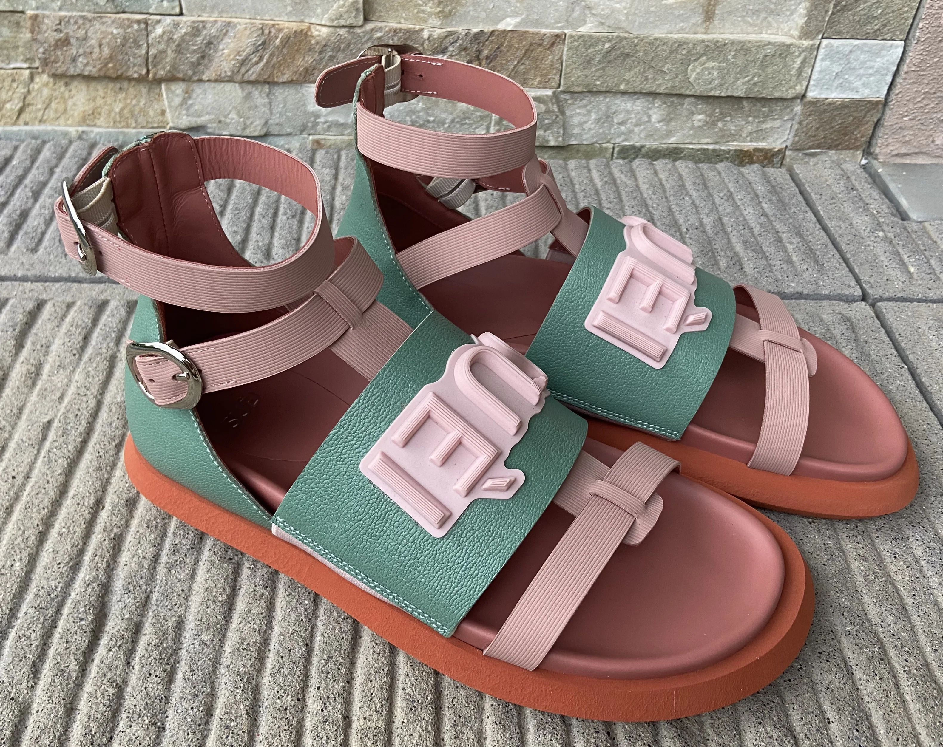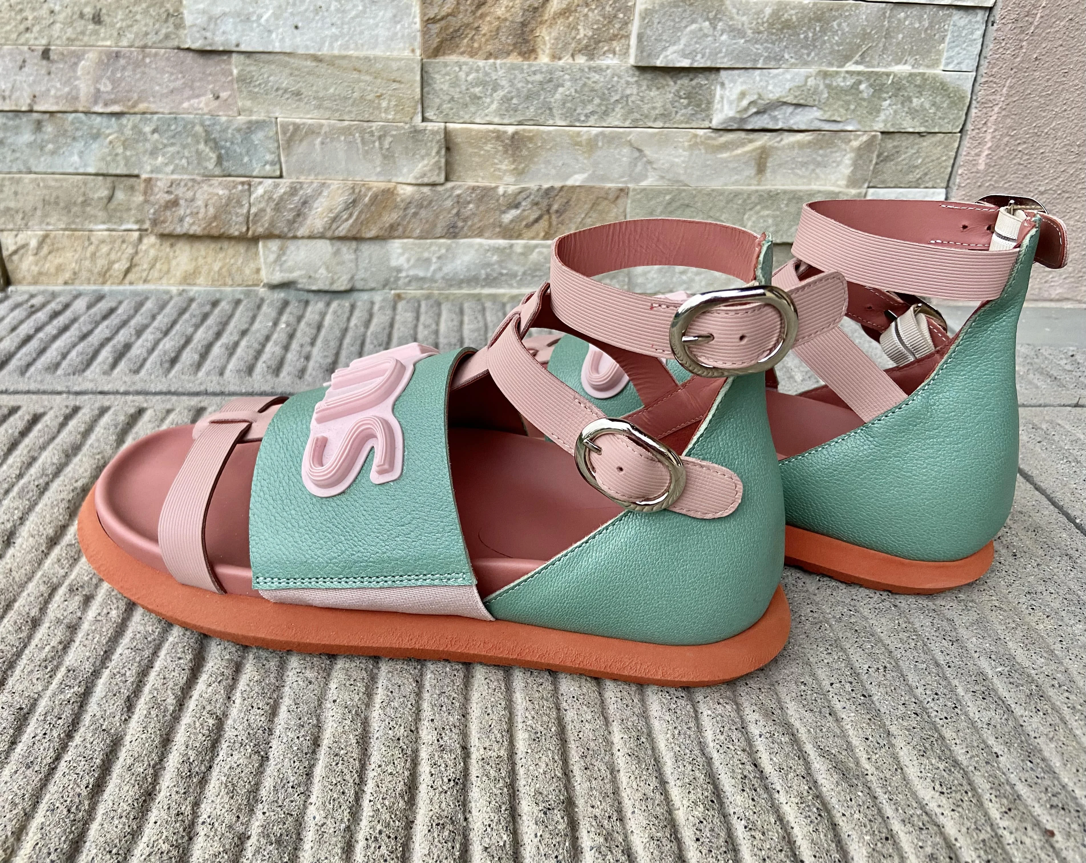 Top Quality Made in Italy Leather Two Tones Light Pink and Tiffany Color Comfortable Flat Shoes Fashion Sandals
