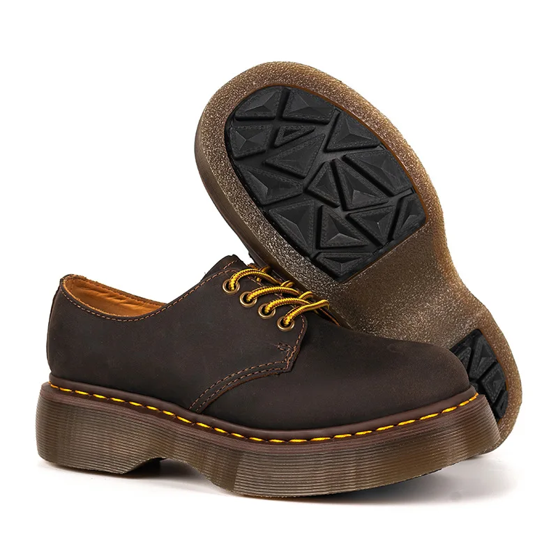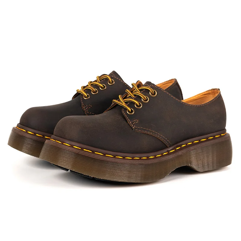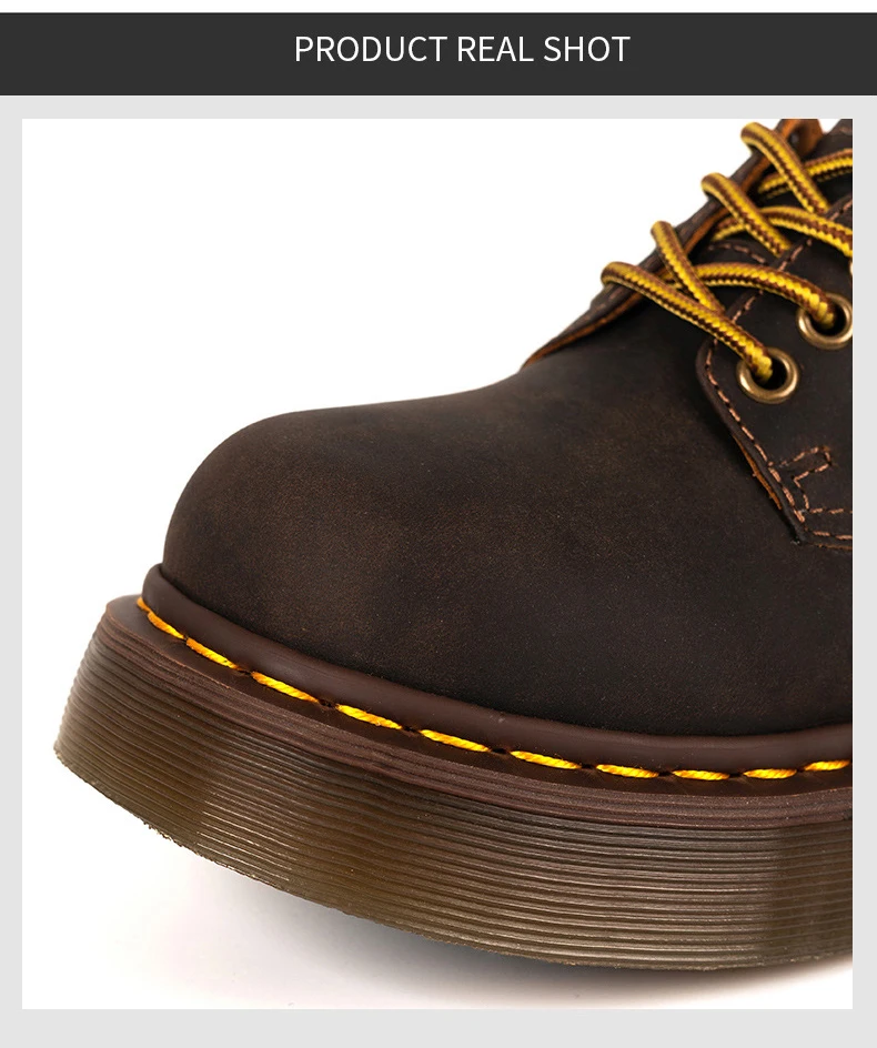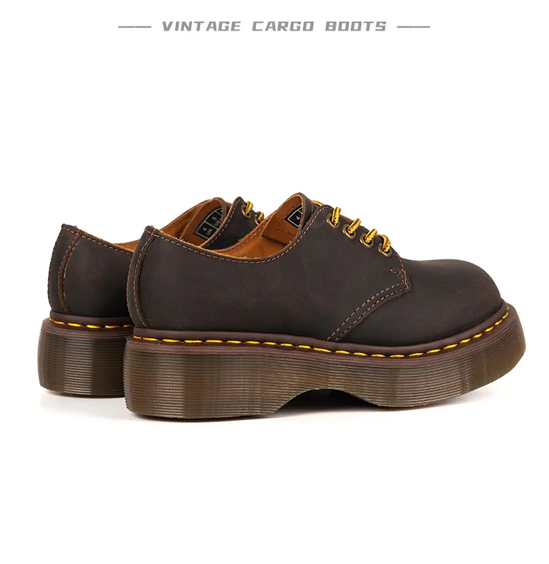 Dropshipping Custom Logo British Style Unisex Genuine Leather Vintage Boots Casual 5CM Thick Soled Cowhide Handmade Walking Shoe
