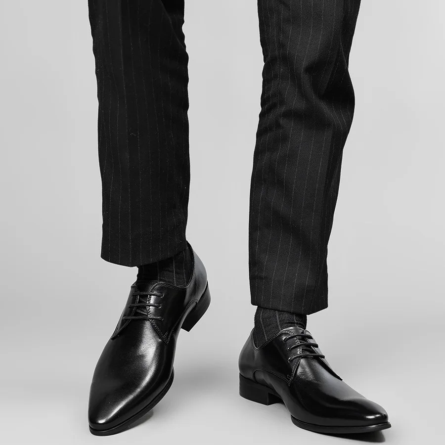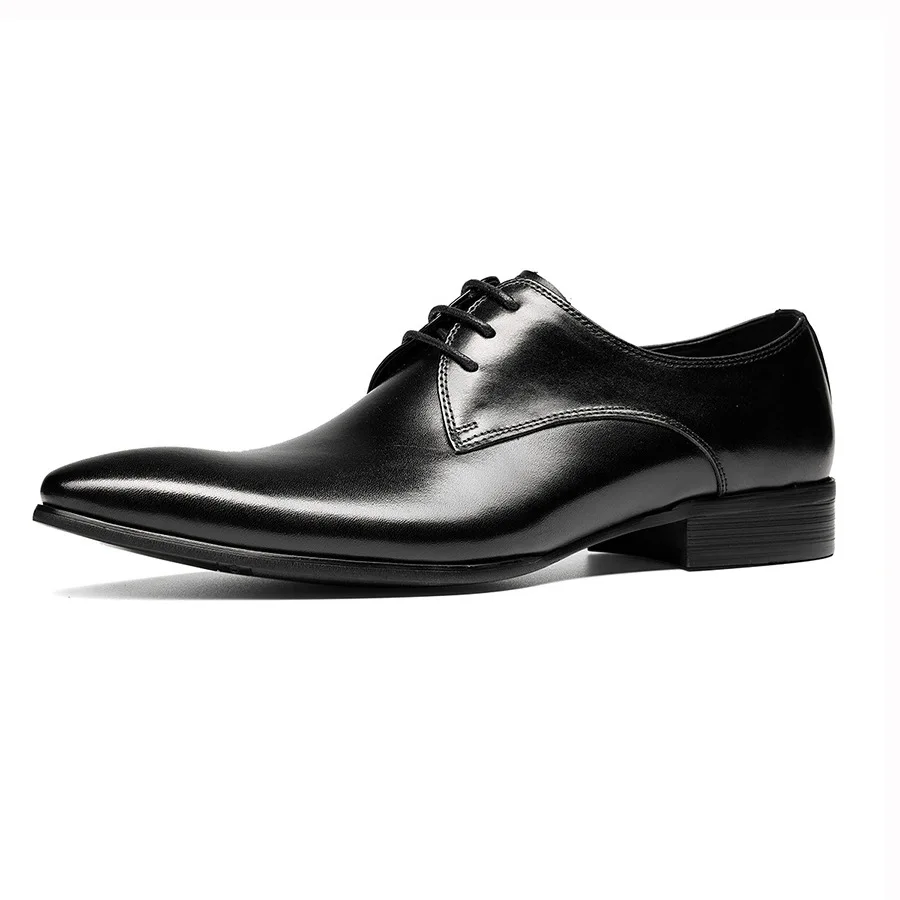 Pointed-toe shoes for men in business formal wear, Derby style, black, high-end genuine leather, wedding groom shoes