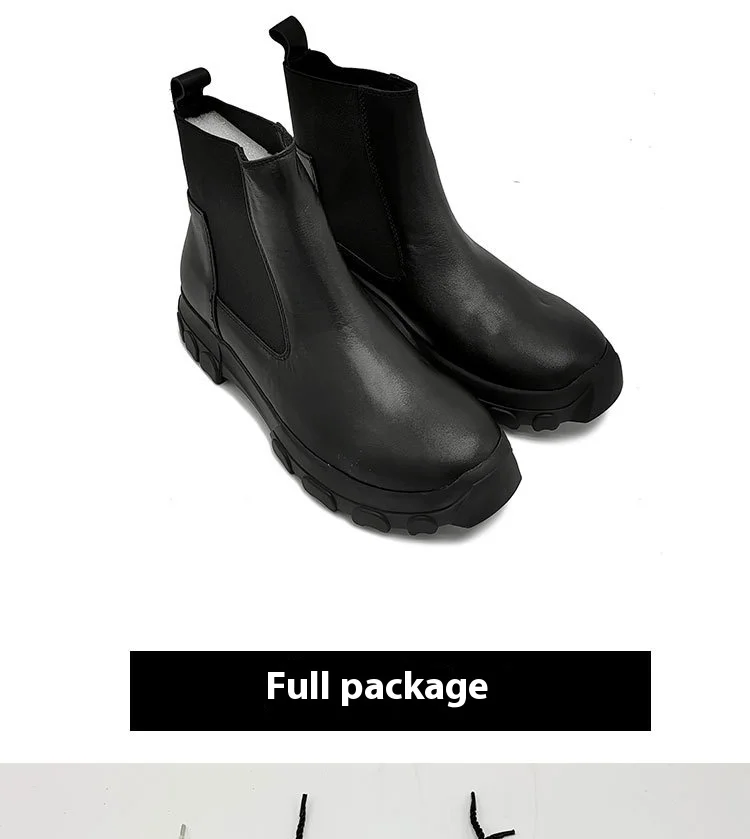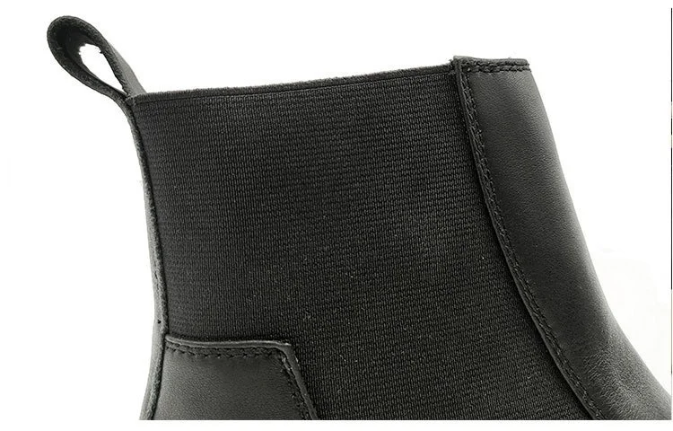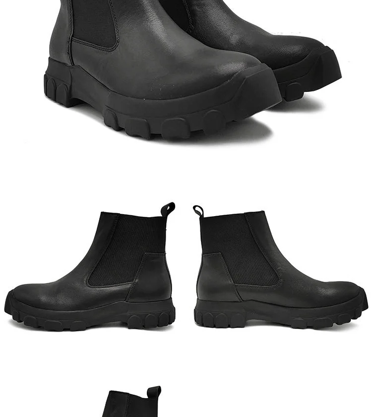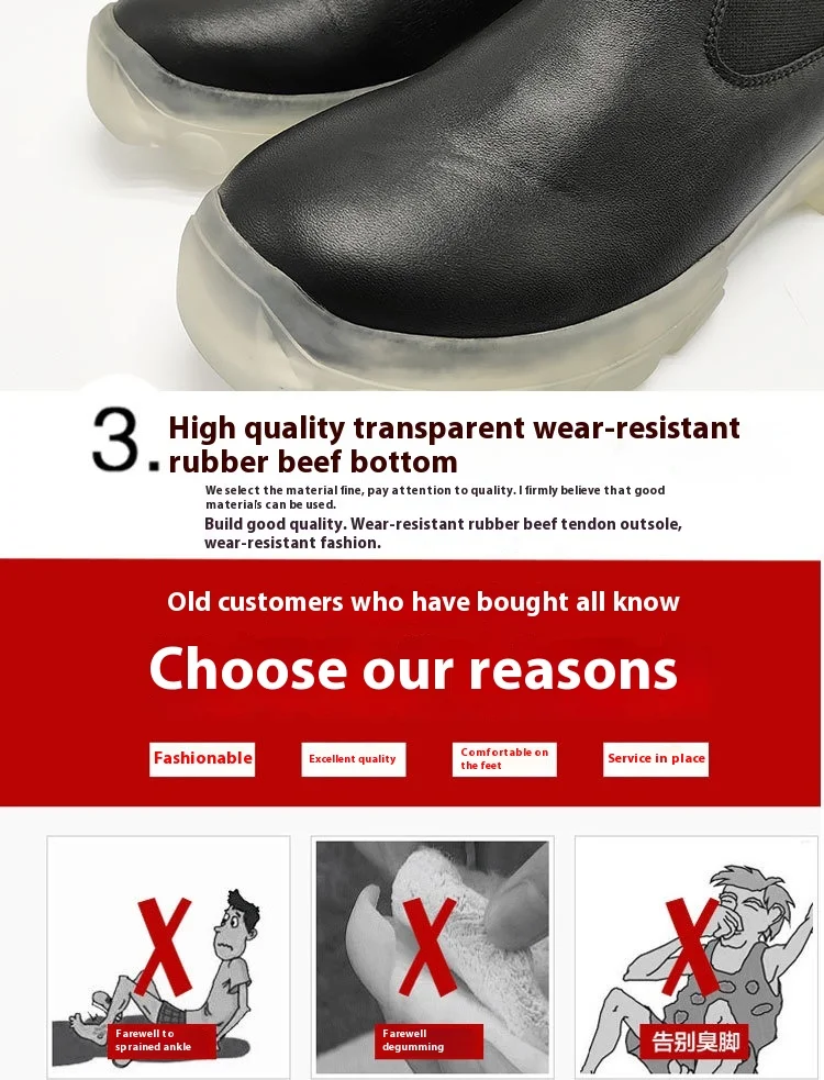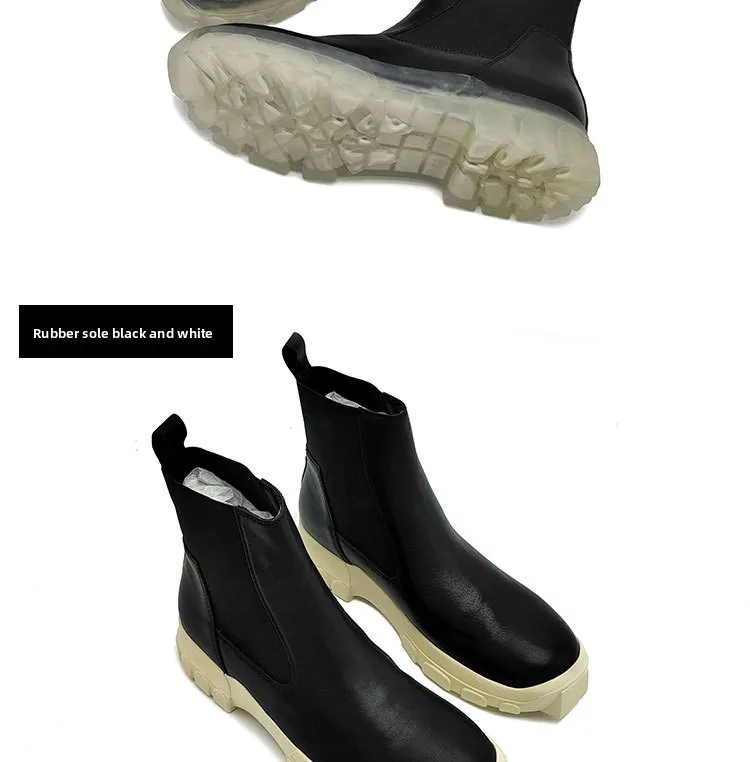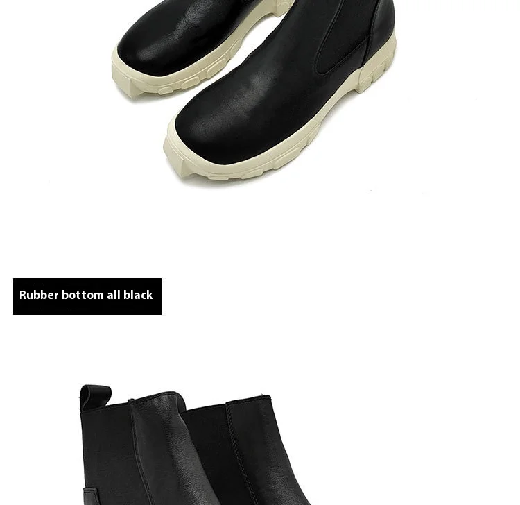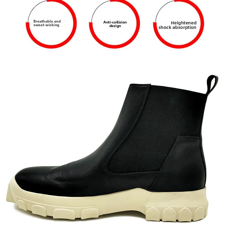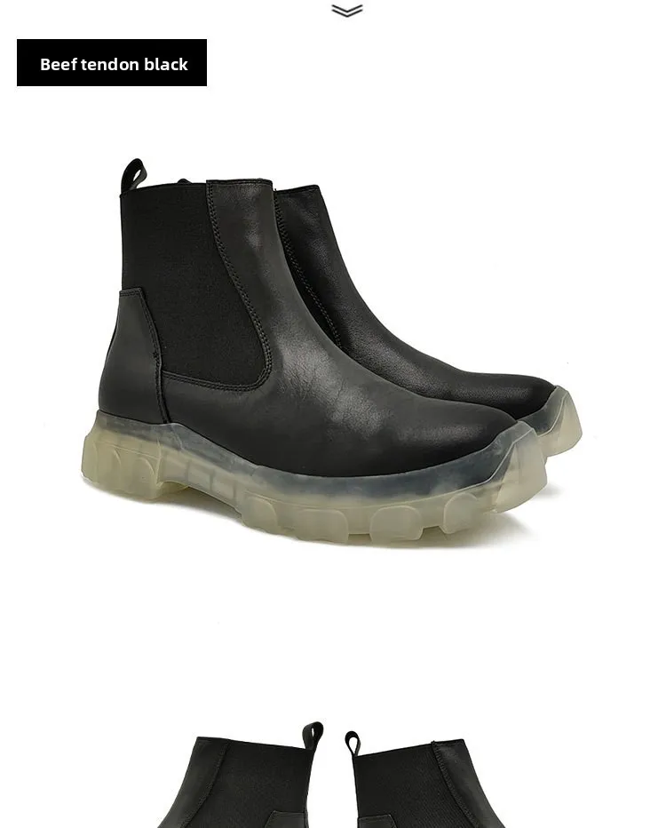 European American Men's High-Top Chelsea Boots Fashion Casual Chunky Top-Layer Cowhide for Martin Shoes Autumn Slip-On Closure