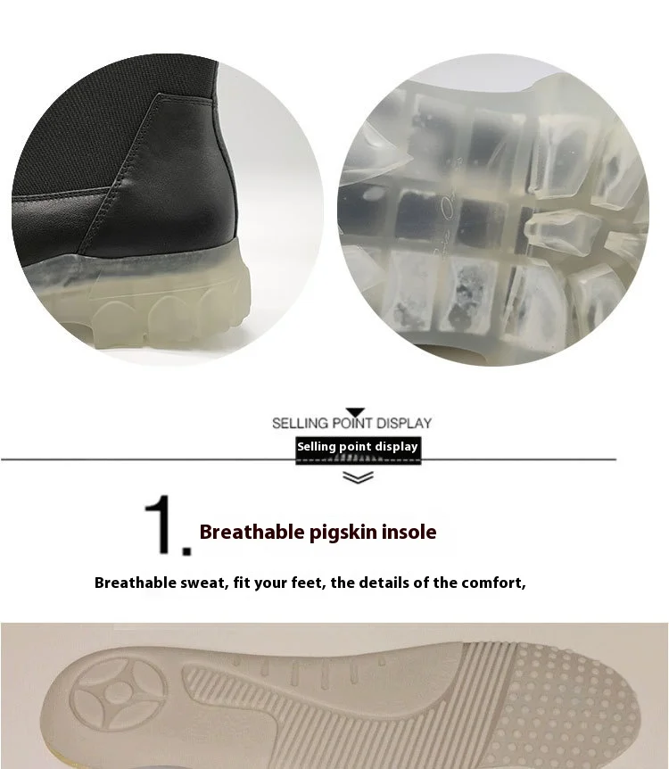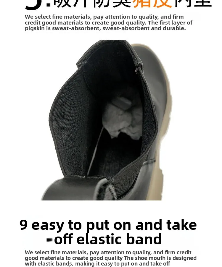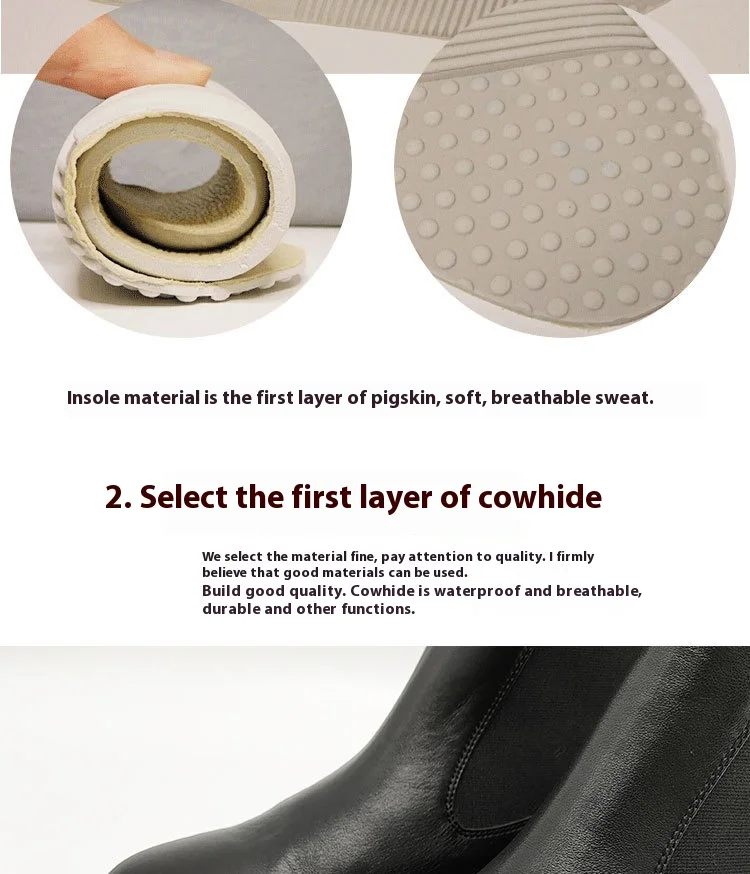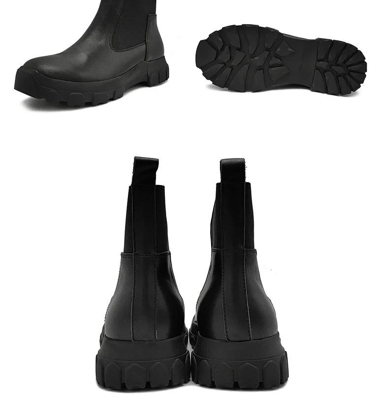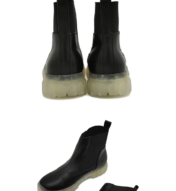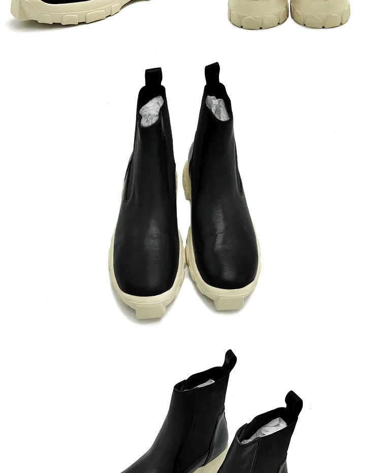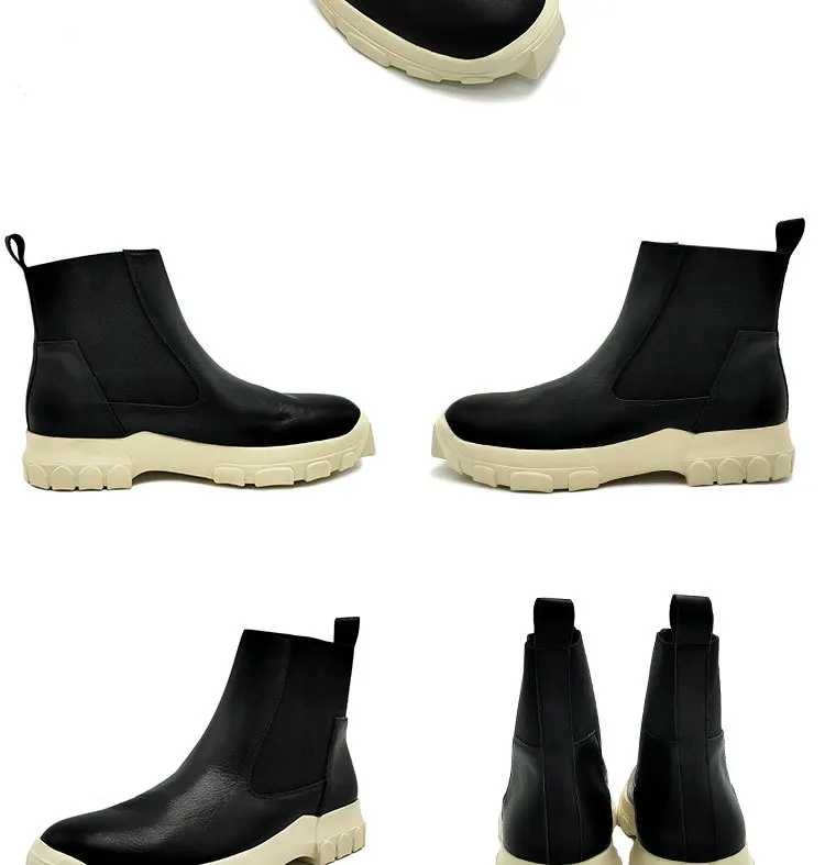European American Men's High-Top Chelsea Boots Fashion Casual Chunky Top-Layer Cowhide for Martin Shoes Autumn Slip-On Closure