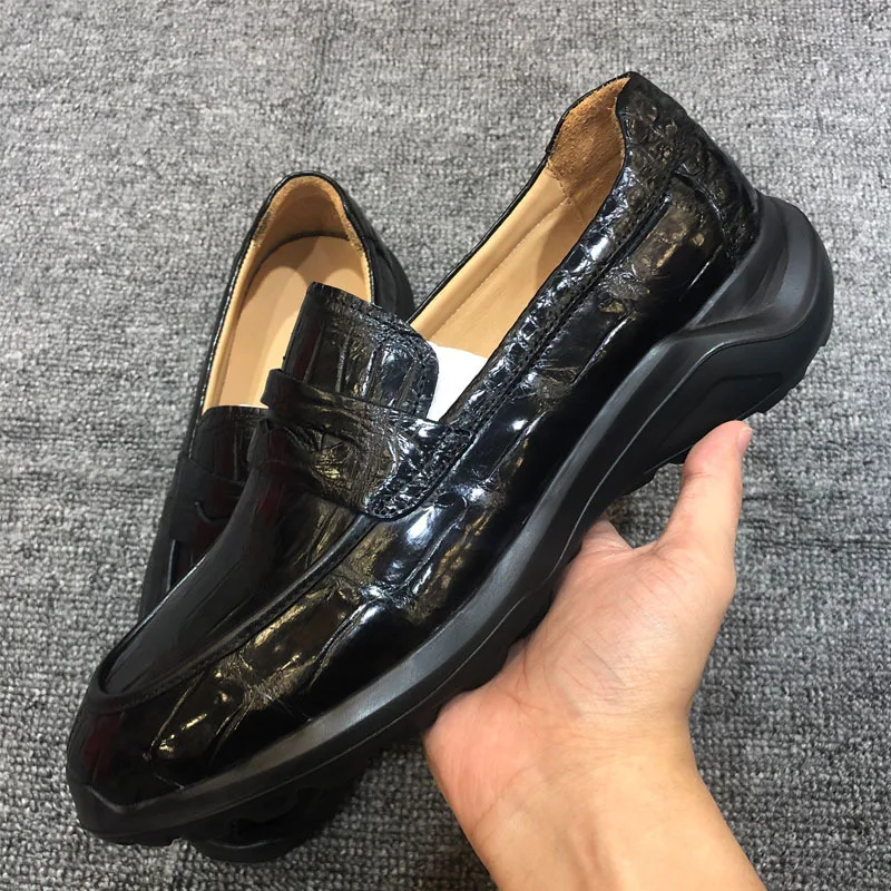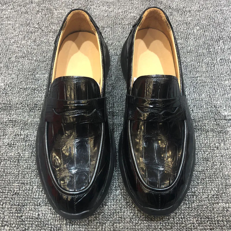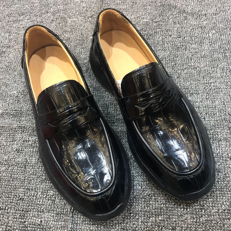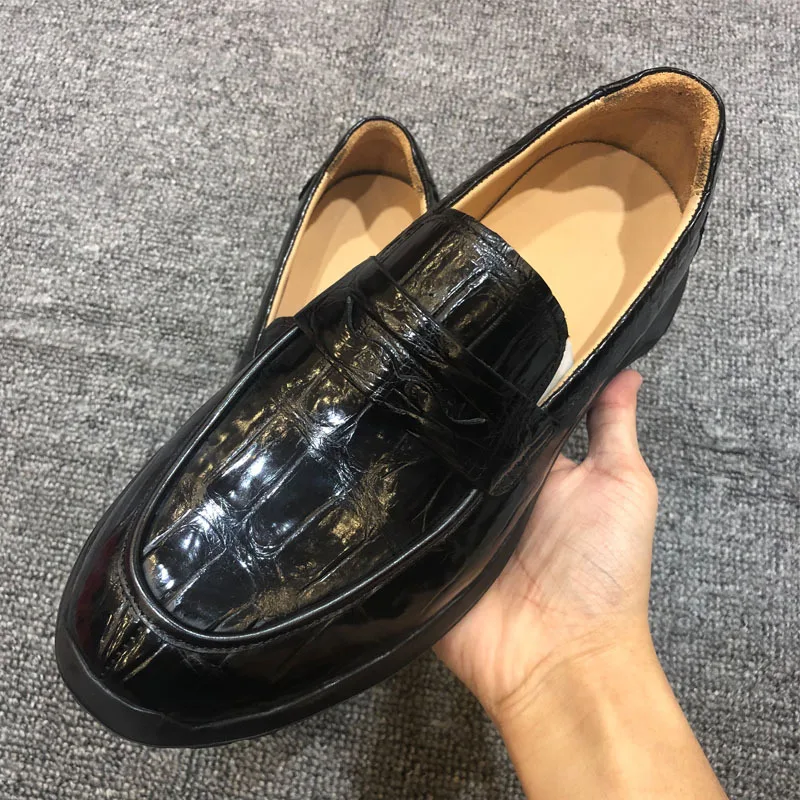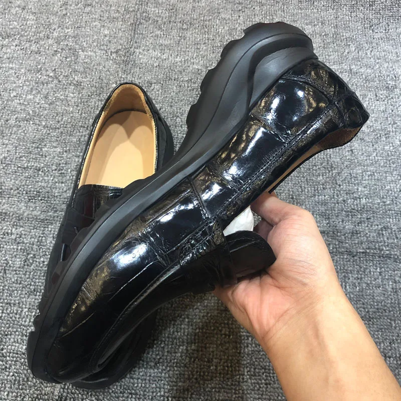 Crocodi Le Leather Casual Shoes Men's Black Real Crocodi Le Belly Leather Men's Shoes Slip-on Wear-Resistant Leather Shoes