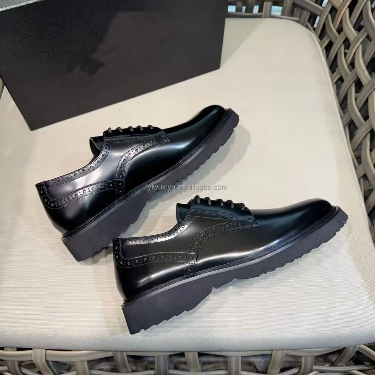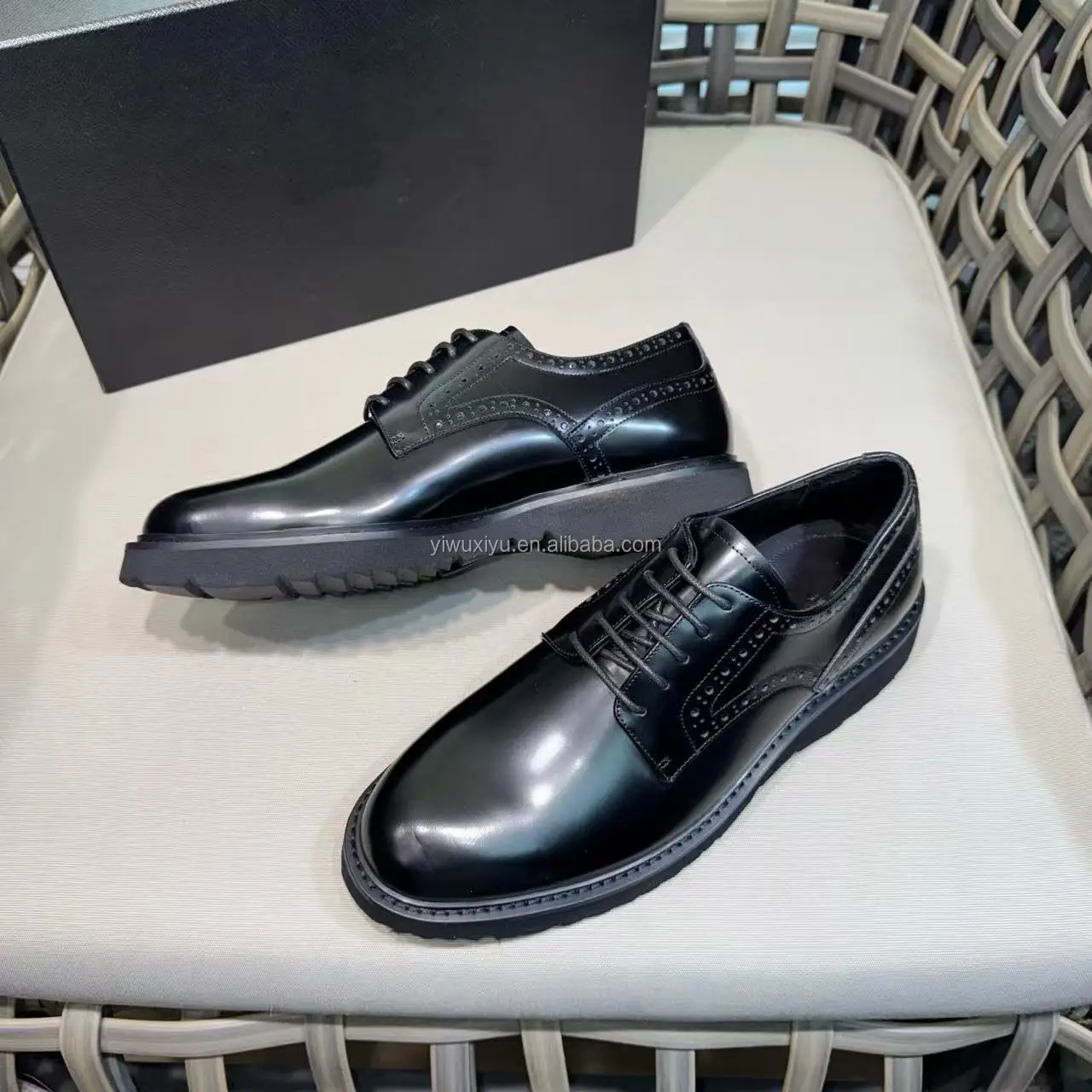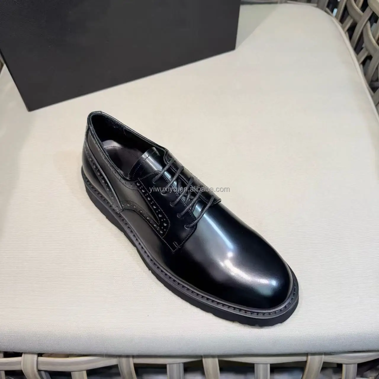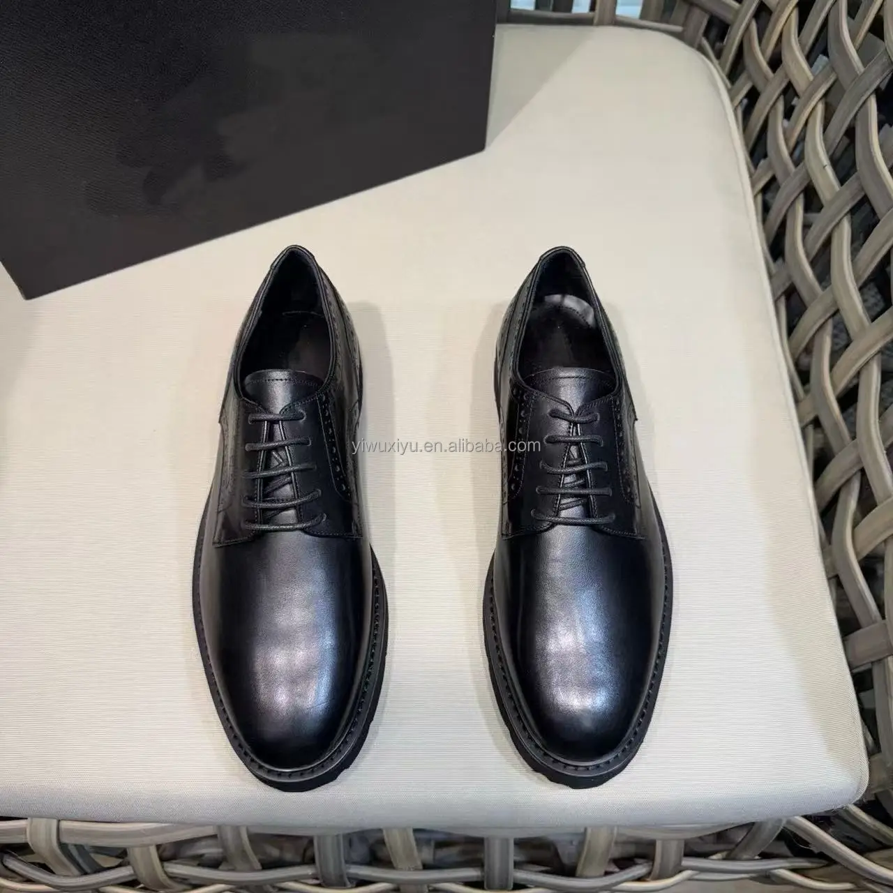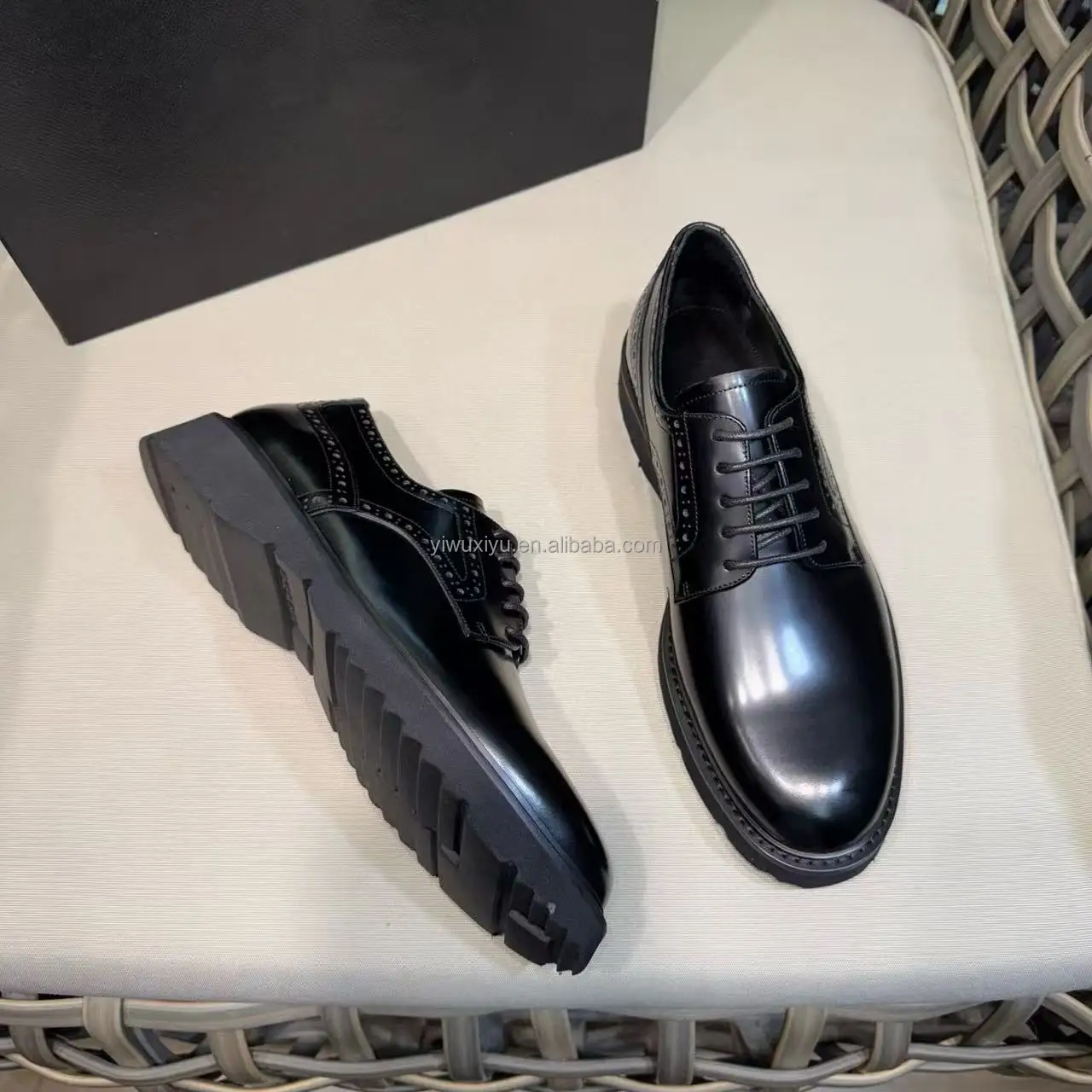 New High-quality Men's Leather Shoes, Thick-soled Casual Round-toe Business Shoes