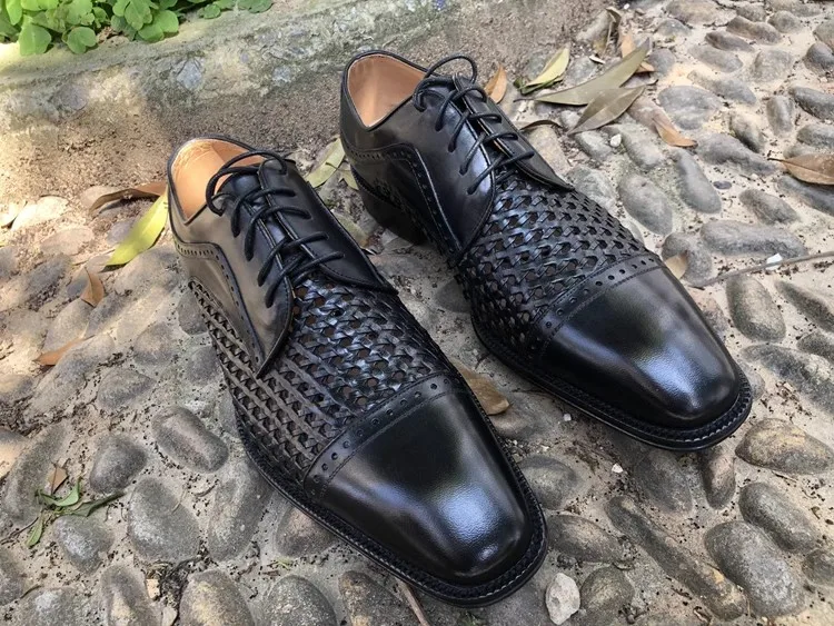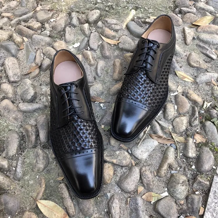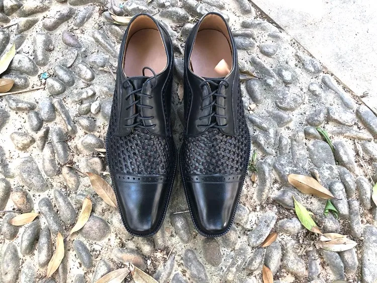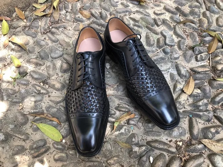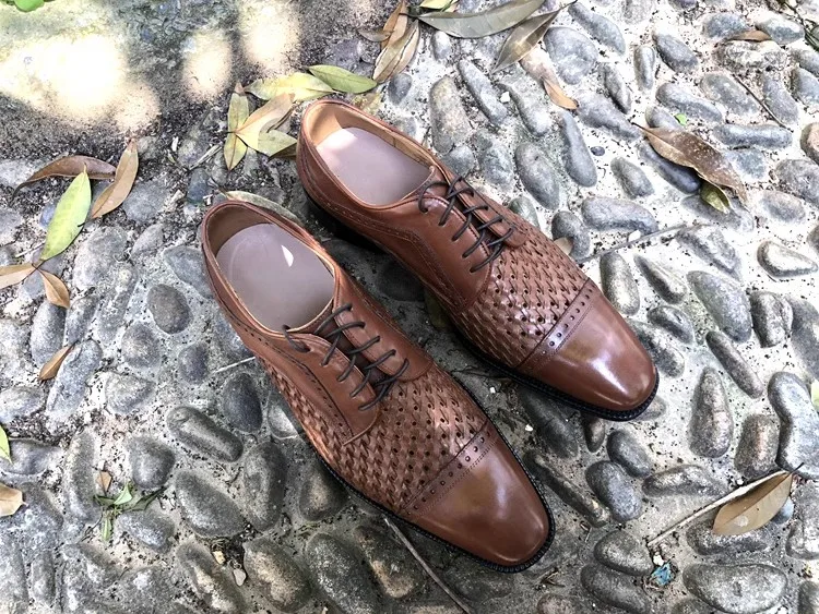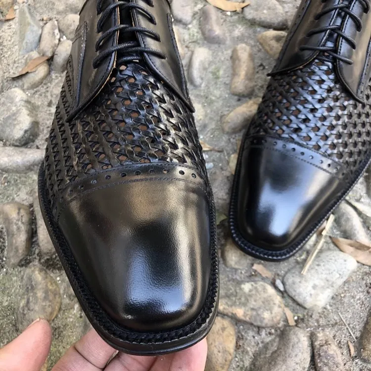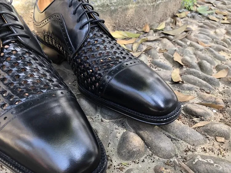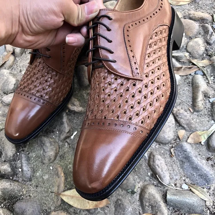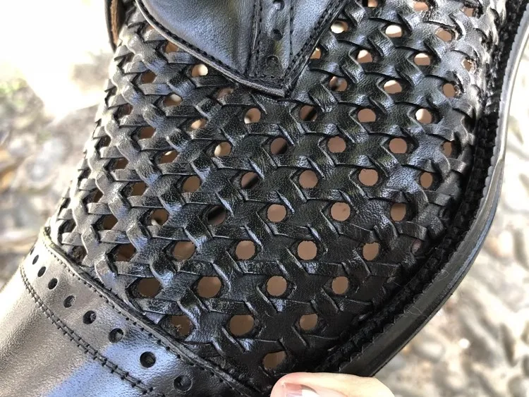 Full Brogues Blake Custom Handmade Shoes Summer Cowhide Sandals Hollow Breathable Woven Business Leather Sole Dress Shoes