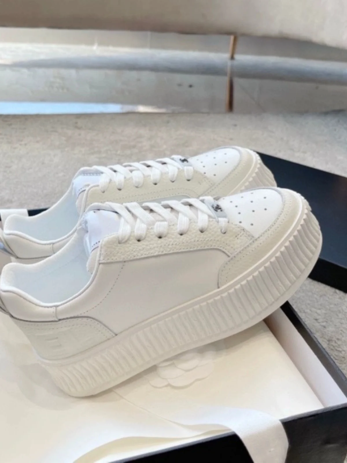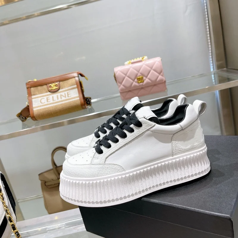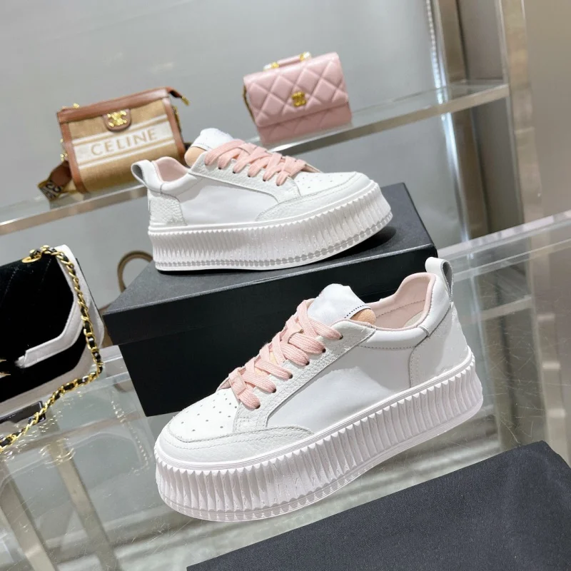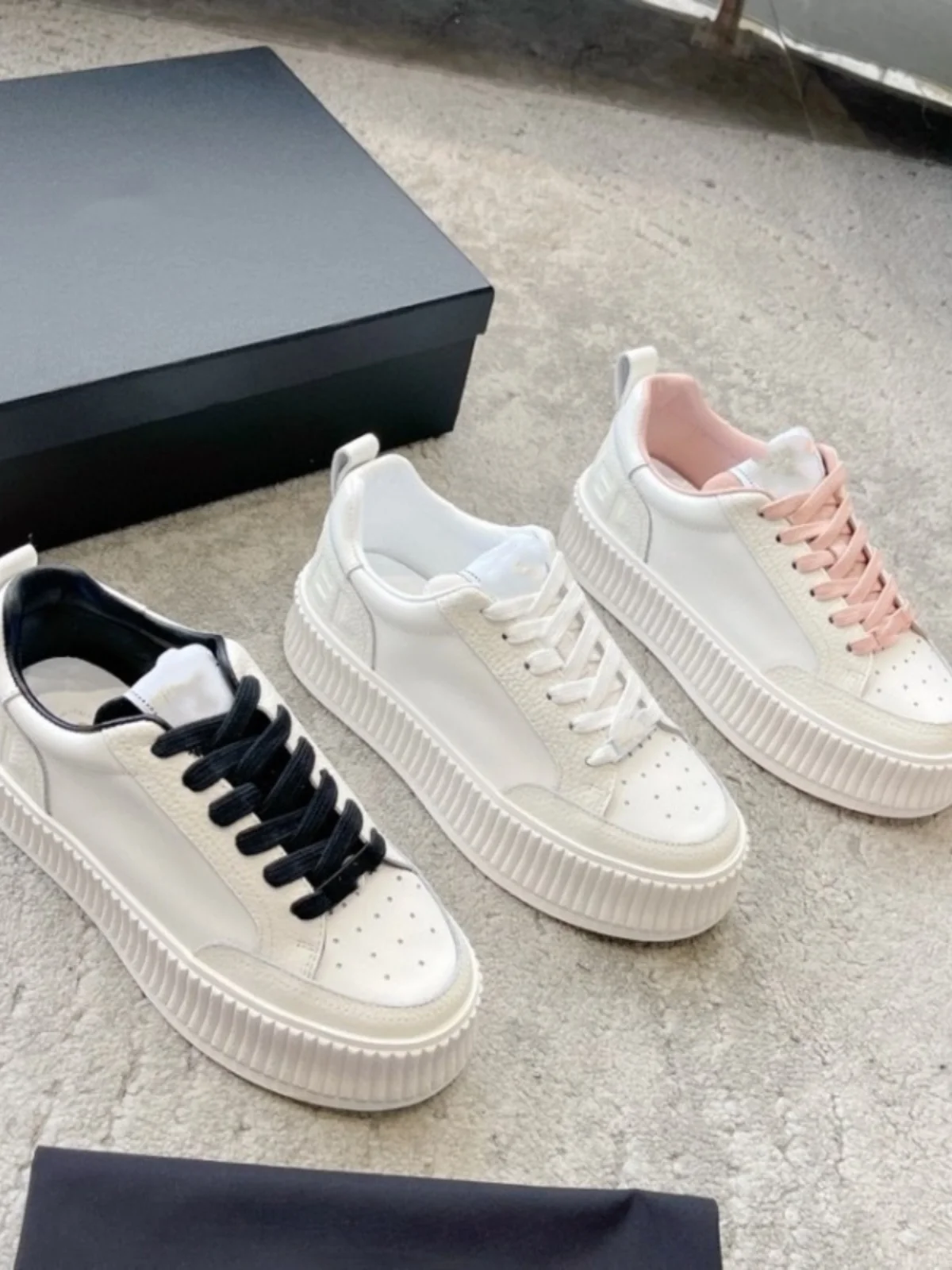 New Genuine Leather Thick-soled Sponge Board Shoes Are Fashionable and Versatile Thick-soled Sports and Casual Cookie Shoes