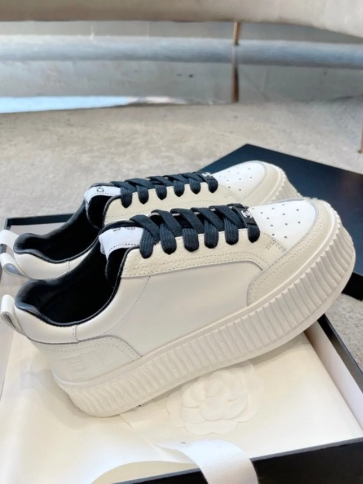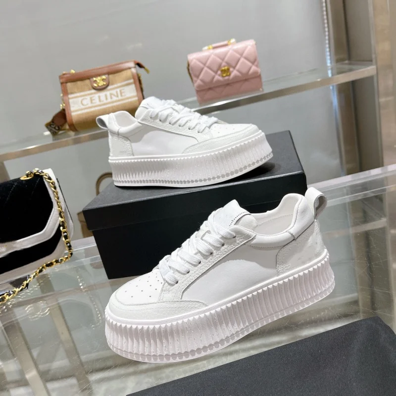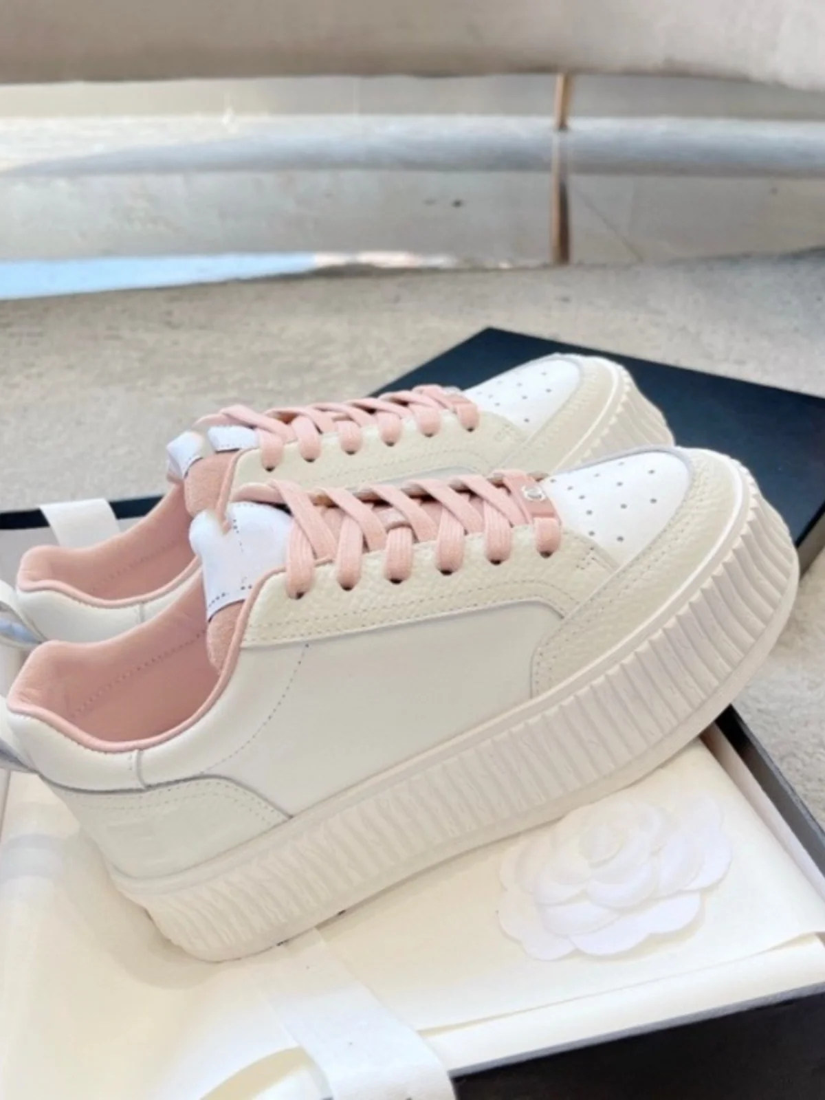 New Genuine Leather Thick-soled Sponge Board Shoes Are Fashionable and Versatile Thick-soled Sports and Casual Cookie Shoes