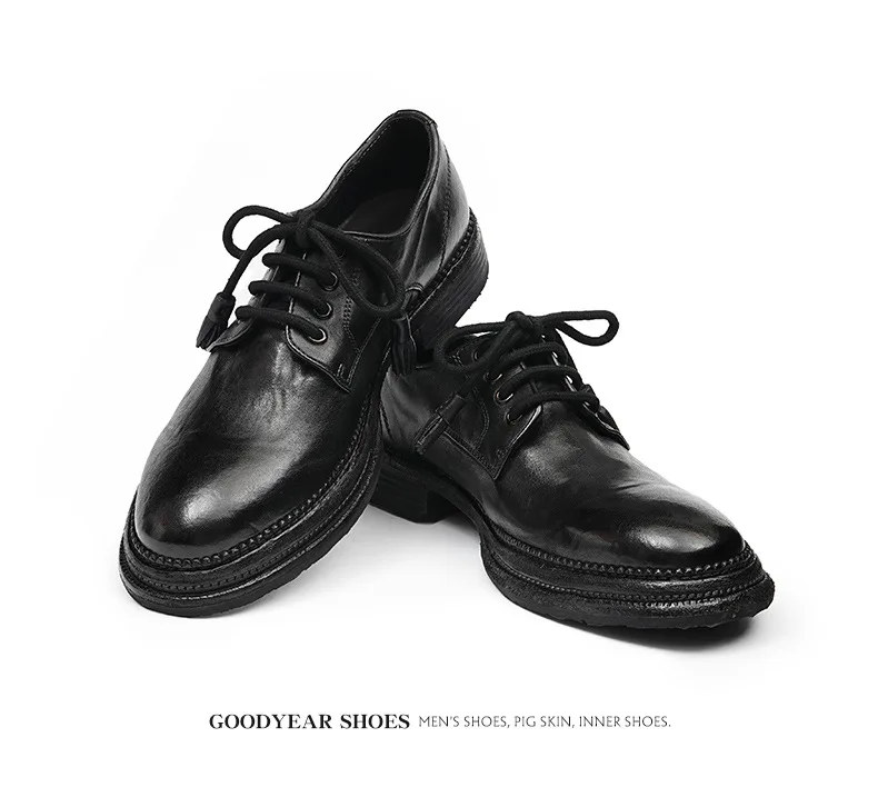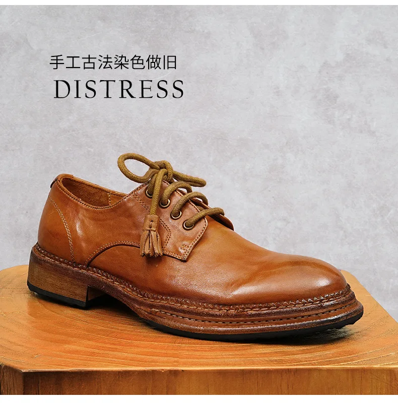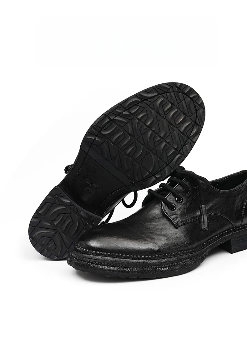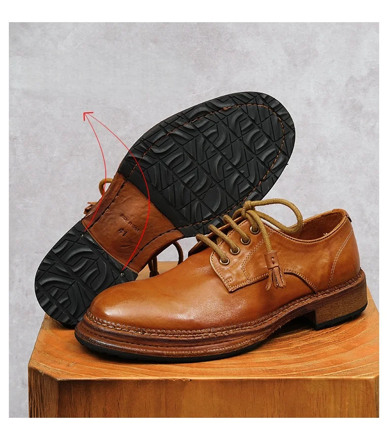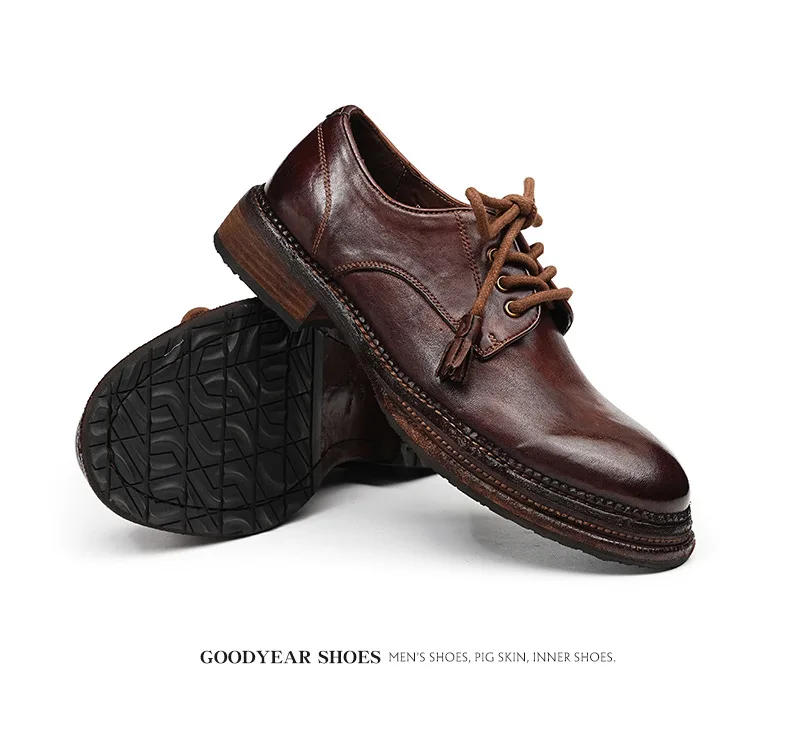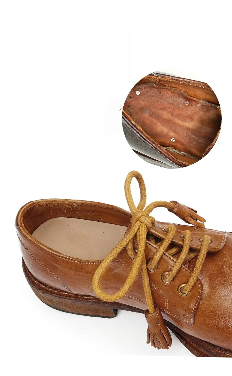 Designer round brown English-style leather shoes for men, lace-up, high-quality genuine leather, casual shoes for men