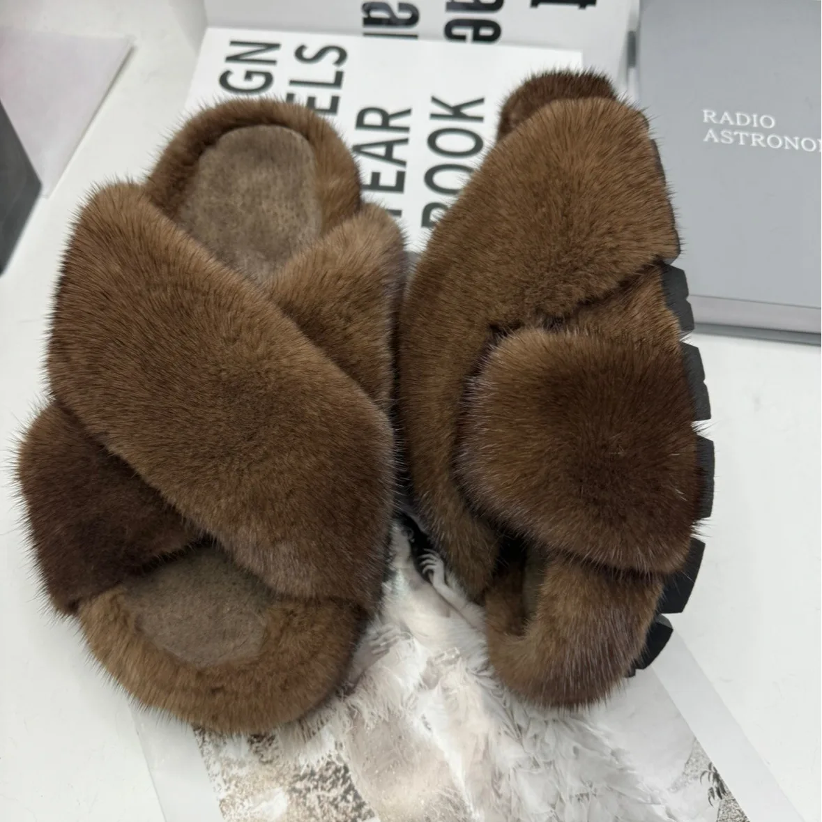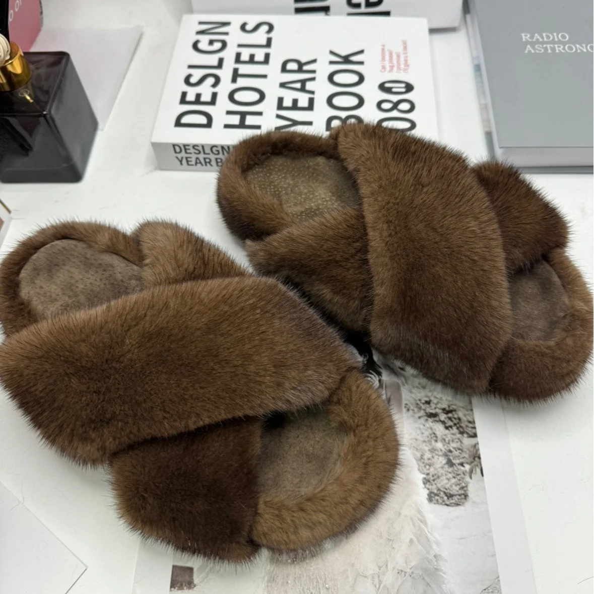 Mink Slippers Fur Slides Home Outdoor Shoes
