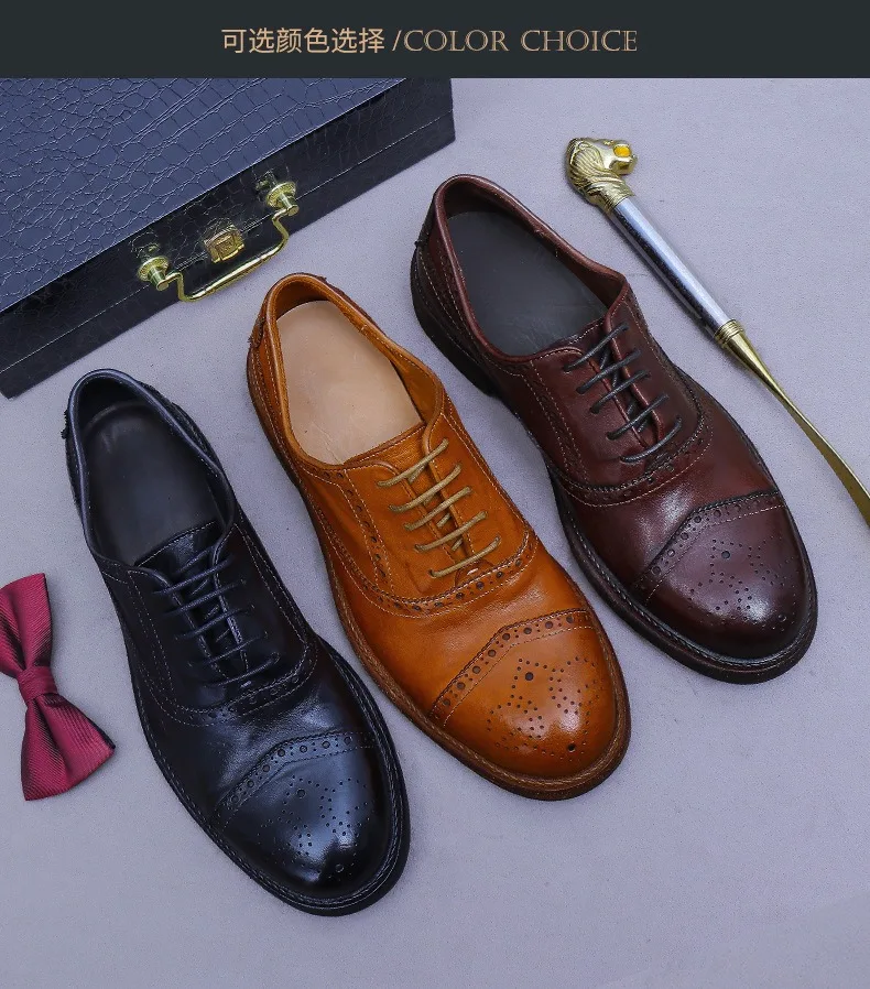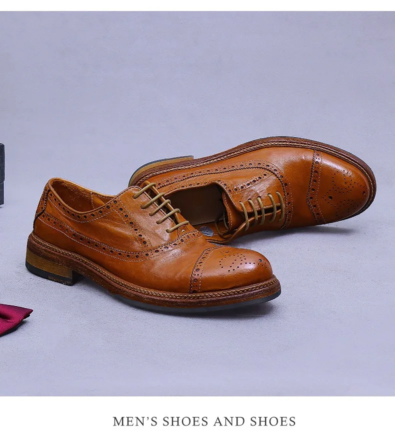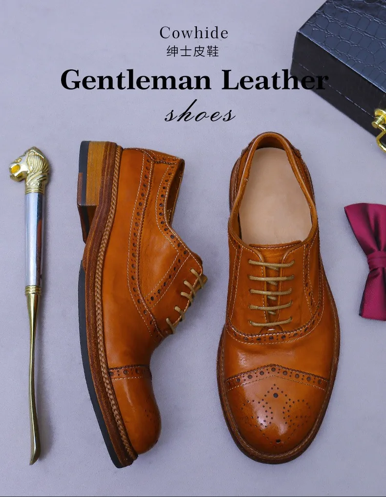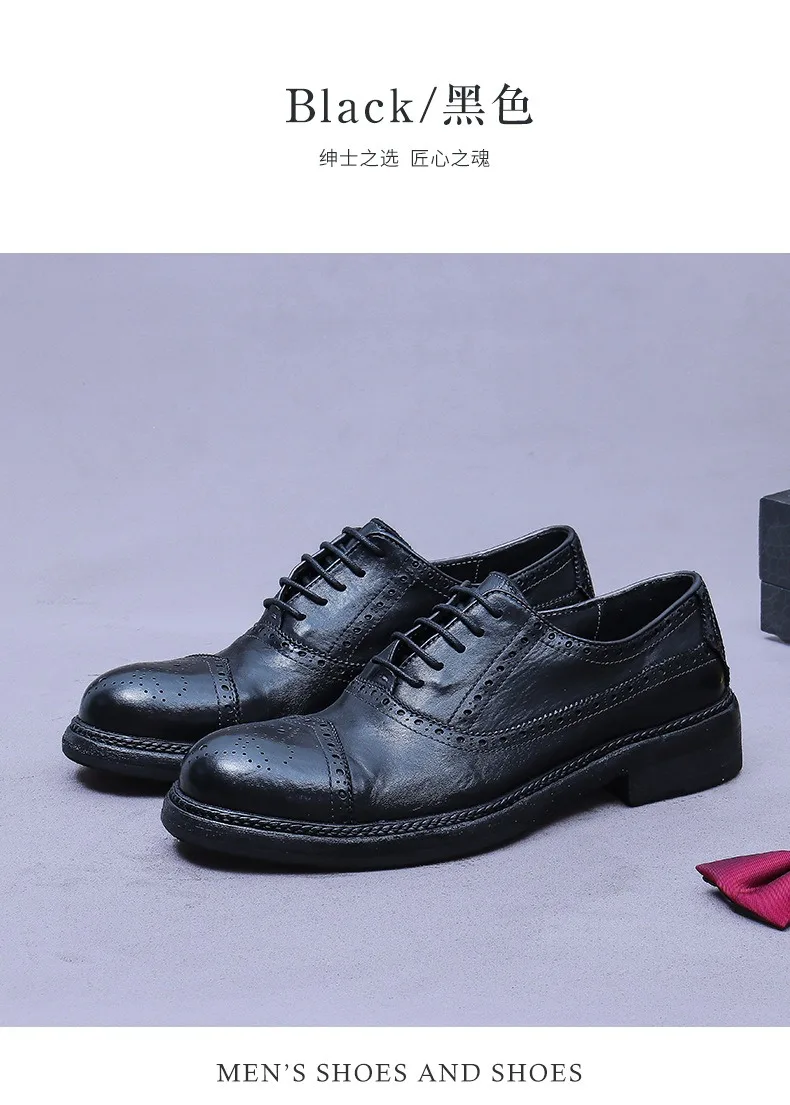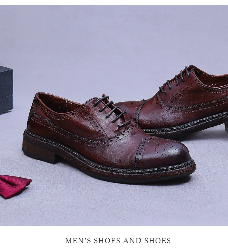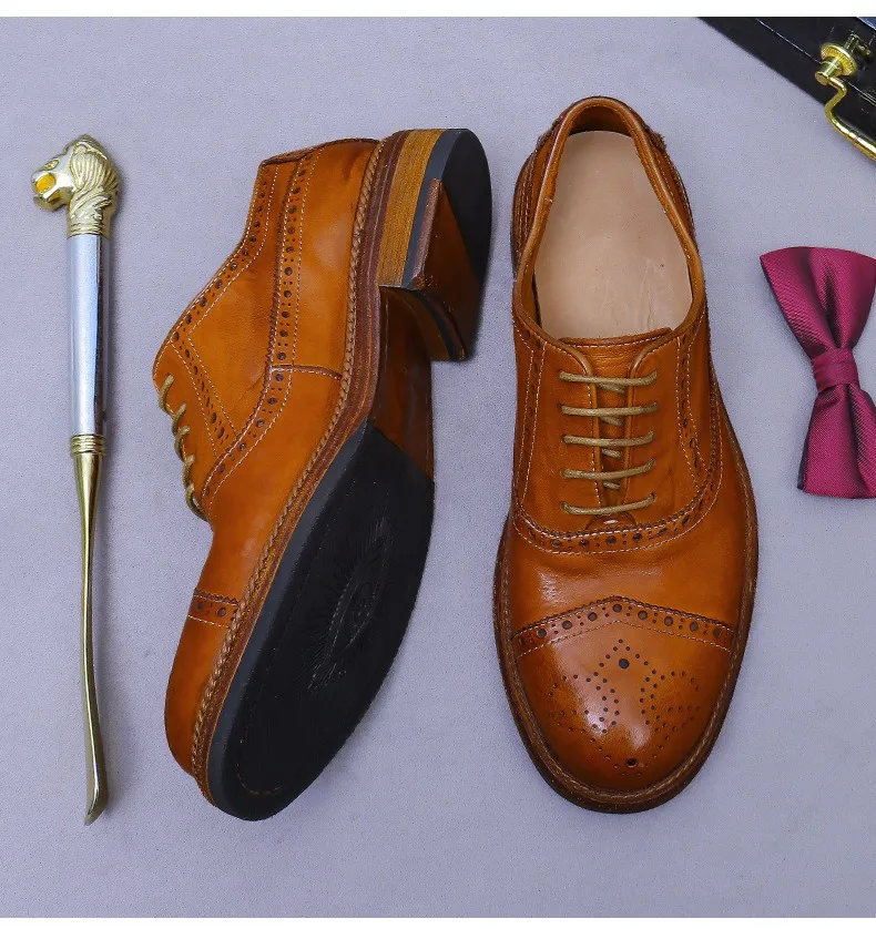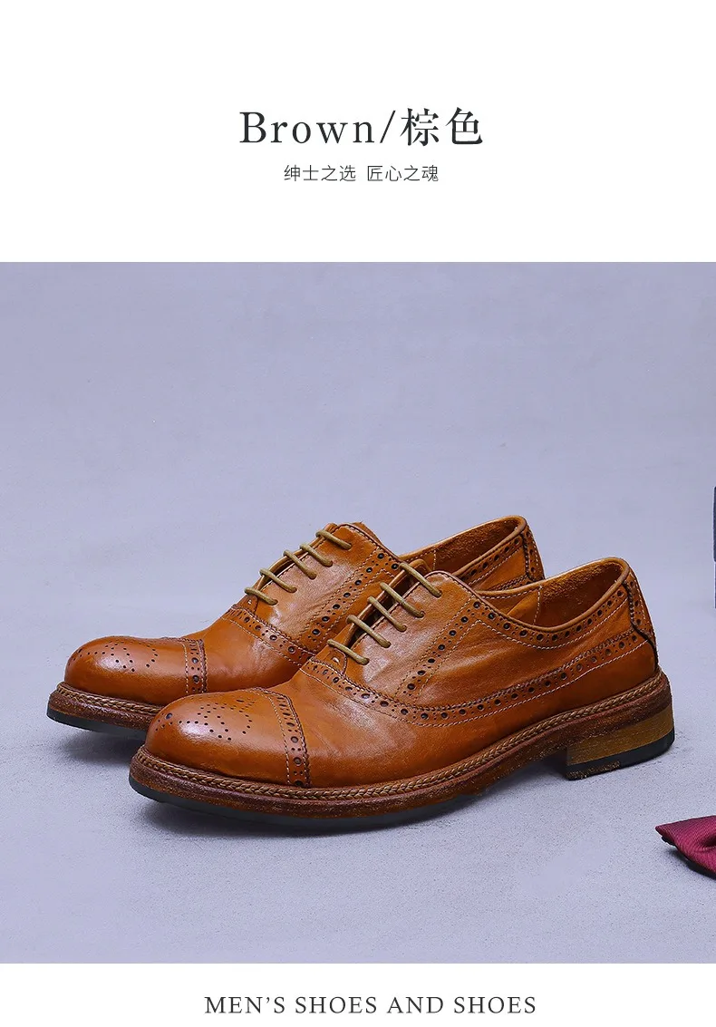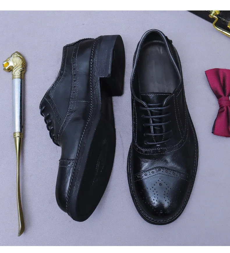 Men's British Formal Business Leather Shoes - Intricate Patterns, Goodyear Welted Sole, Ideal for Work & Groom's Wedding Outfits