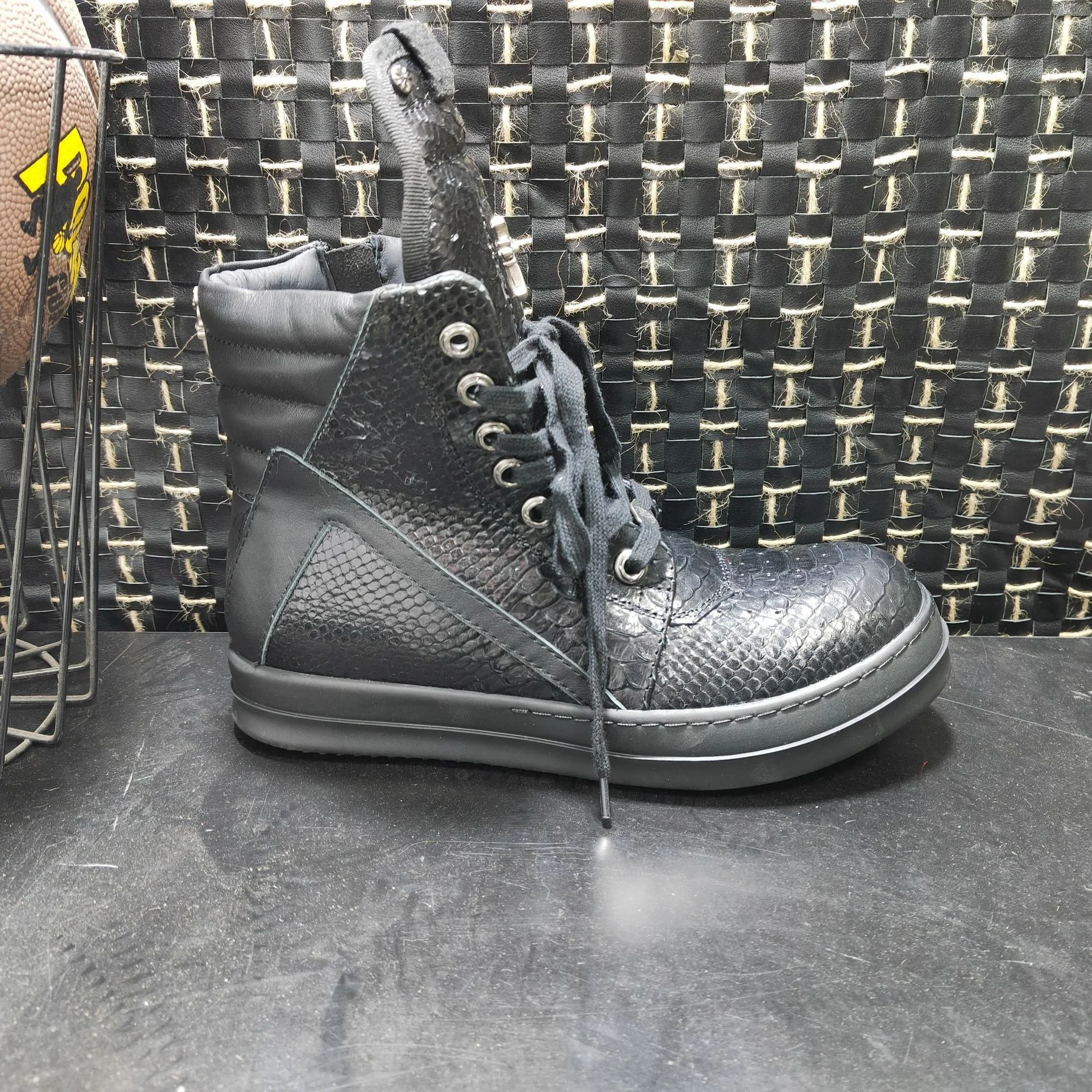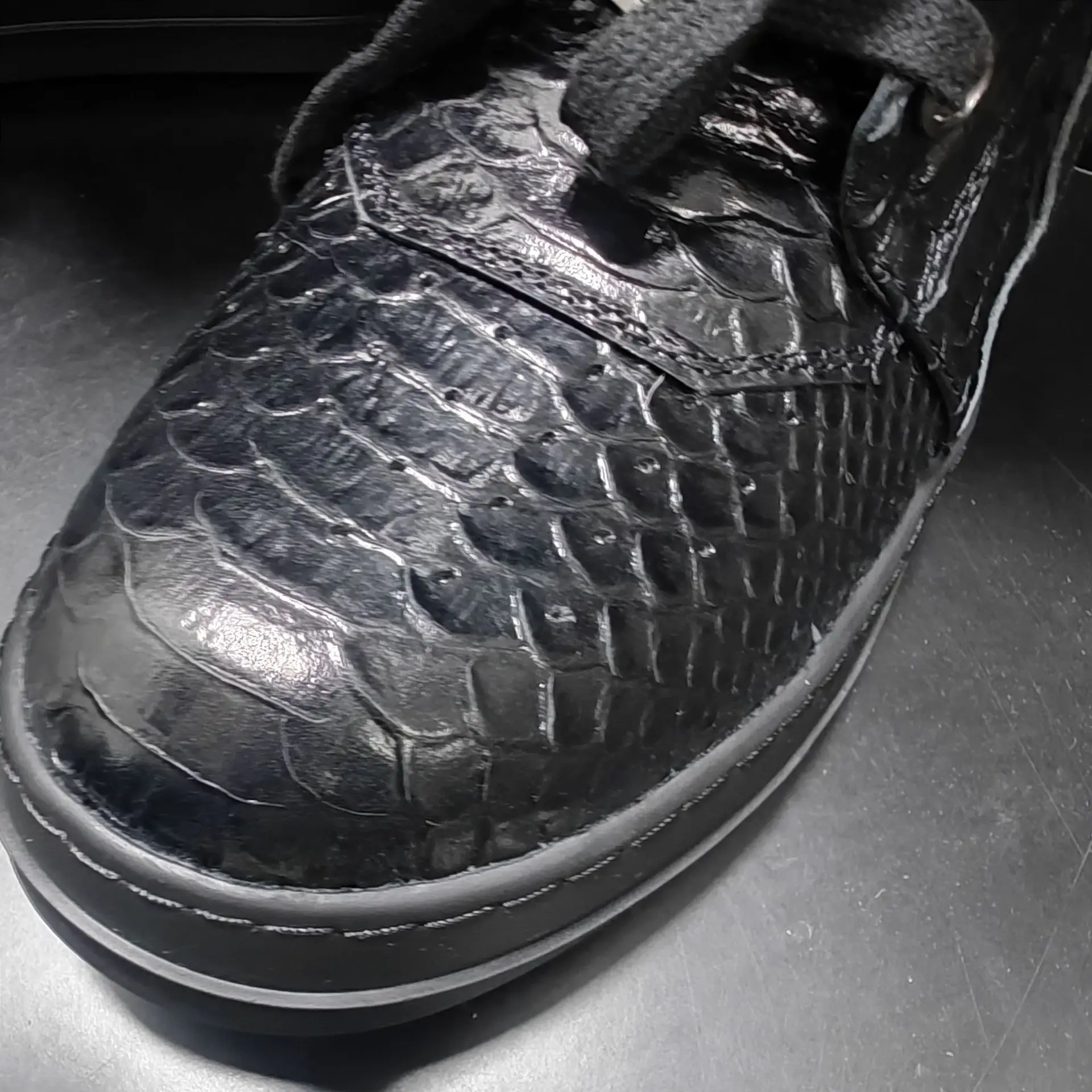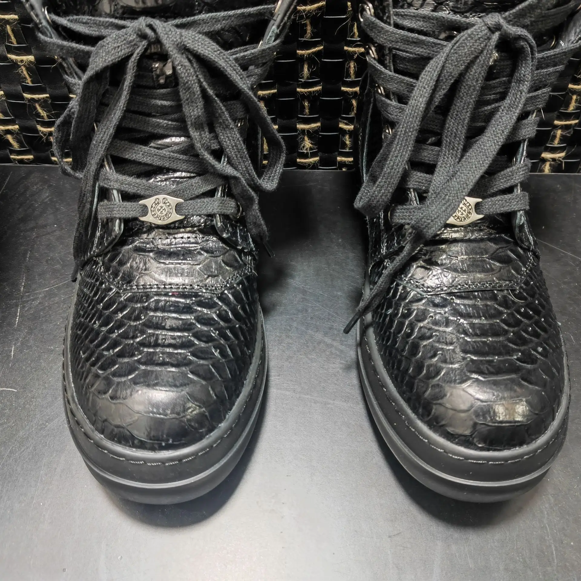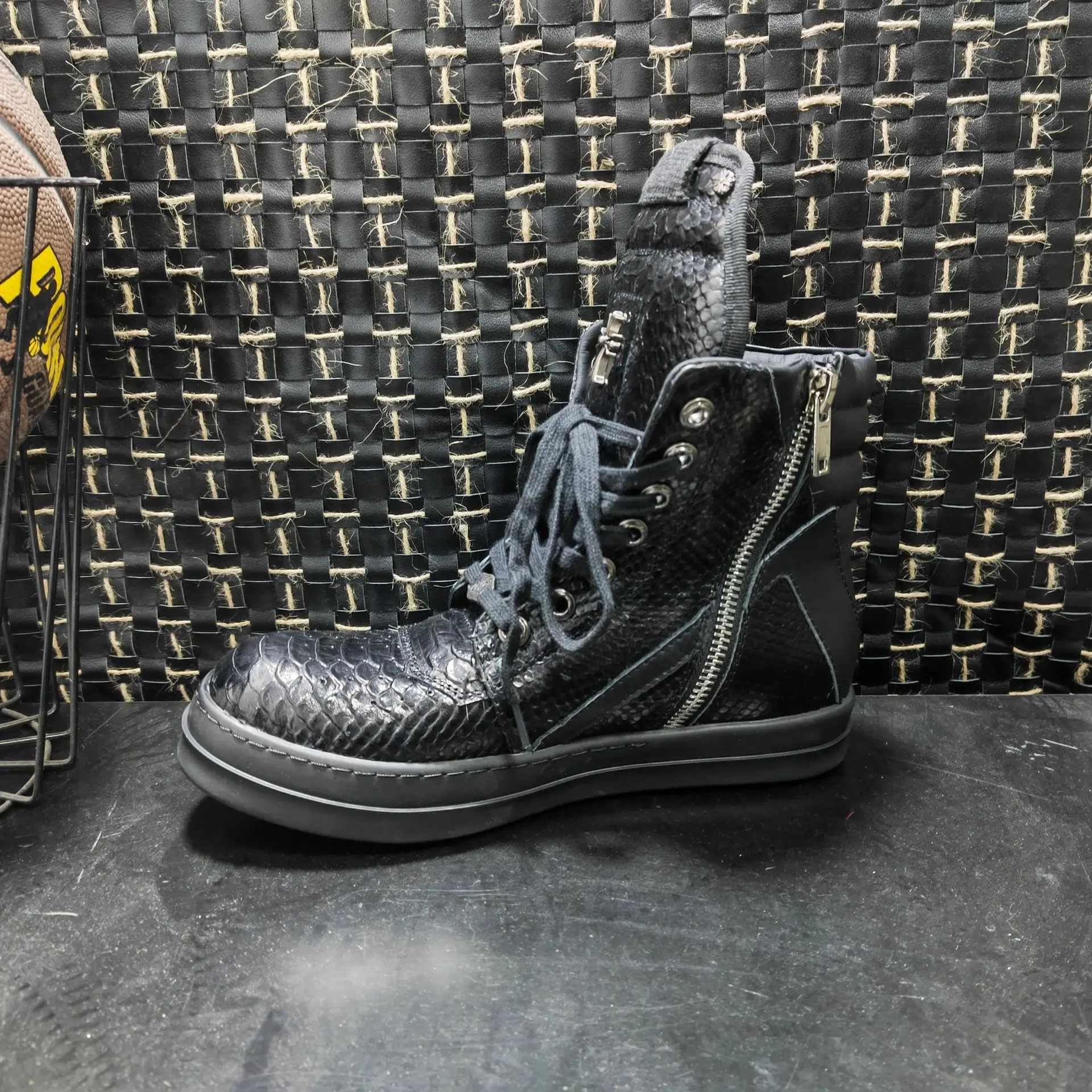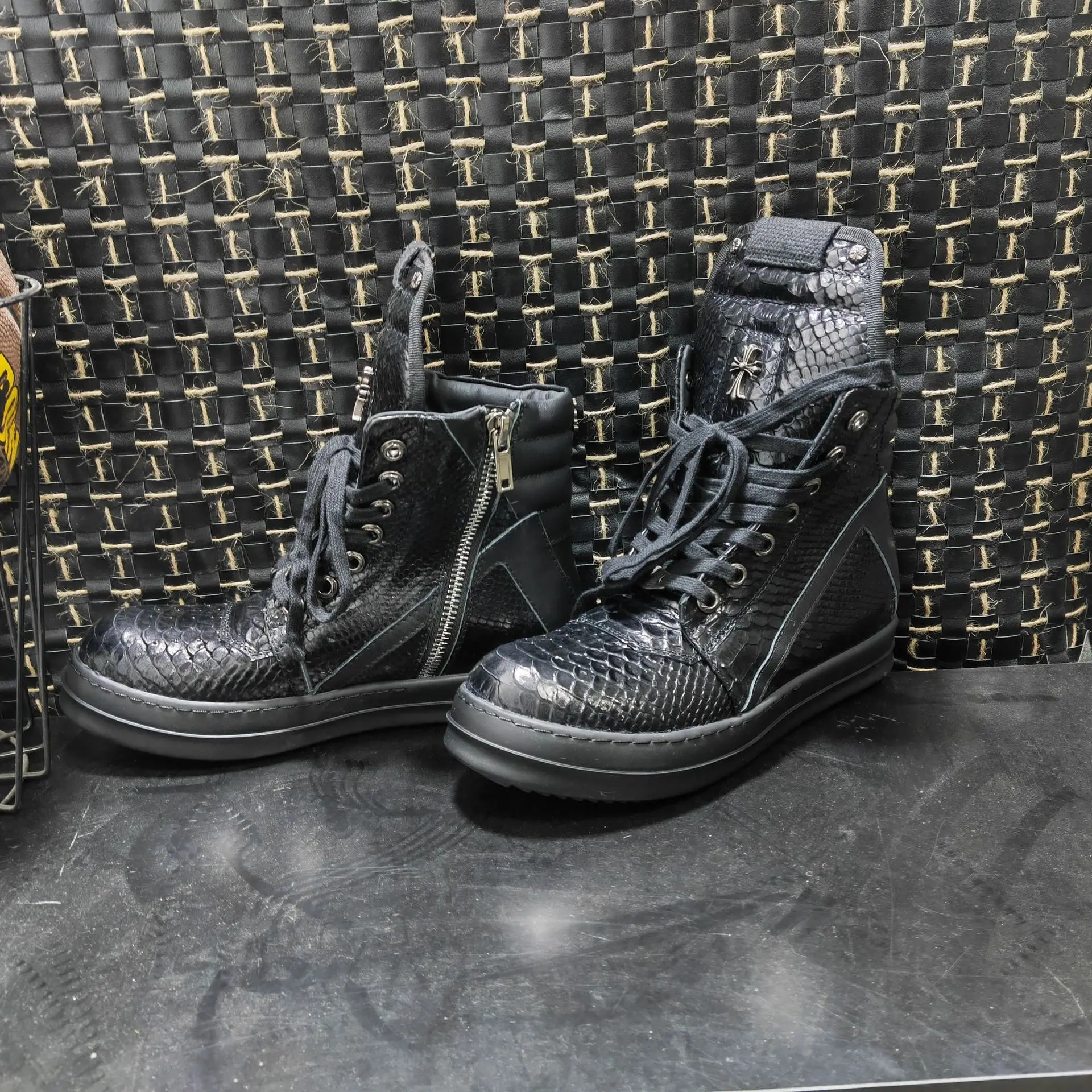 RO25 Men's Retro Mid-Top Boots New Snake Pattern Fashionable Croc Style Walking Shoes