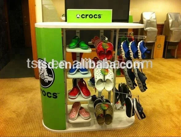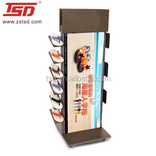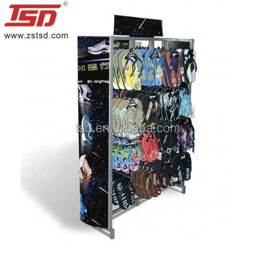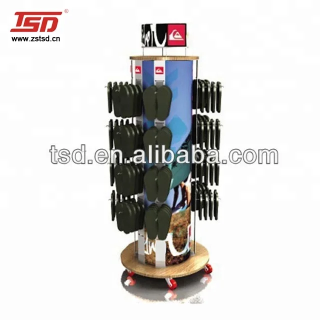 Custom retail store double sided slatwall display wooden shoe display rack slipper display stand