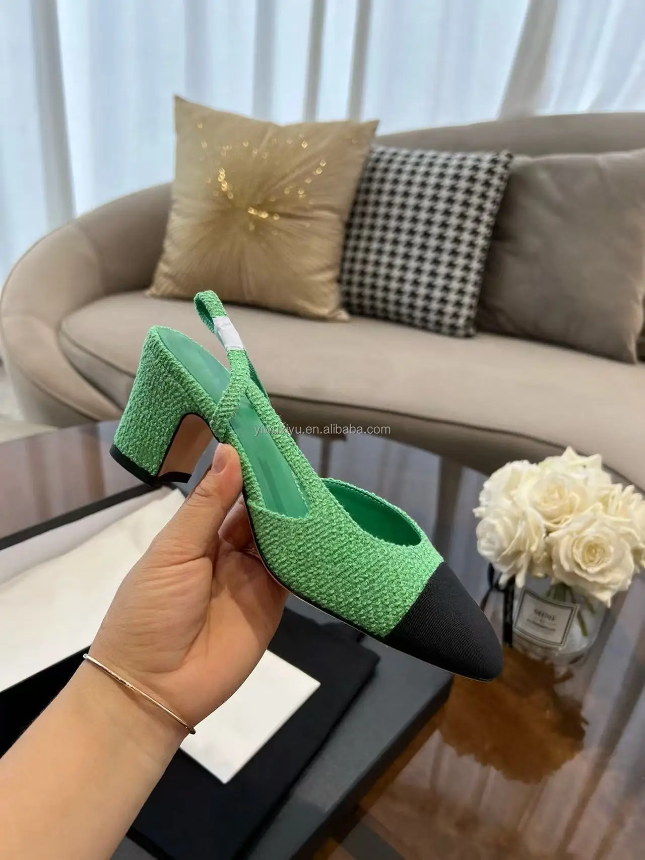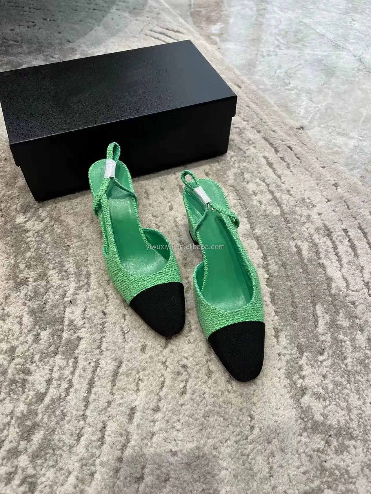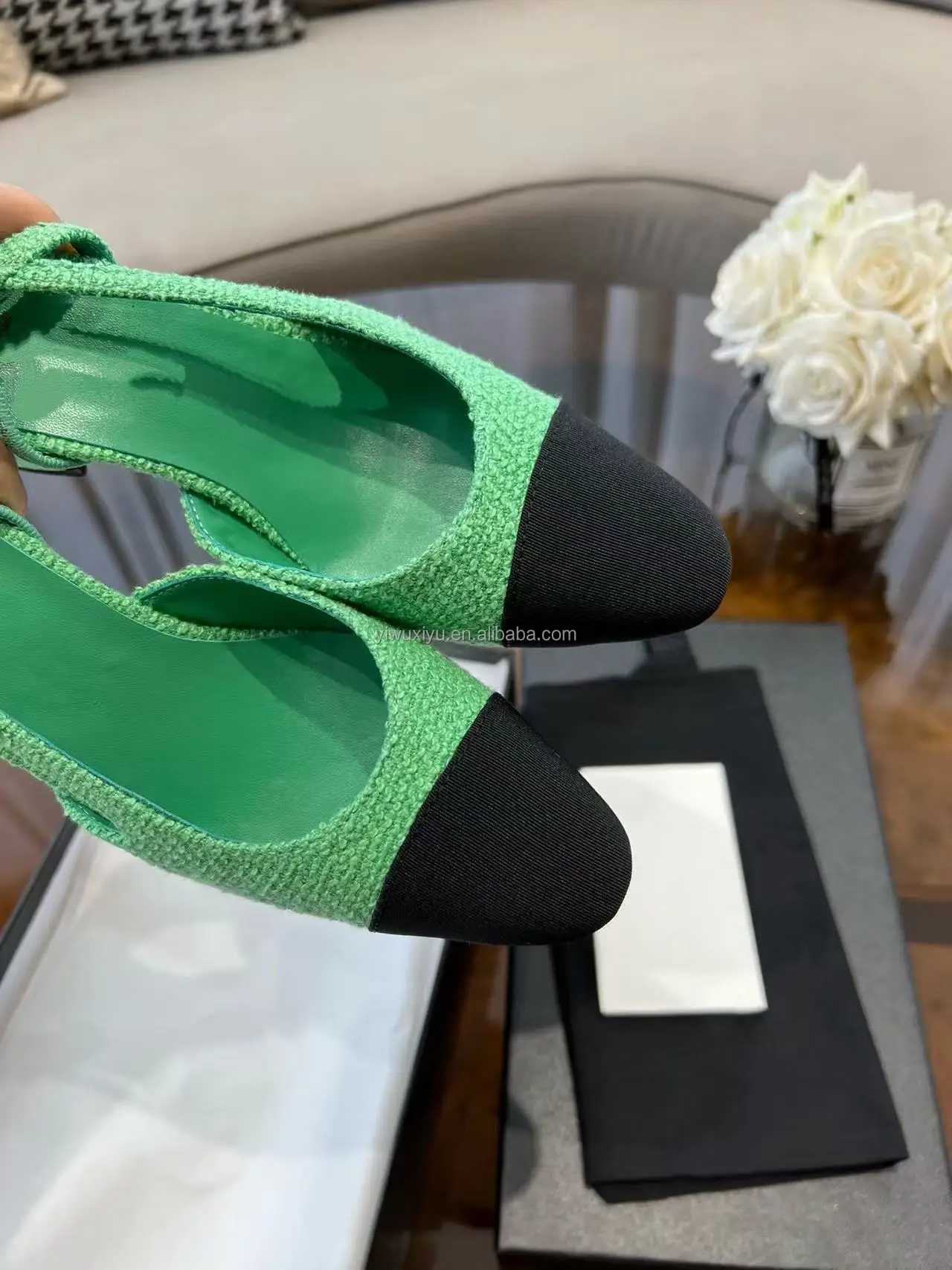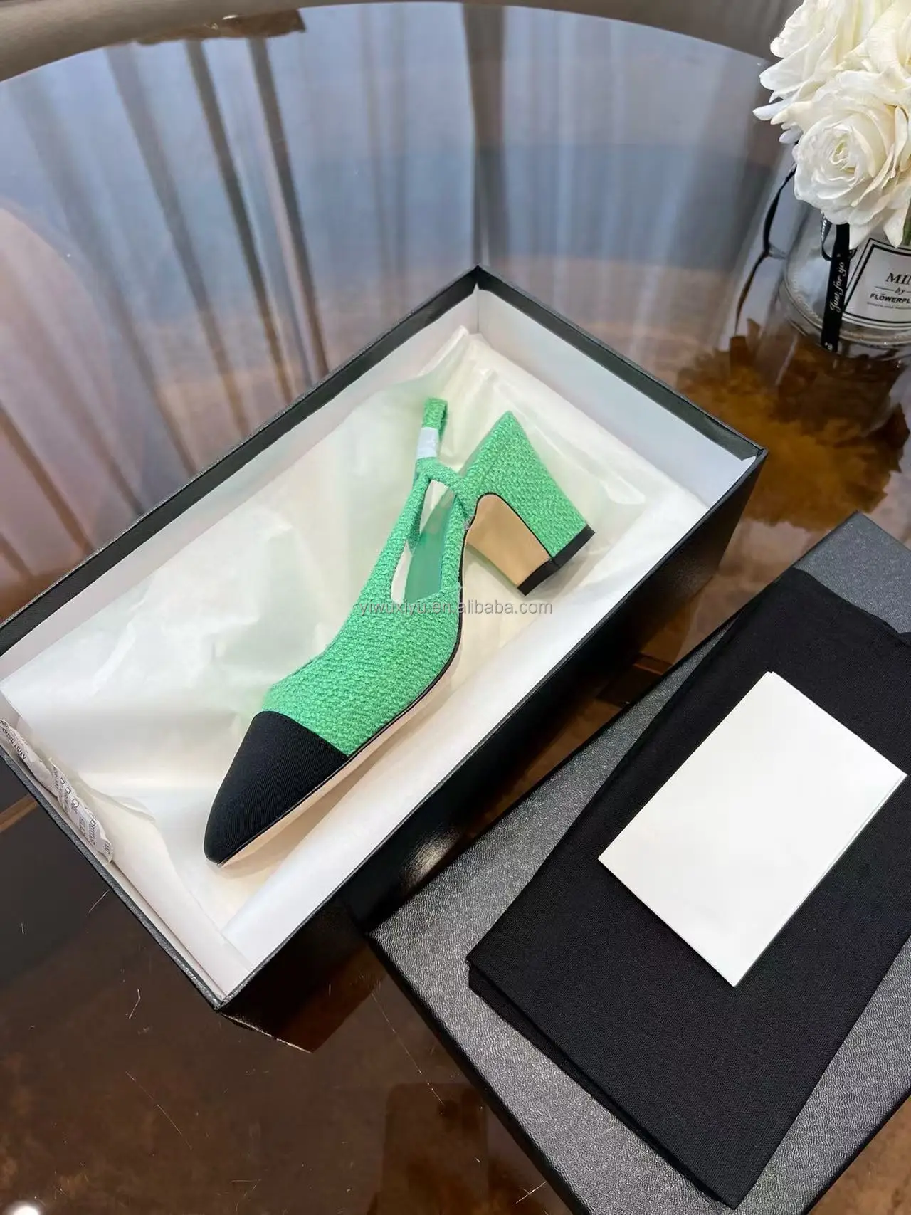 High-quality New Color-matched Genuine Leather Women's High-heeled Sandals with Thick Heels, Single Shoes