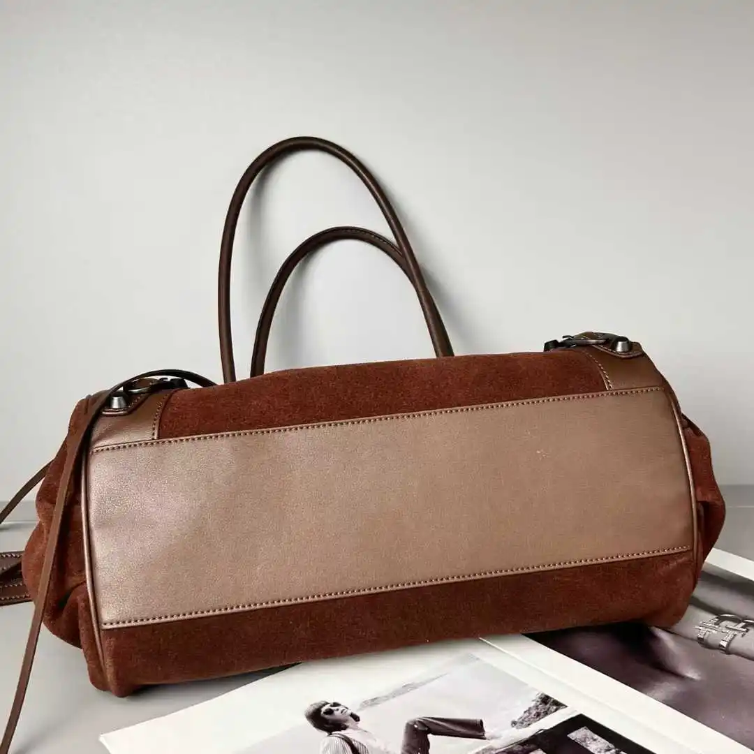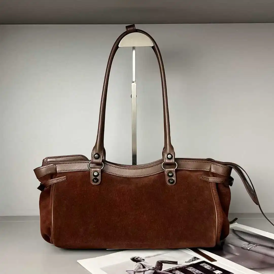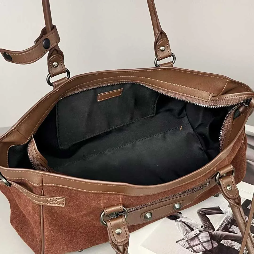 2025 Autumn Winter New Women's Genuine Leather Matte Handheld Crossbody Bag Large Capacity Tote Suede Zip Fashionable Stone