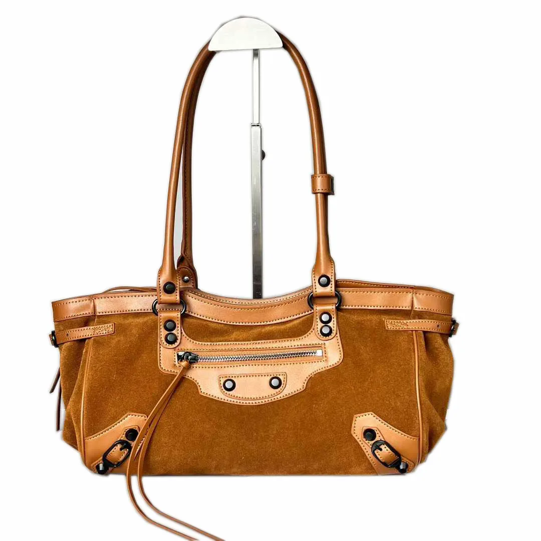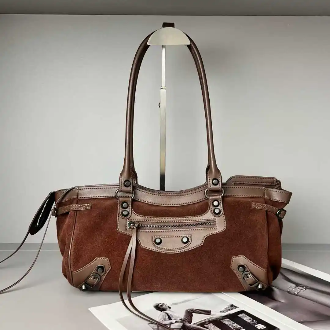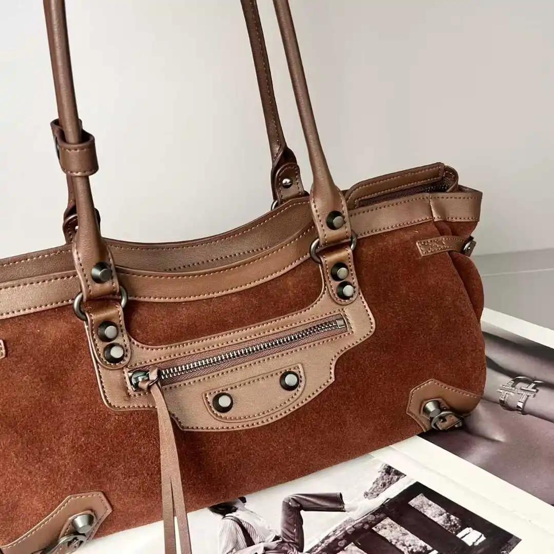 2025 Autumn Winter New Women's Genuine Leather Matte Handheld Crossbody Bag Large Capacity Tote Suede Zip Fashionable Stone