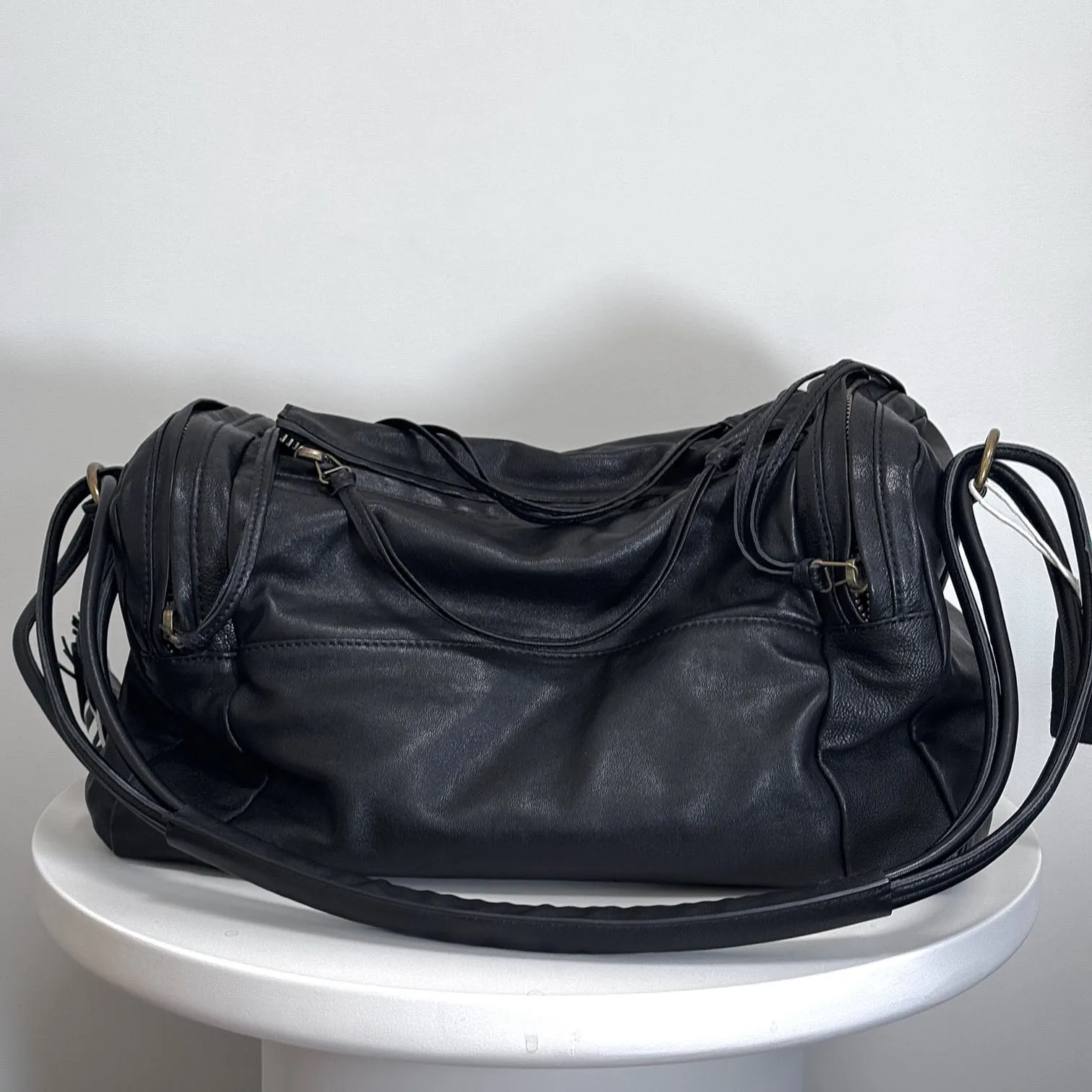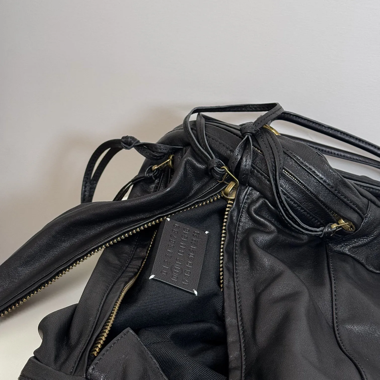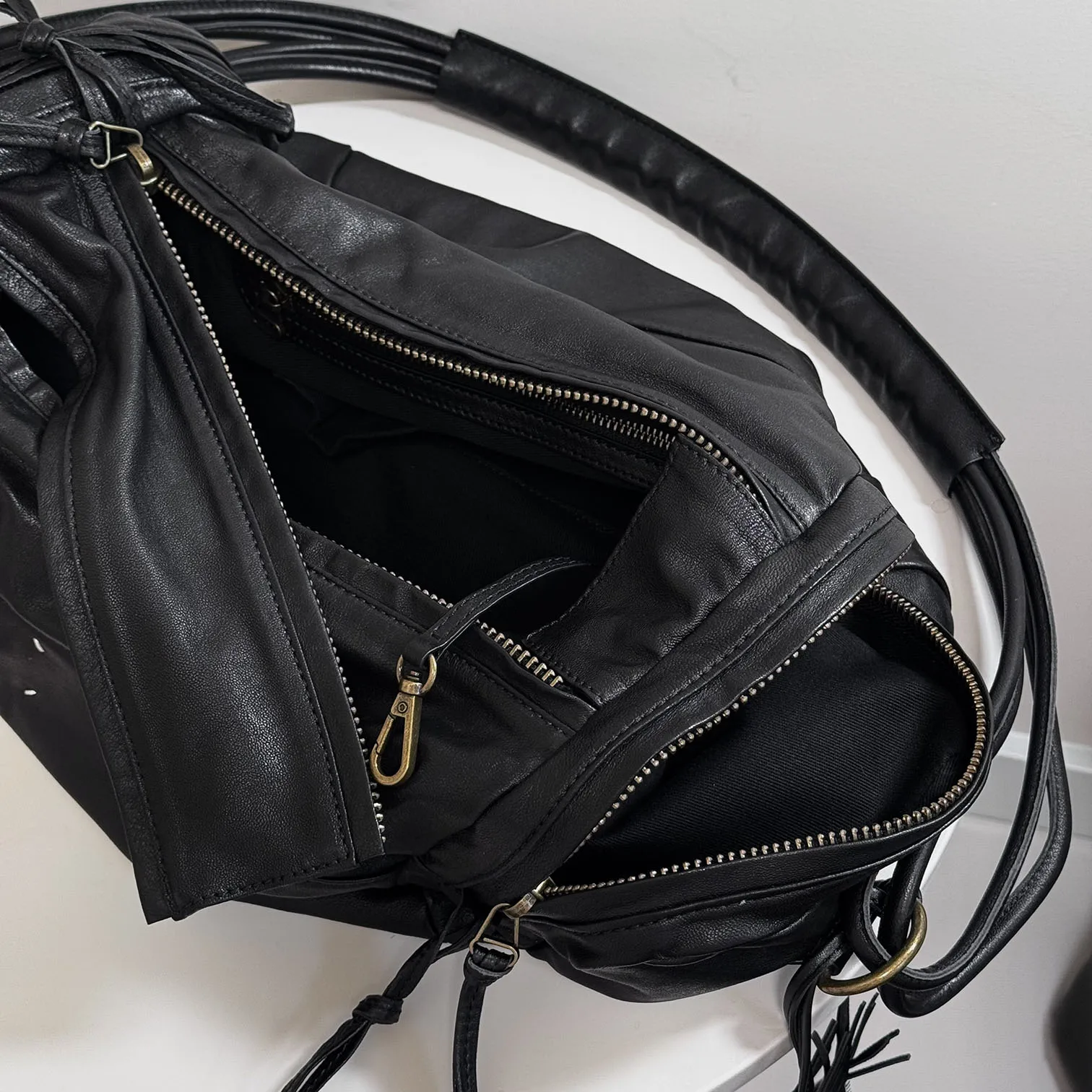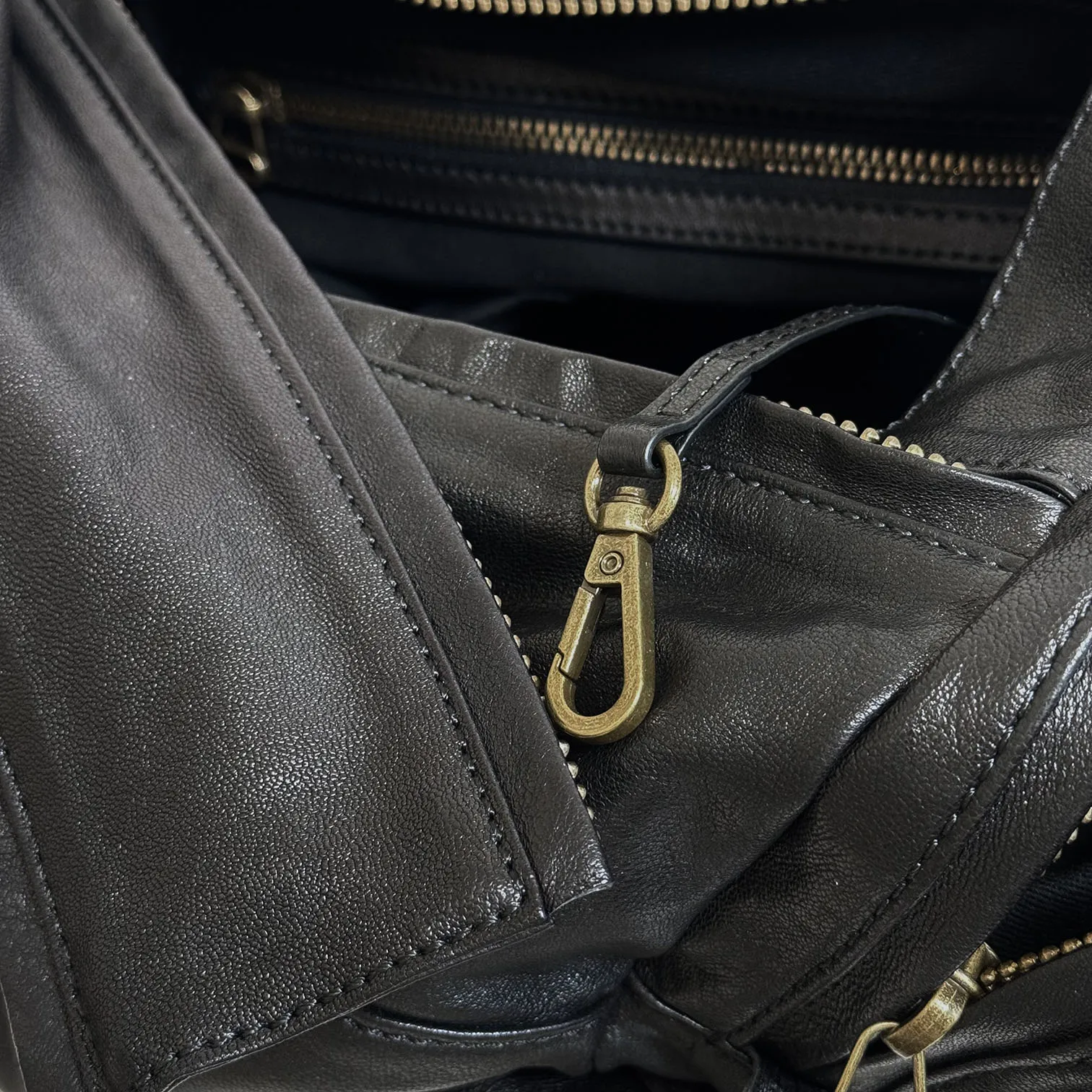 2024 New Women's Messenger Bag with Dark Oil Wax Texture Sheepskin Biker Shoulder Bag