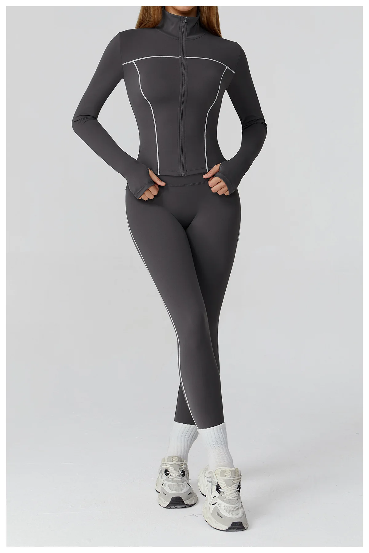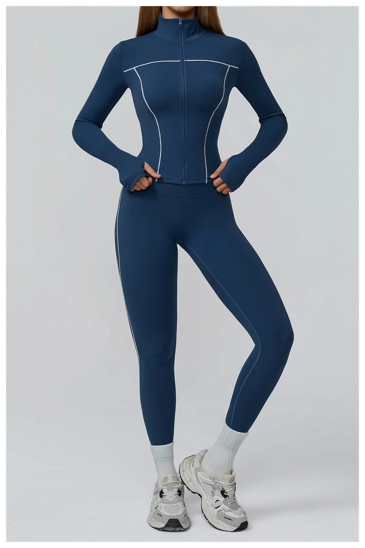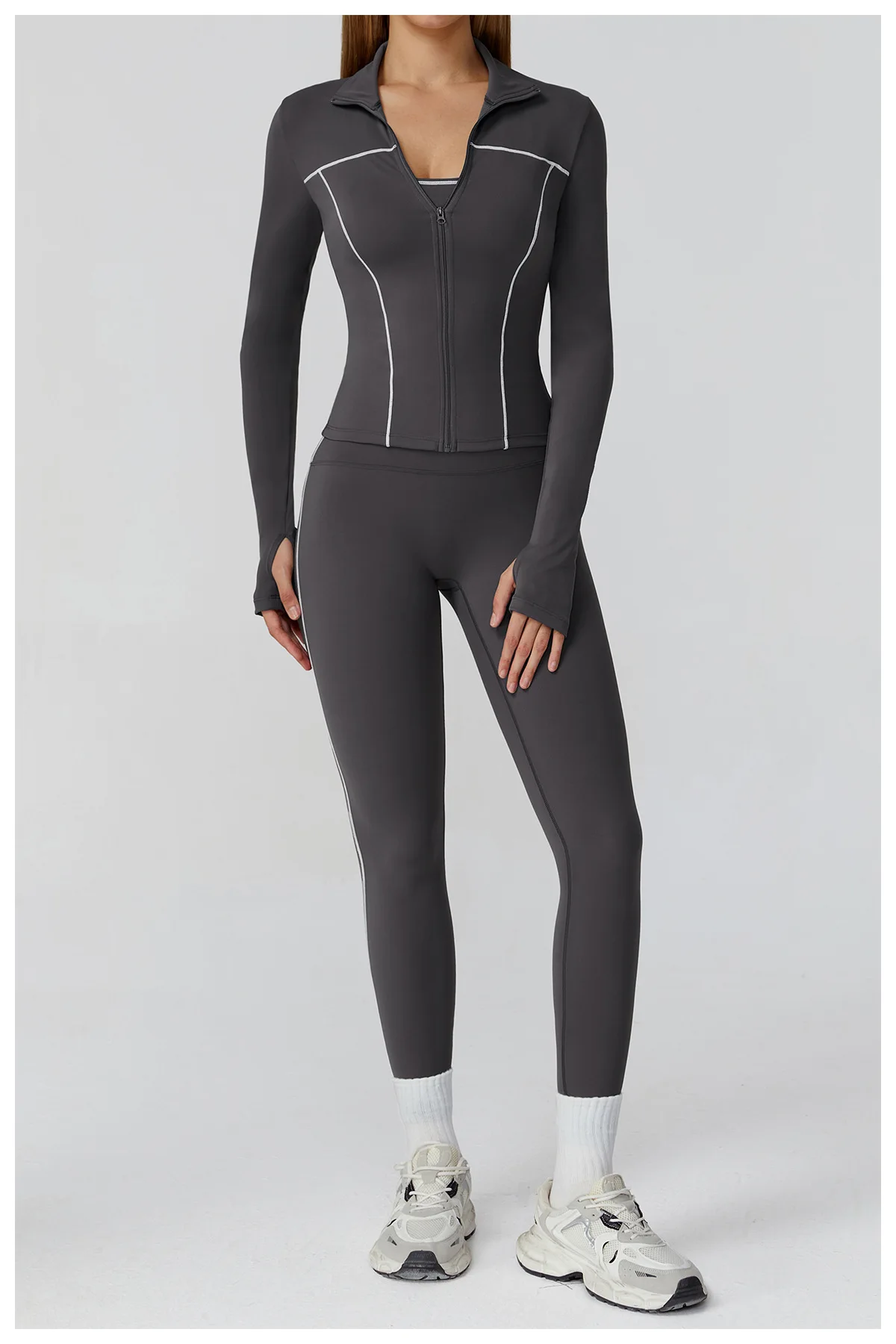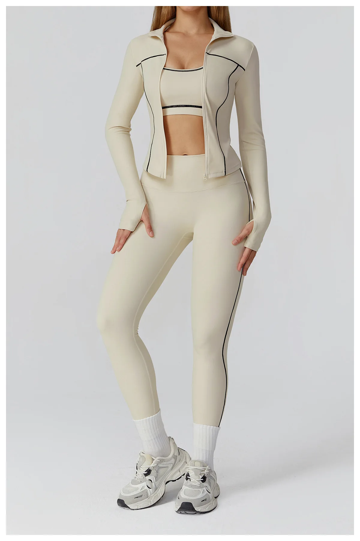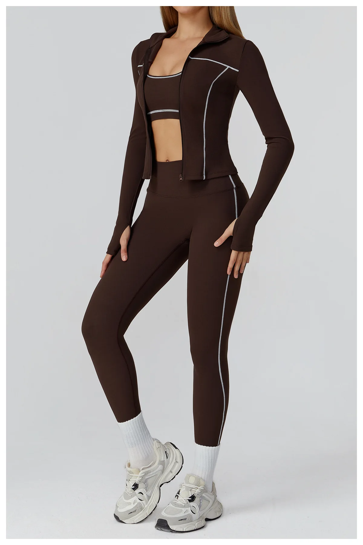 Hot Sale Sportswear Running Fitness Yoga Clothes Breathable Gym Sets With Full Zipper Jacket 3 Pcs Yoga Set for Women