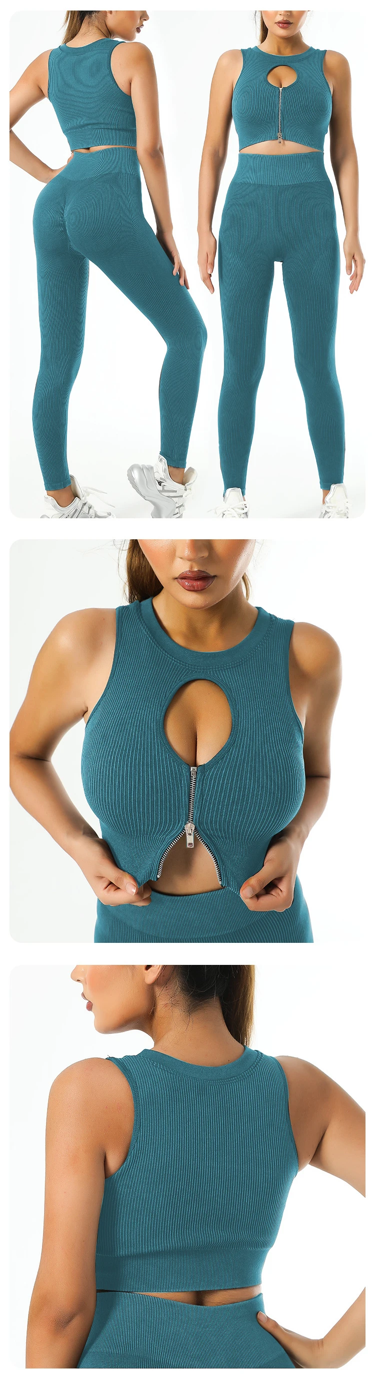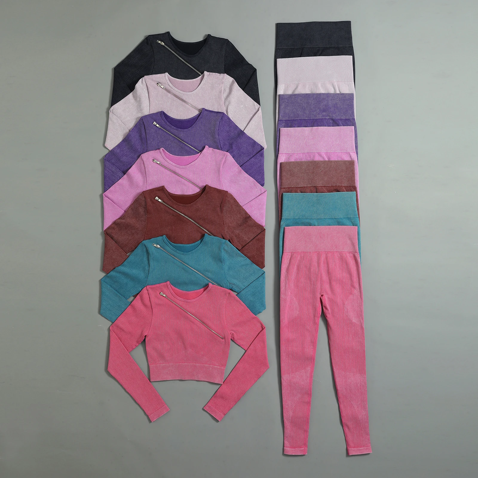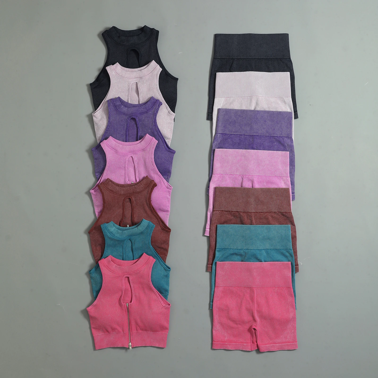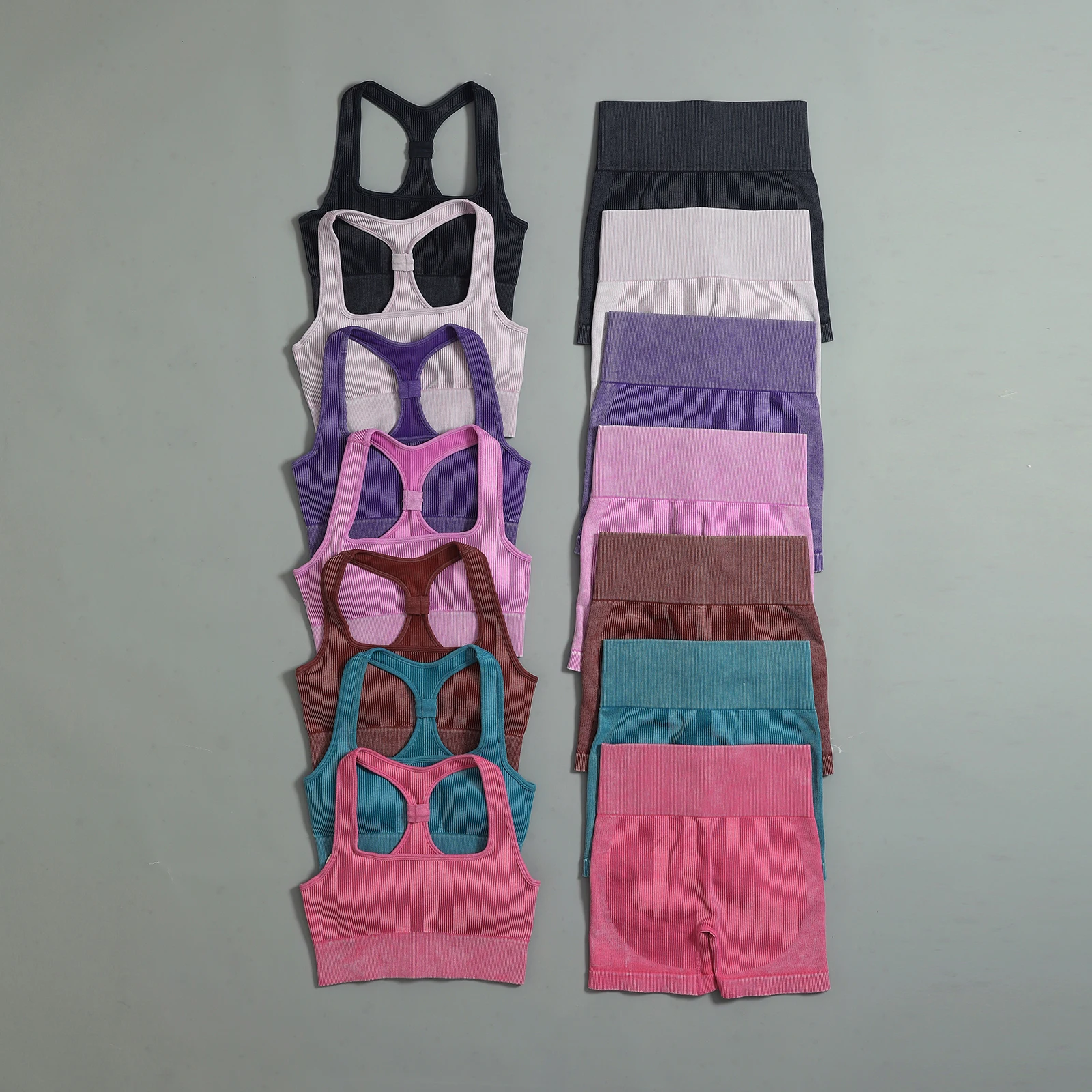 6 PCS Set Acid Washed Outfit Ribbed Seamless Yoga Set Crop Top Bra hip lift pants gym set women fitness workout clothing