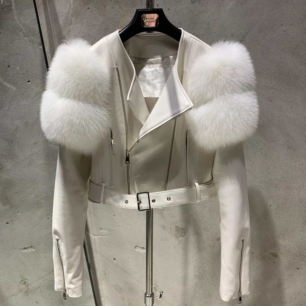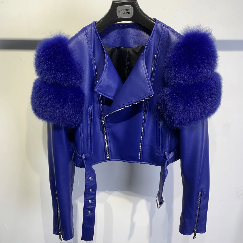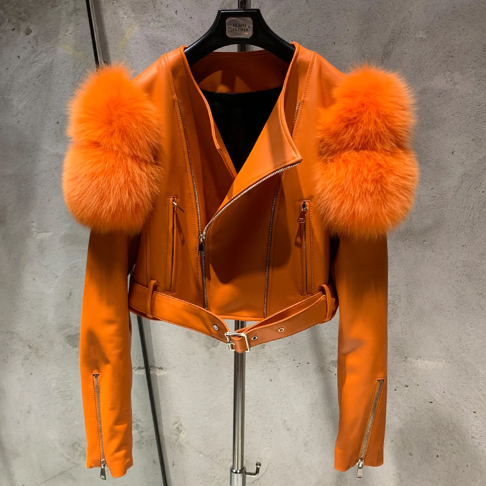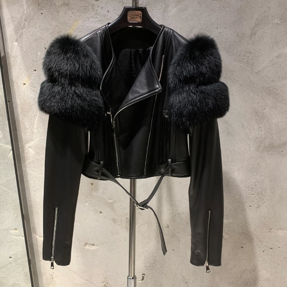 Fluffy Fashion Long Sleeves Jacket Women fox Leather Fur Clothes Outdoor Wear Leather Jackets