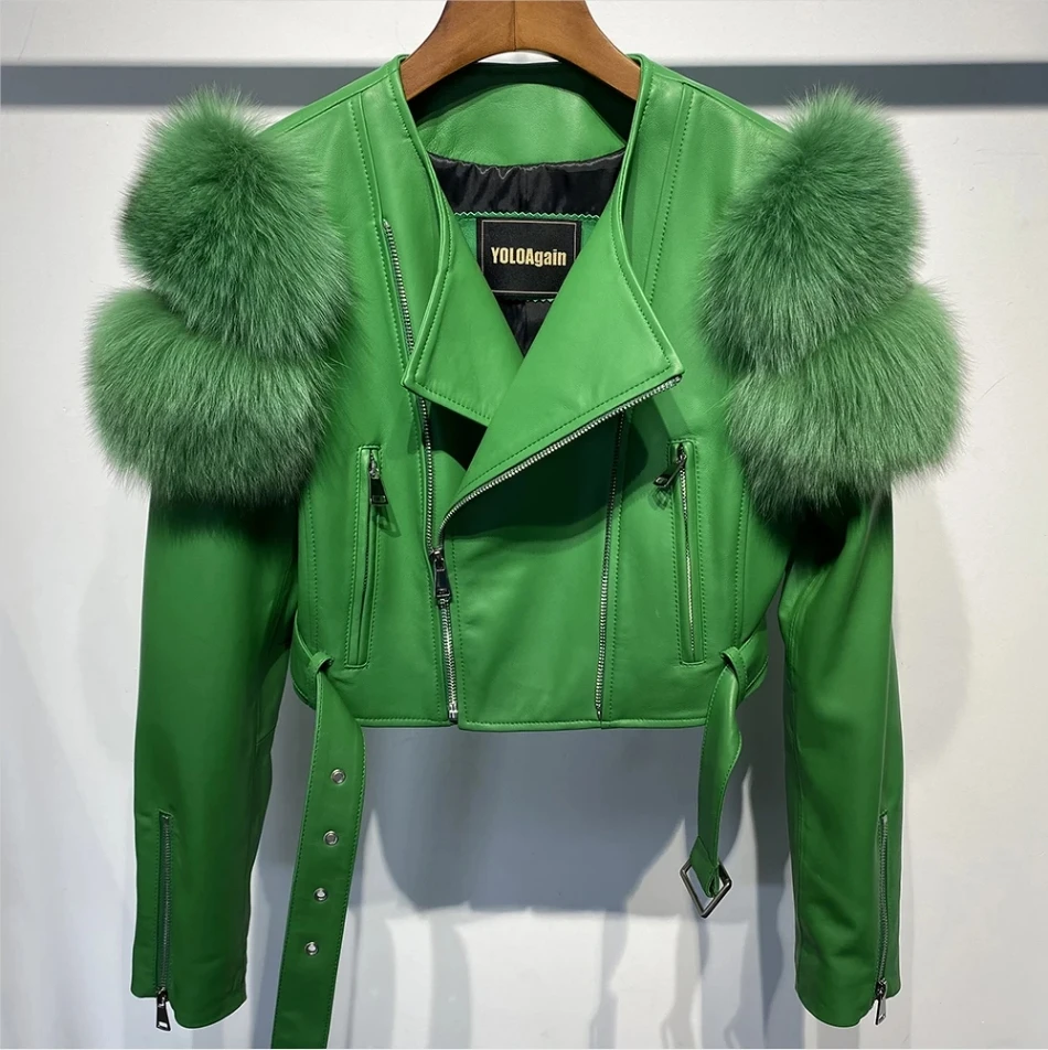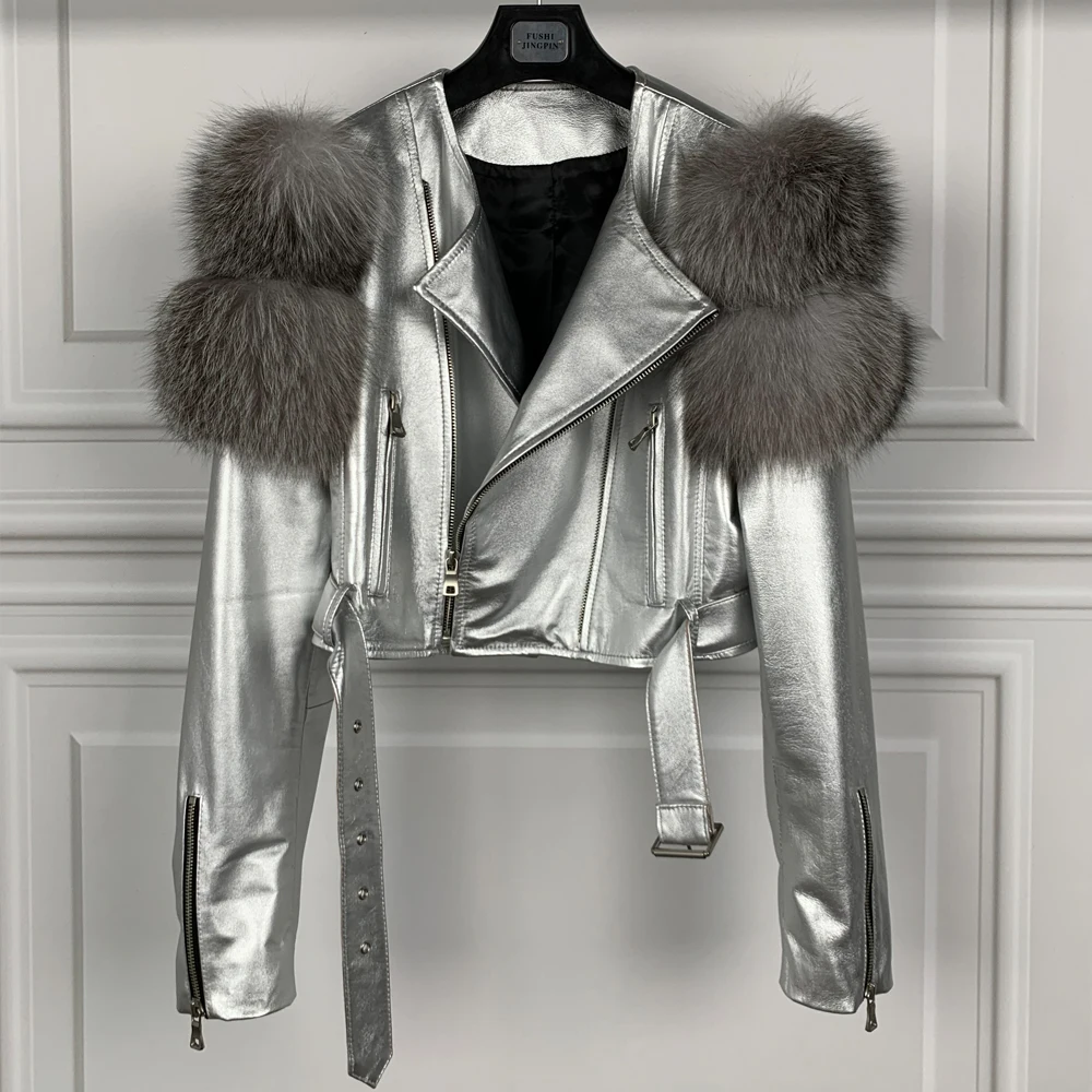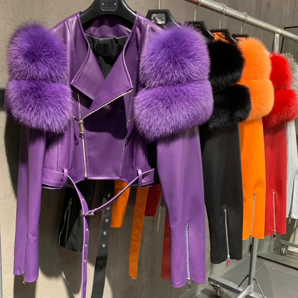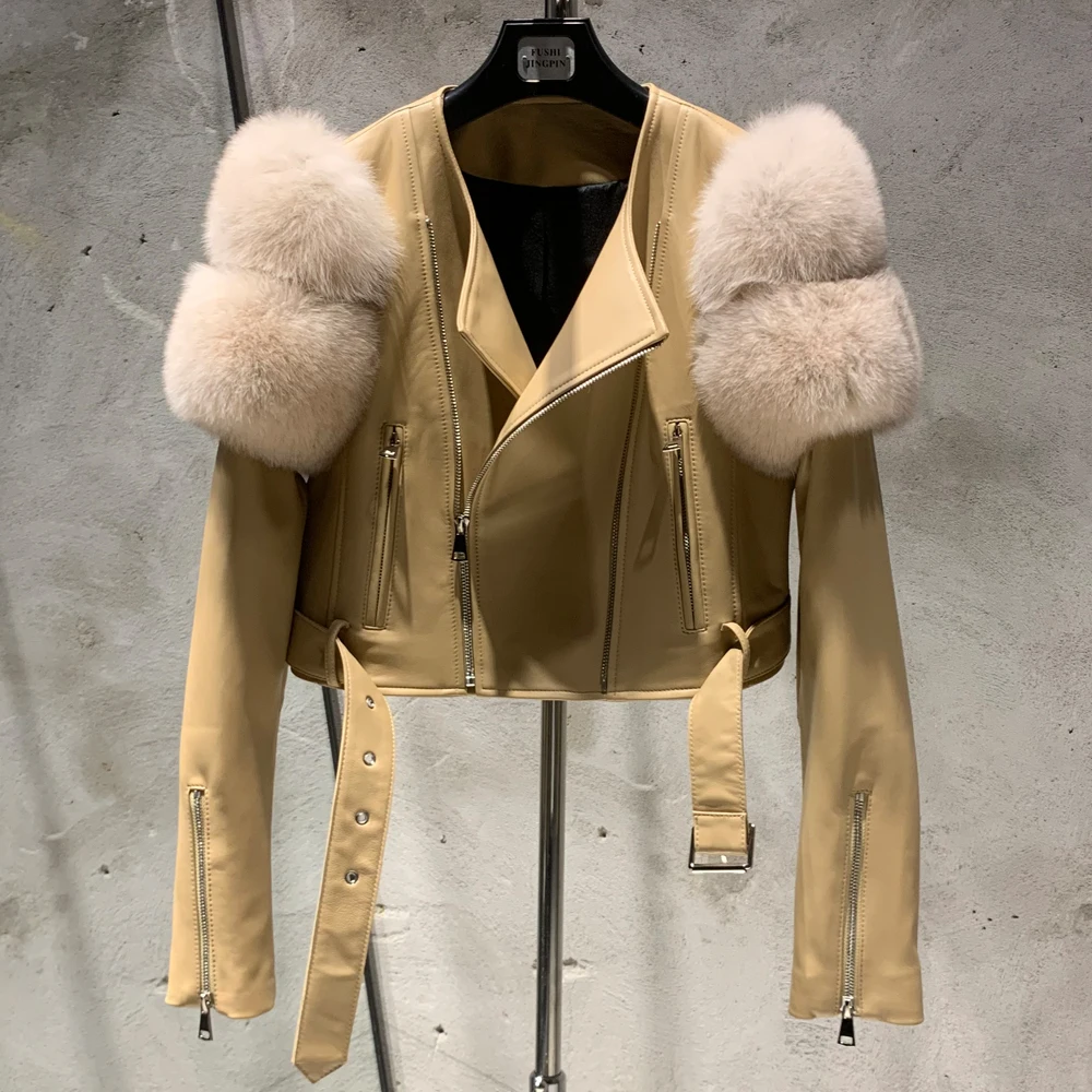 Fluffy Fashion Long Sleeves Jacket Women fox Leather Fur Clothes Outdoor Wear Leather Jackets