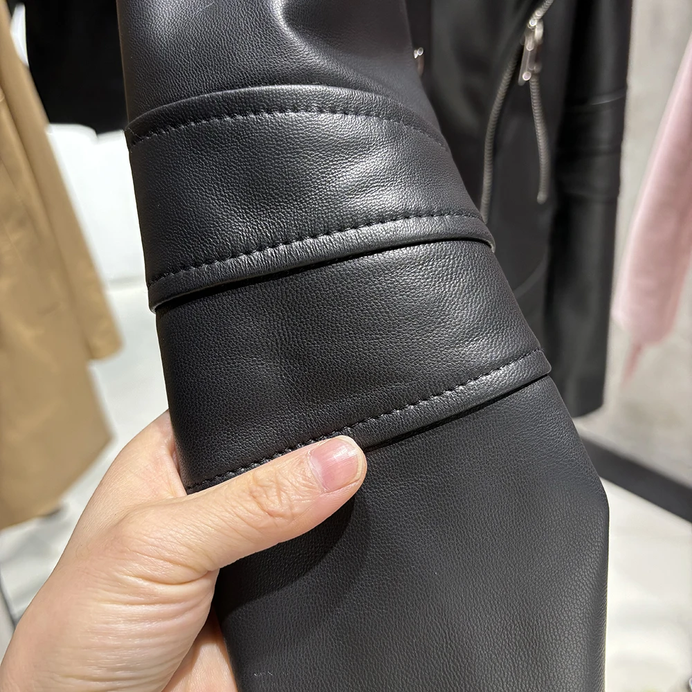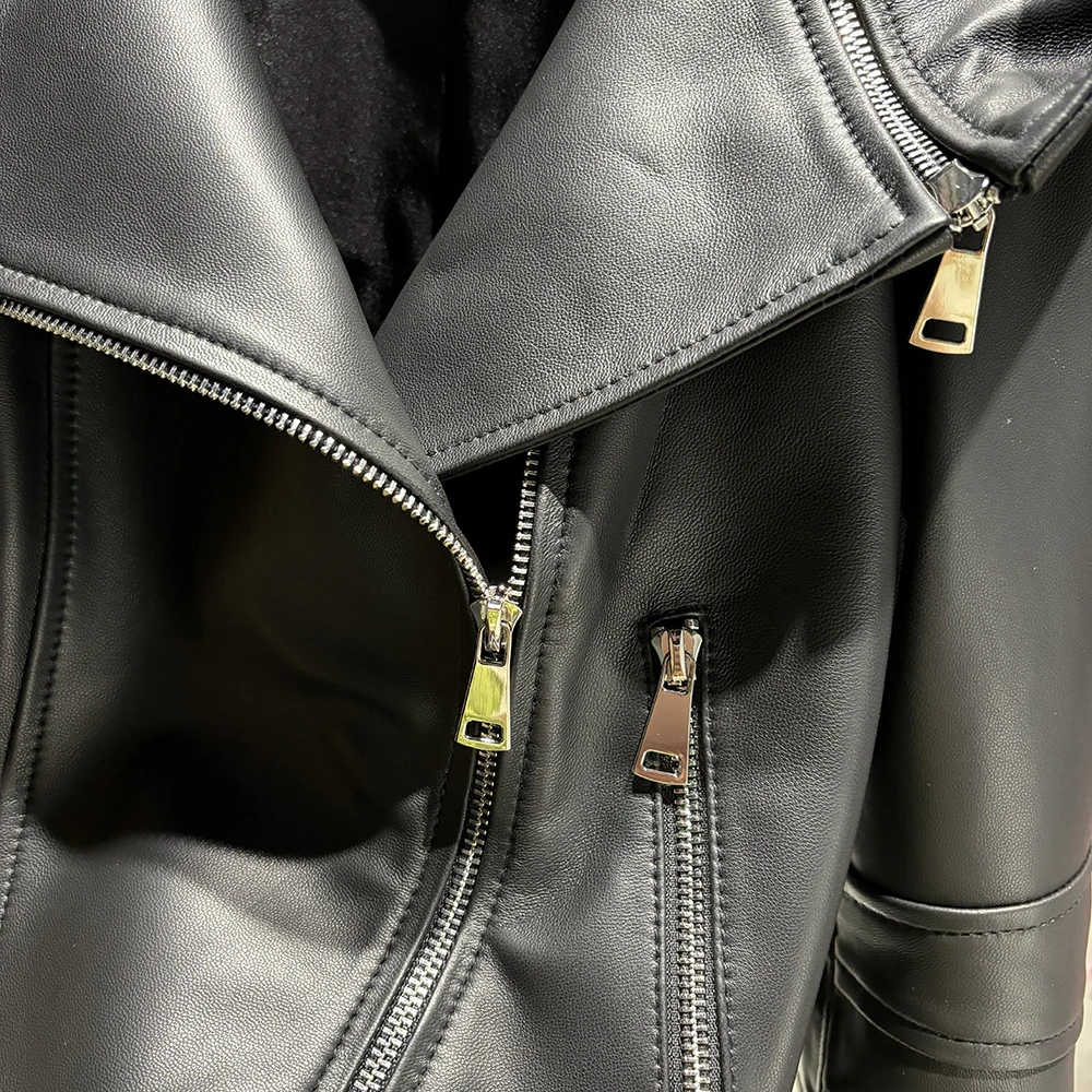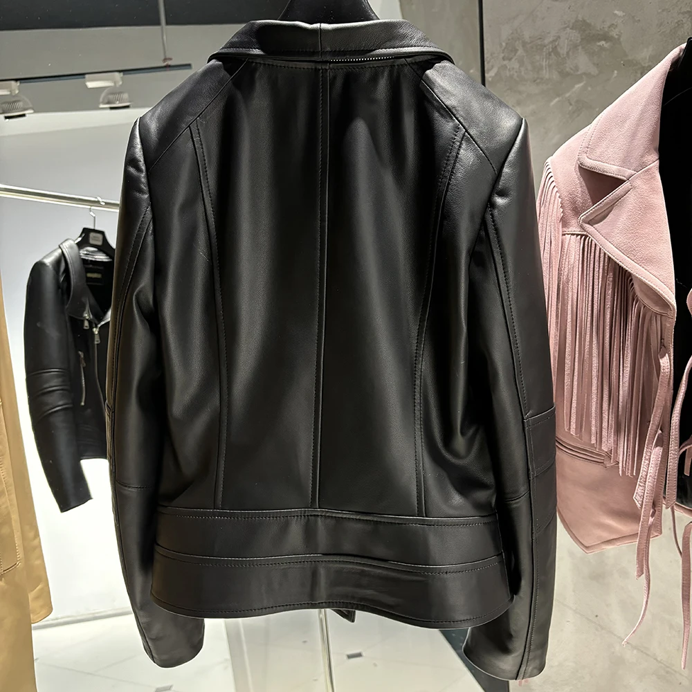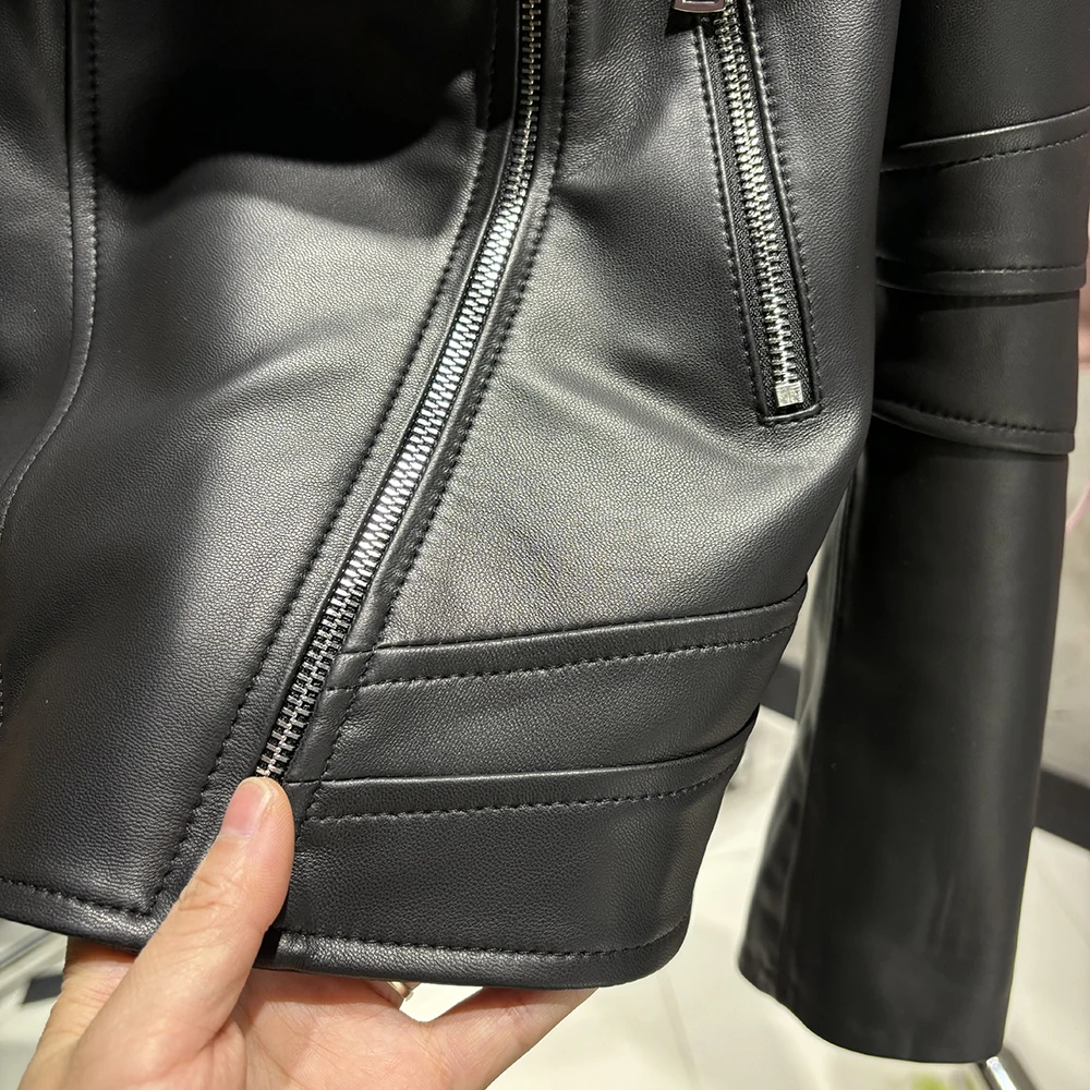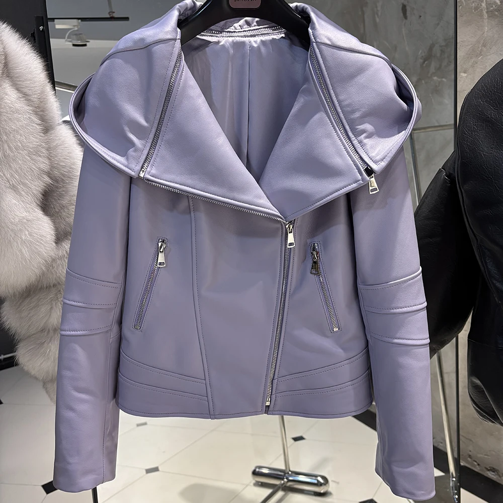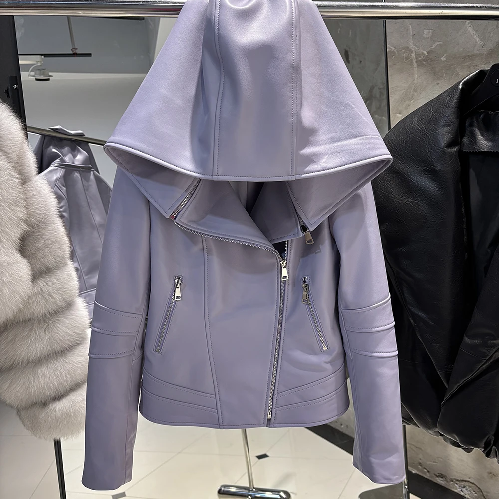 2025 Spring Black Leather Coat Biker Slim Leather Clothes Real Sheepskin Leather Jacket With Hood
