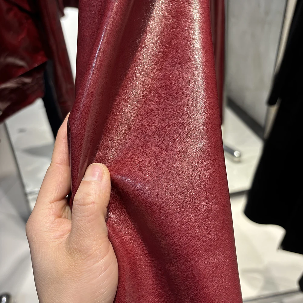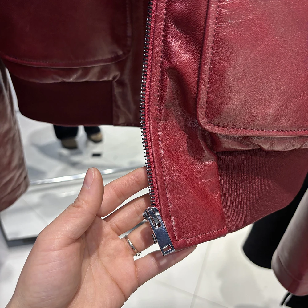 2025 Spring Women Vintage Bomber Clothes Real Sheepskin Leather Coat Red Oversized Oil Wax Leather Jacket