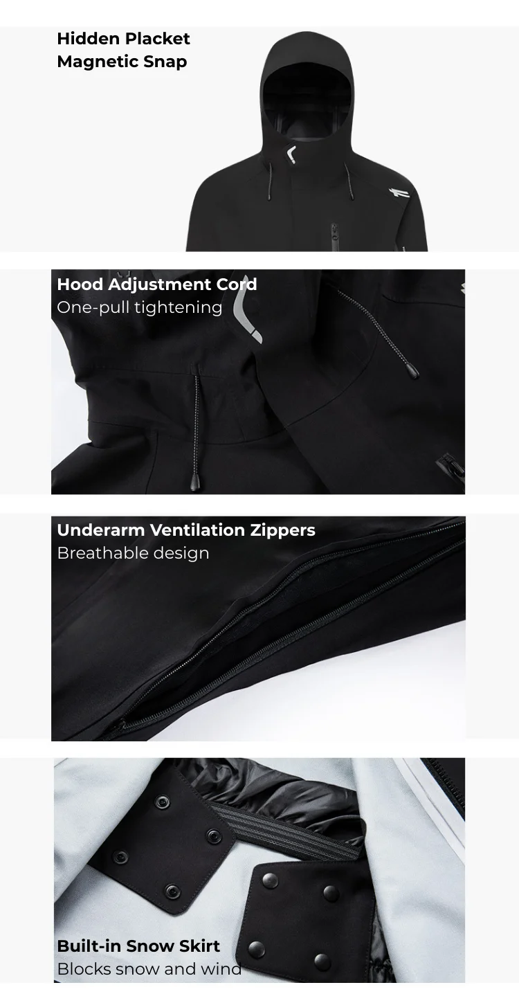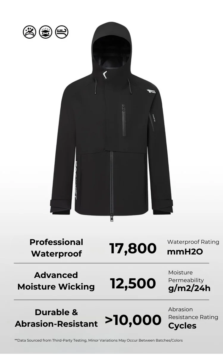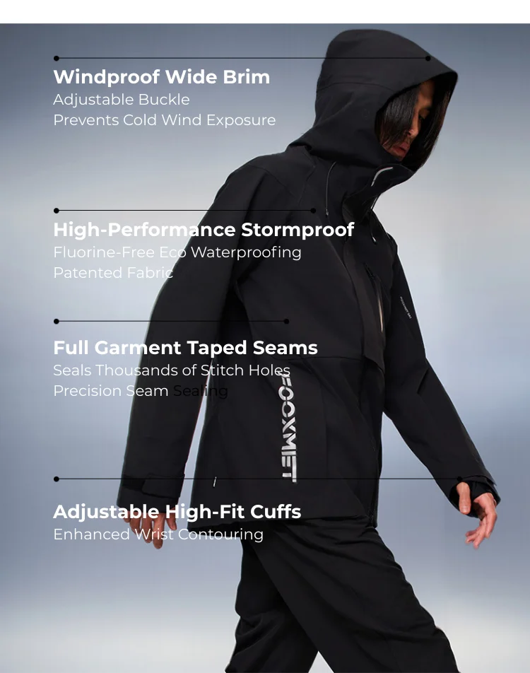 FOOXMET Comfortable Waterproof Hardshell Jacket Outdoor Tactical Hoody for Snowboarding Hiking Camping Solid Woven Coat