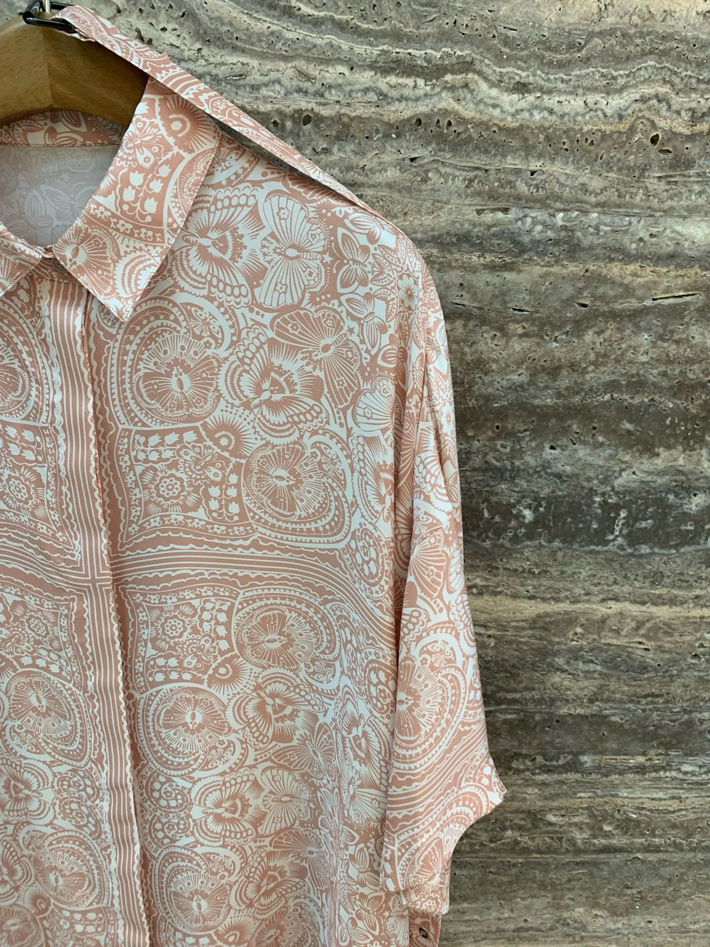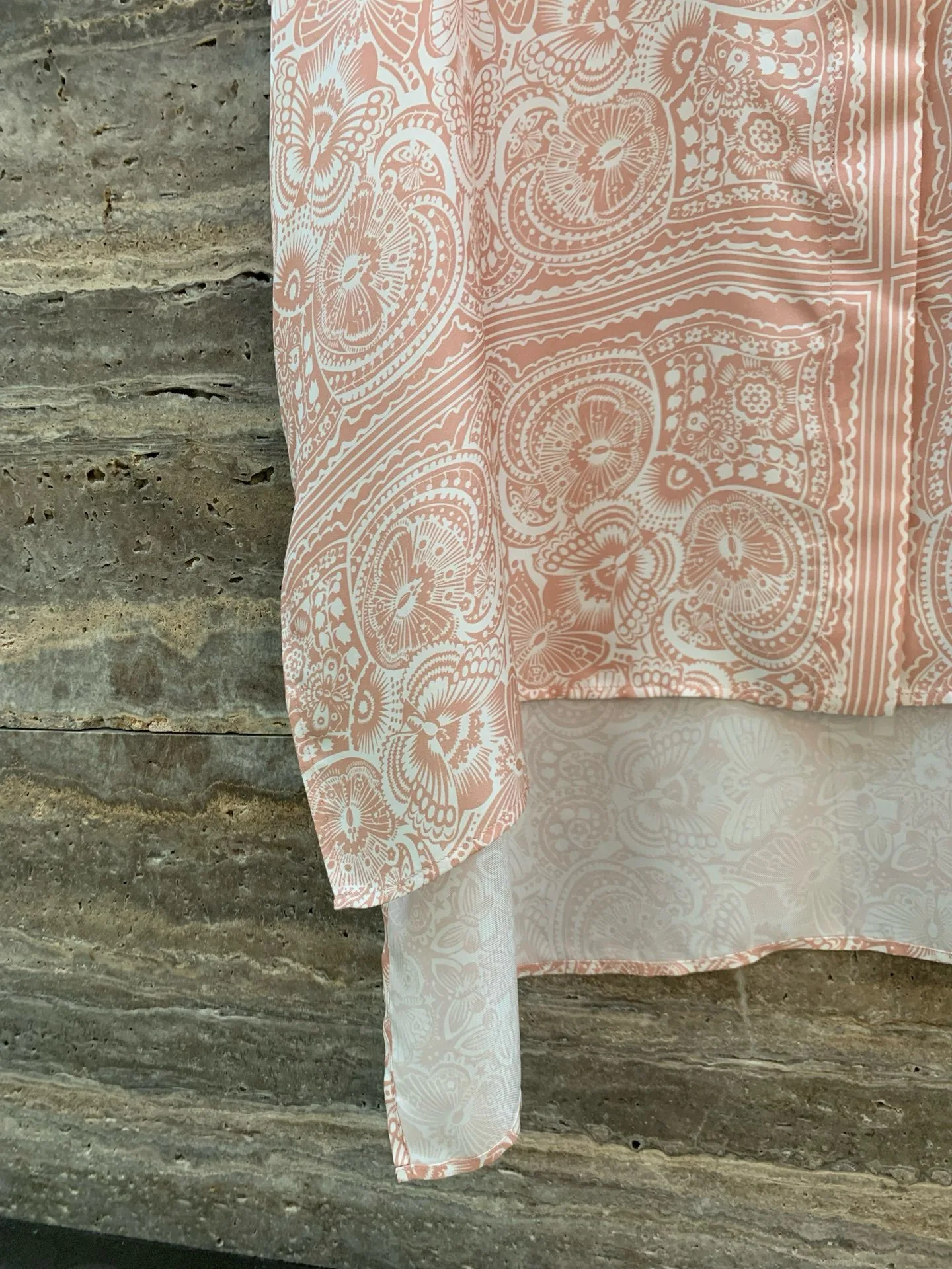Color Artistry: Soft premium pink tone blended with geometric and floral embossed prints, combining vintage elegance and modern romance without ostentation.