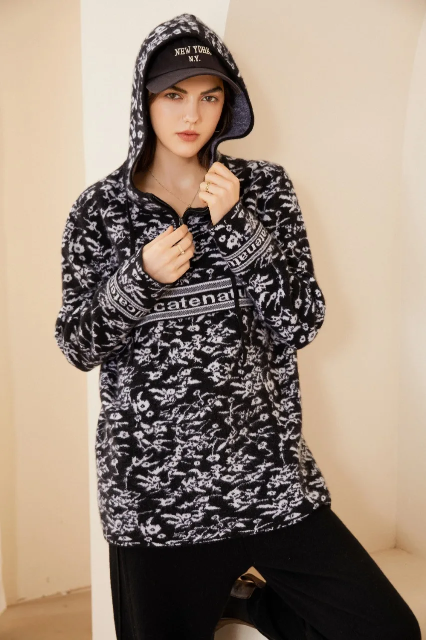 Fashionable Women's Hoodies Sweatshirts Double Jacquard Cashmere Zip Hoodie Sweater for Women Customized Winter Clothes for Men