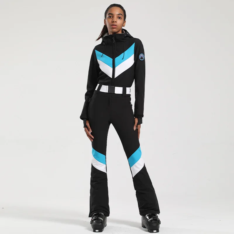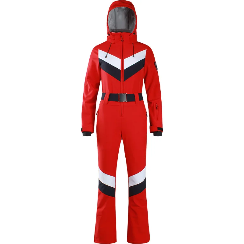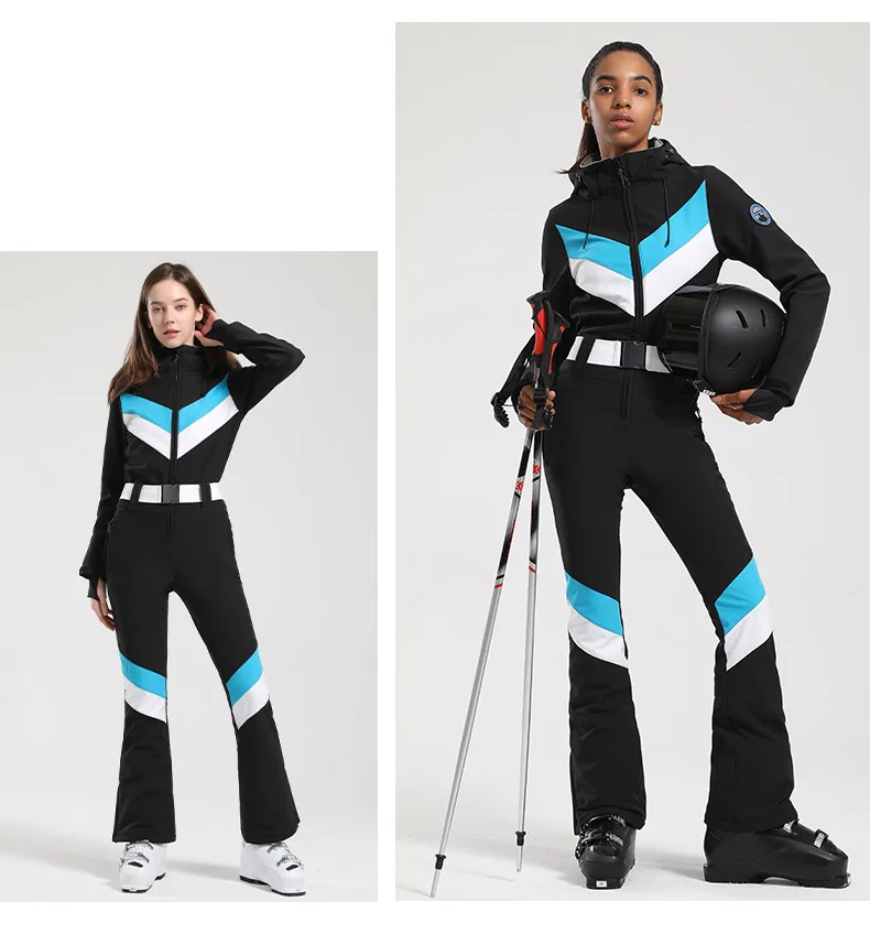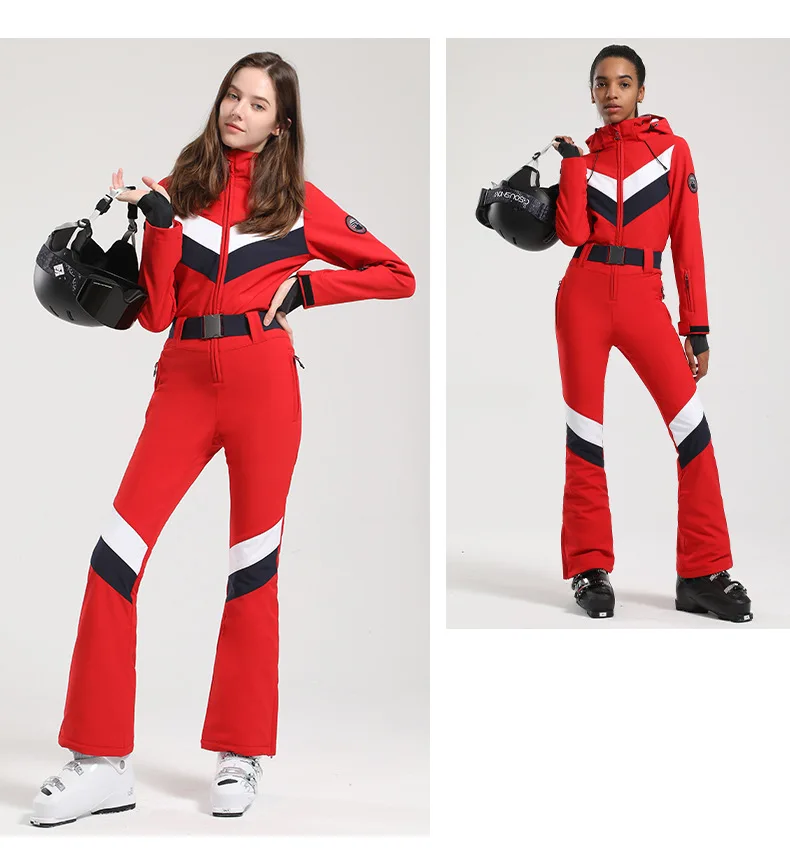 RUIQUWIN 2025 New Women's Windproof Waterproof Ski Suit One-Piece Thickened Breathable with Zipper Pocket Detachable Hood