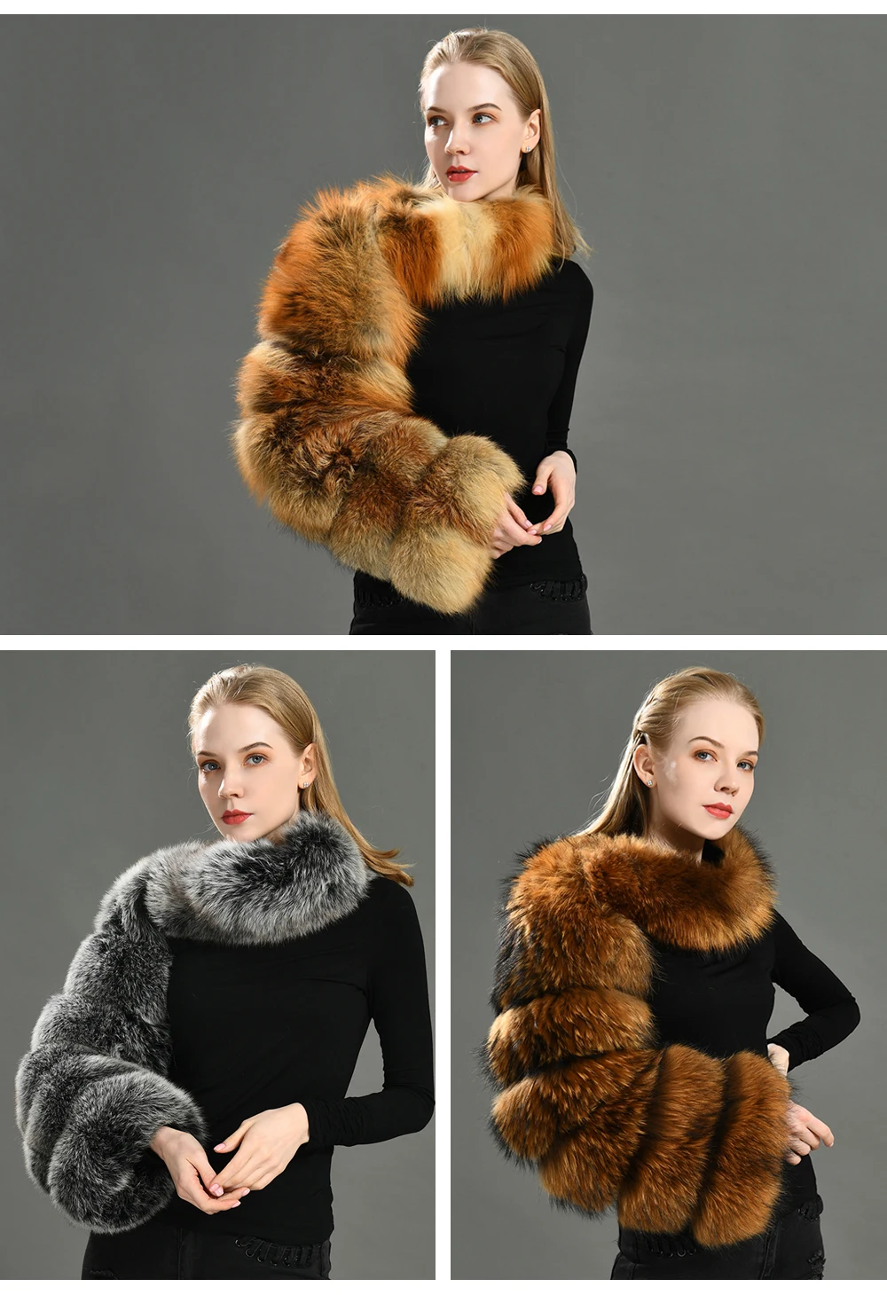 Stylish Design Plush Real Raccoon Fur Coat Custom Colors Winter Autumn Fluffy Soft Round Neck Women Red Fox Fur Sleeve
