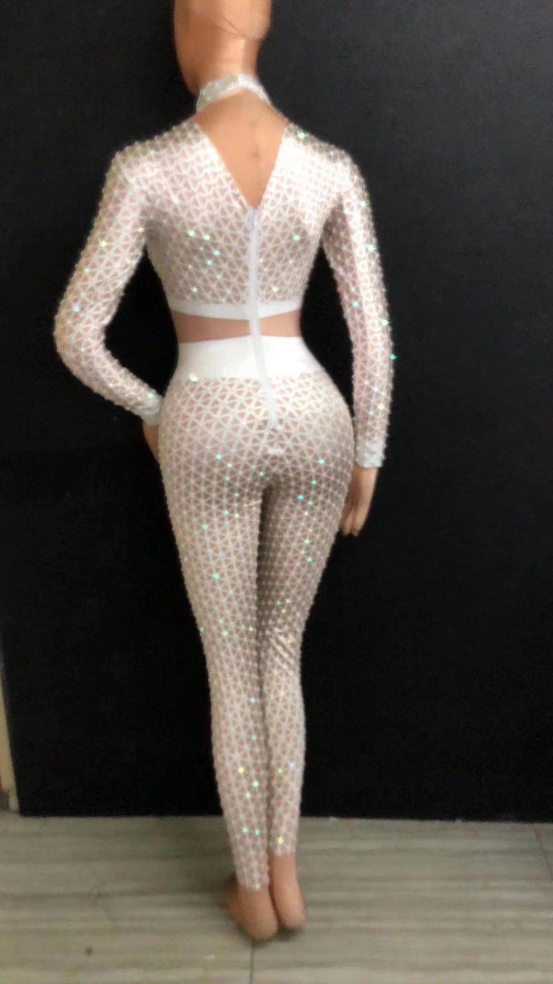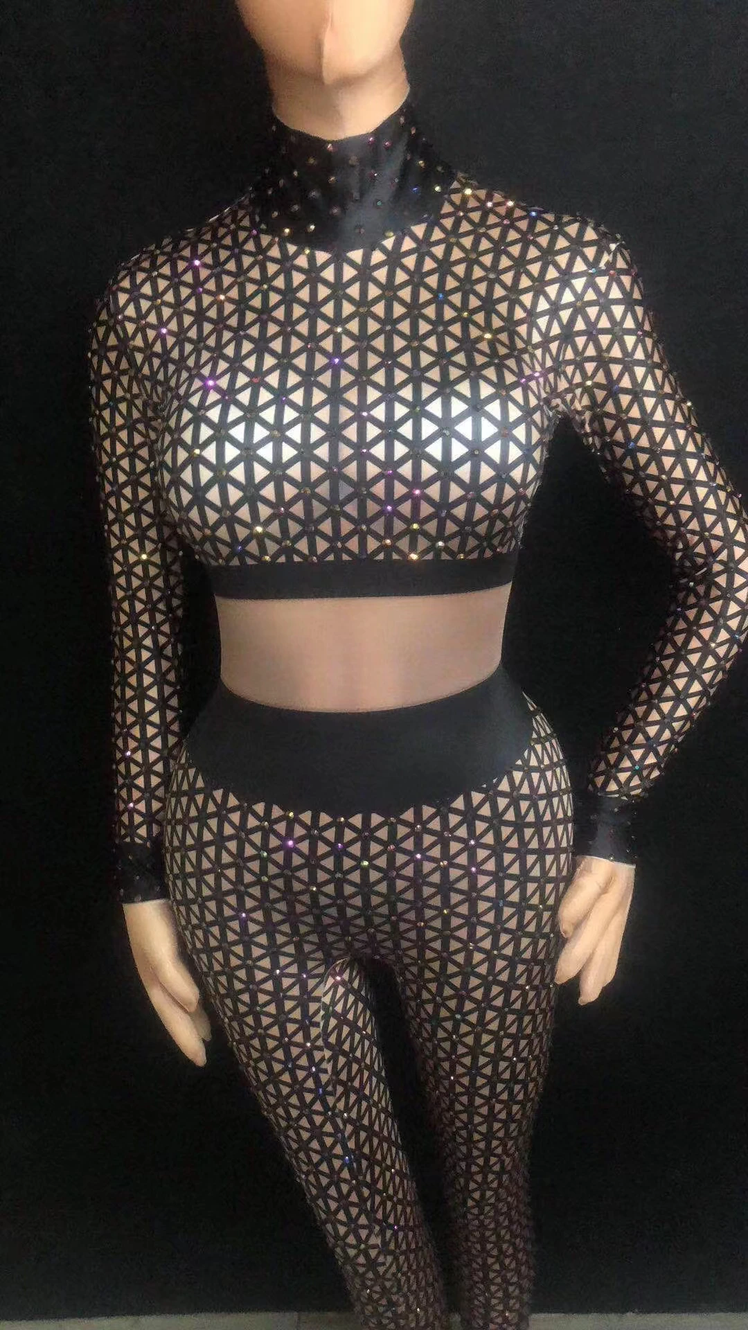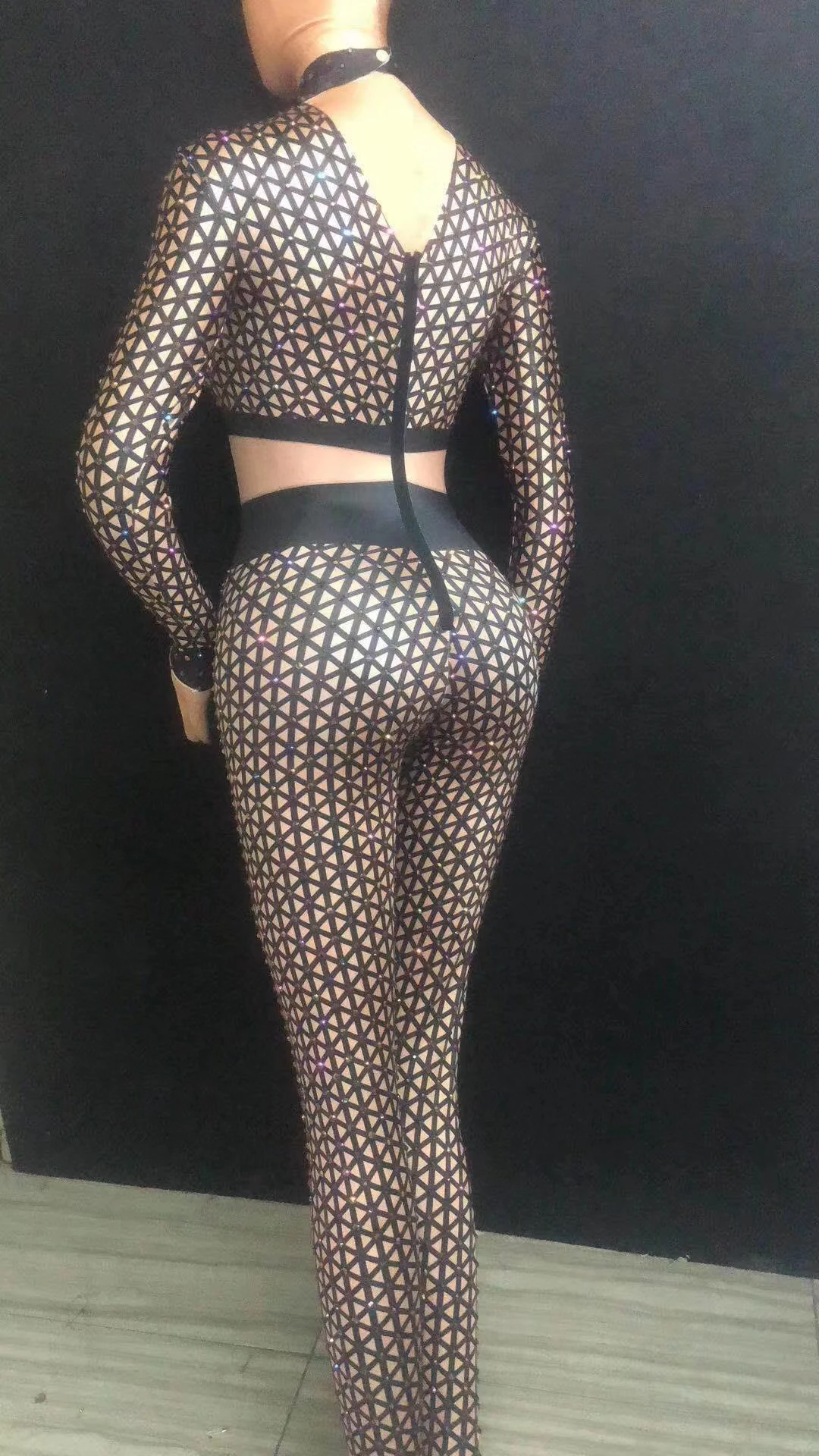 Women's Casual Rhinestone Plaid Jumpsuit for Summer Birthday Party Sexy Bodysuit Stretch Fashion Clothes Black White B134 for