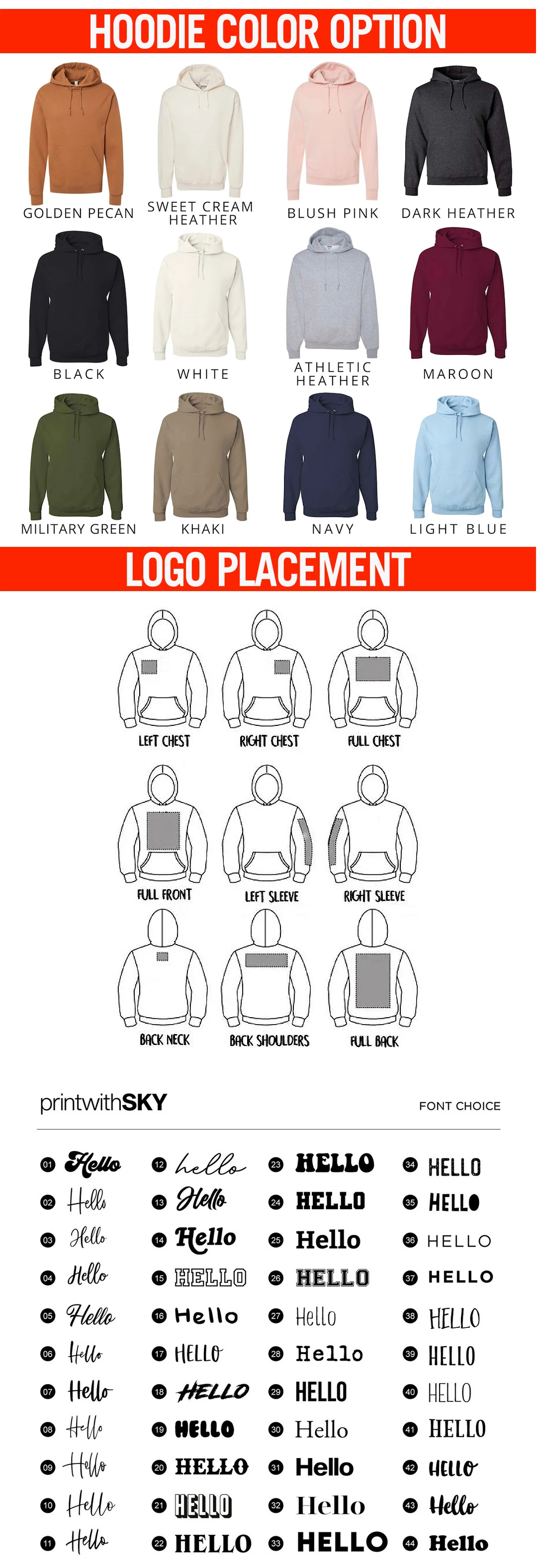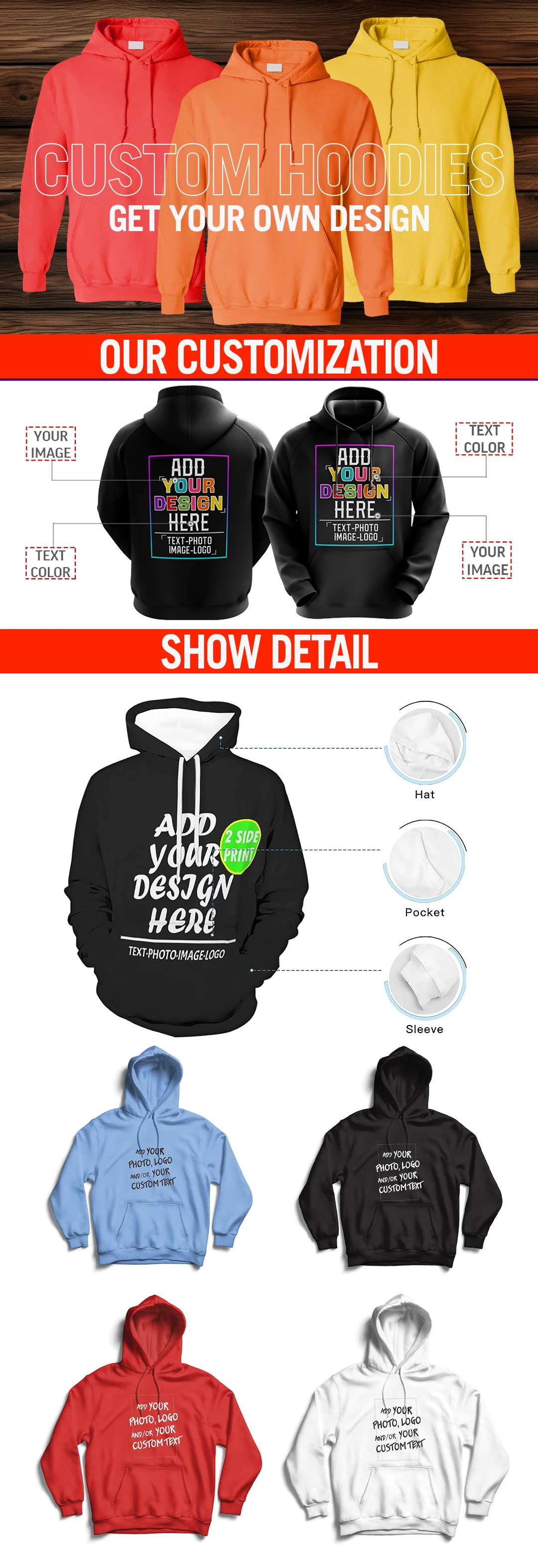 * Polybag: Each hoodie packed in a clear polybag (transparent or branded).