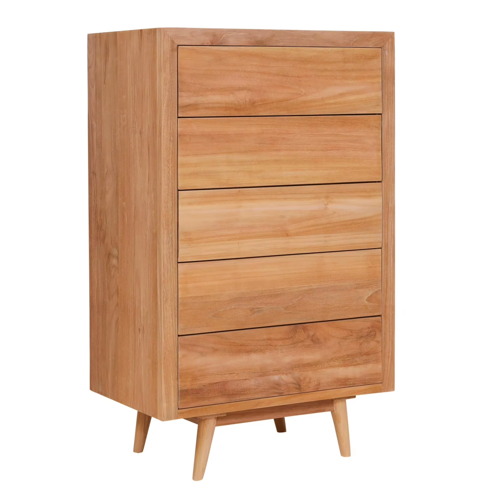 Minimalist Modern Elegance Five-Drawer Solid Teakwood Chest for Living Room or Garage Storage