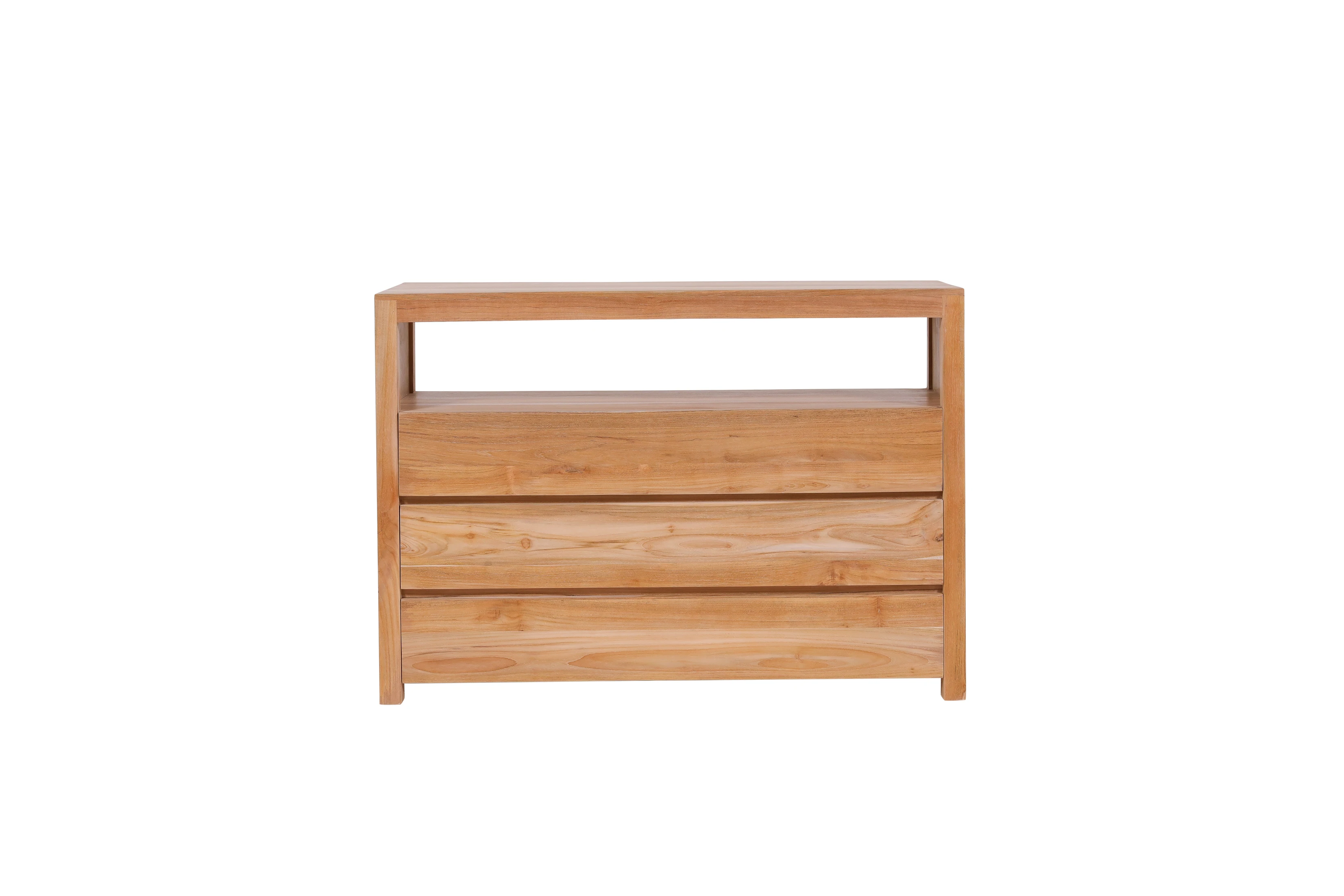 Solid Teakwood Chest with Three Drawers & Open Shelf Functional Elegance for Modern Spaces
