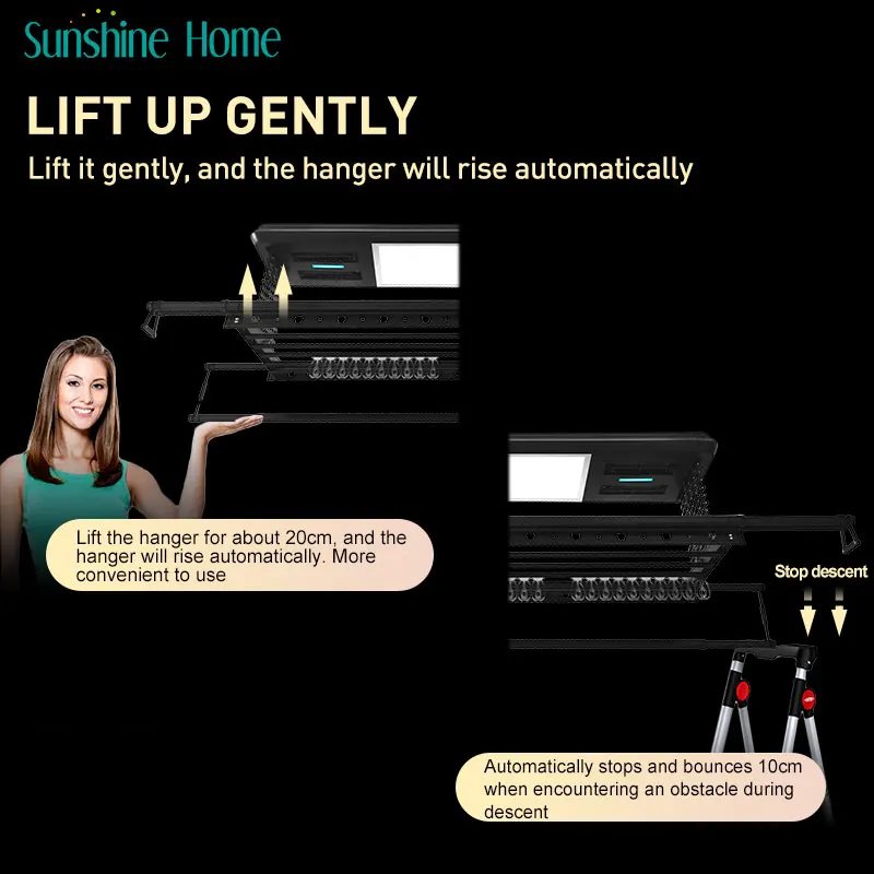 ◆ During the descending process, the clothes rail will stop automatically when encountering obstacles.