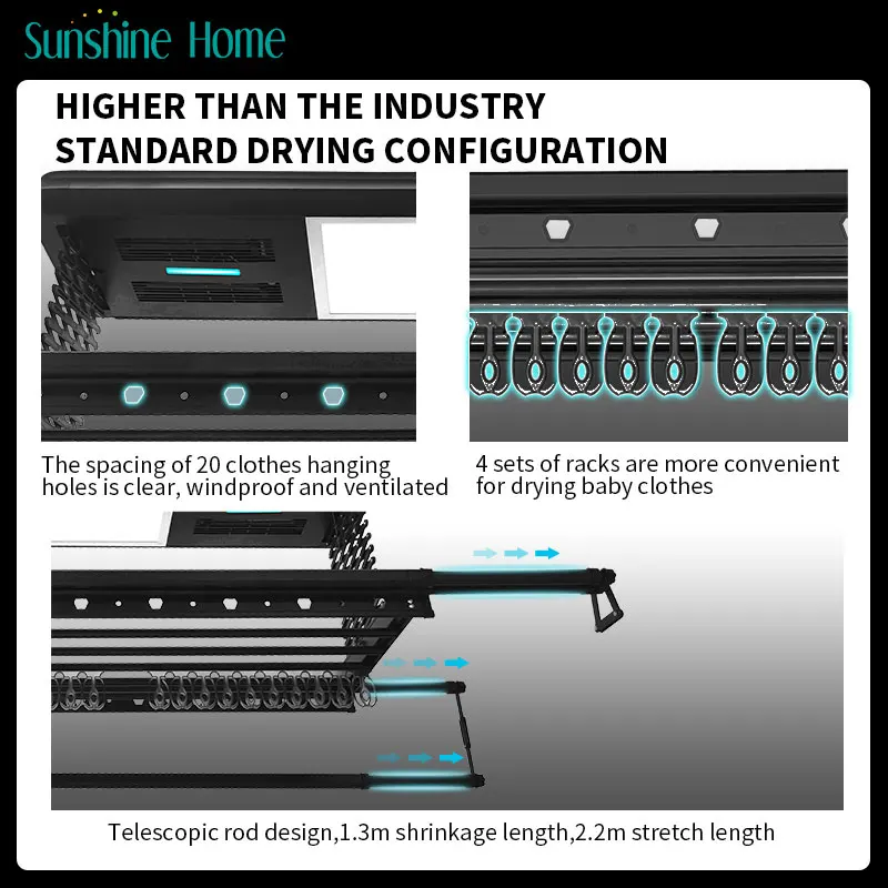 Ceiling mounted smart electric clothes drying rack & hangers Characteristics: