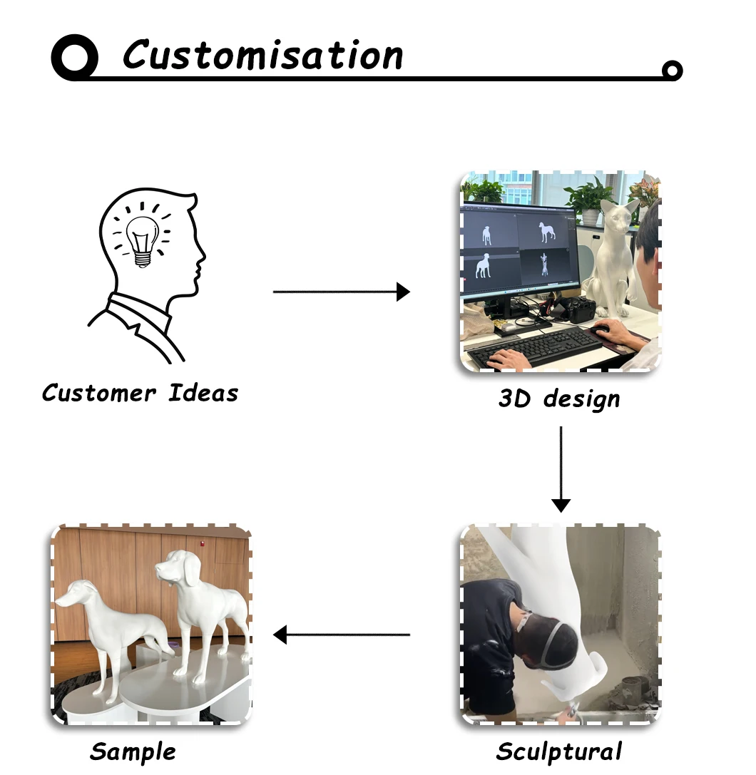 1. **Strong R&D and Design Team**: We have a team of 30 professionals dedicated to R&D and design. With our in-house R&D,design, and production processes, we can quickly respond to market demands and provide customers with end-to-end services from product concept to manufacturing. As a leading company in the dog mannequin industry, we can swiftly launch new products tailored to market needs.