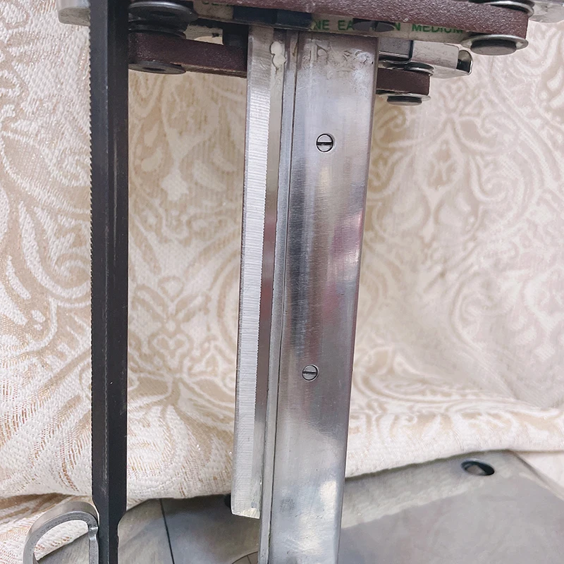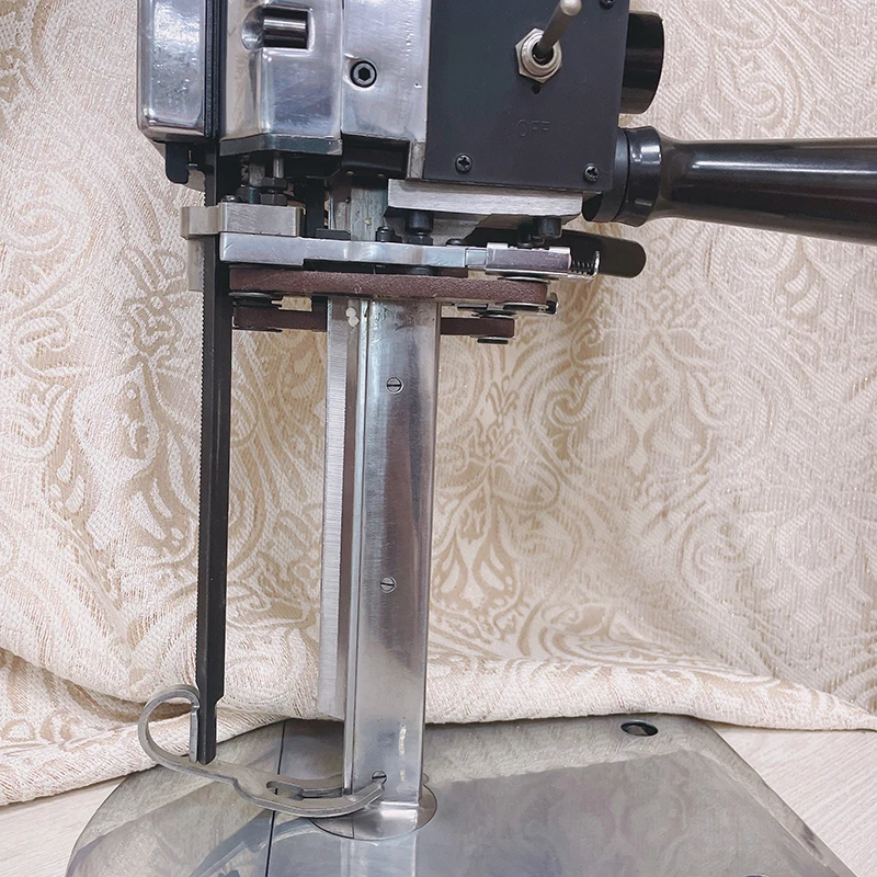1)Suitable for mass trimming cotton, woollen, linen leather and chemical fibre goods, etc 2) Neal cutting, small-curvature radius curvilinear cutting 3)Low noise, stable running, easy to operate and high effciency. 4)Incorporated with an auto knife-grinding device, easier to operate