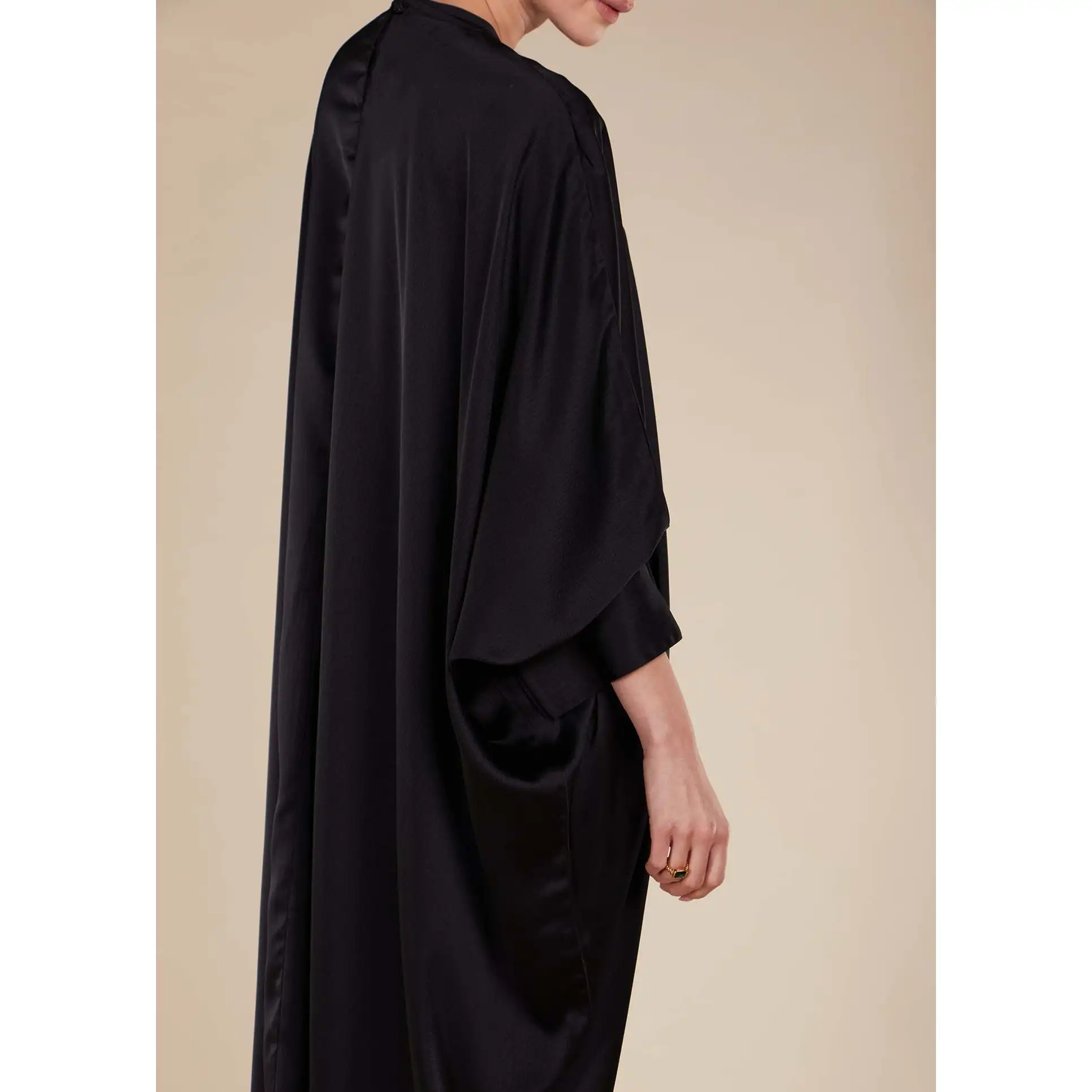 The Self Print Kaftan is made from a satin self-print fabric with a slightly heavier weight, creating a fluid and comfortable loose fit. This versatile kaftan features a round neckline, cuffed sleeves, and a discreet opening at the back. For a chic and elevated look, pair it with gold accessories. Perfect for any occasion.