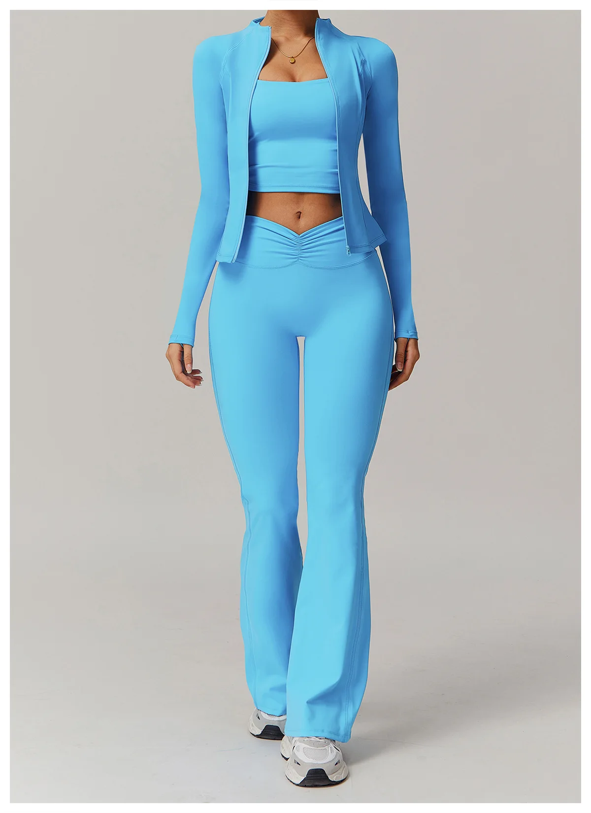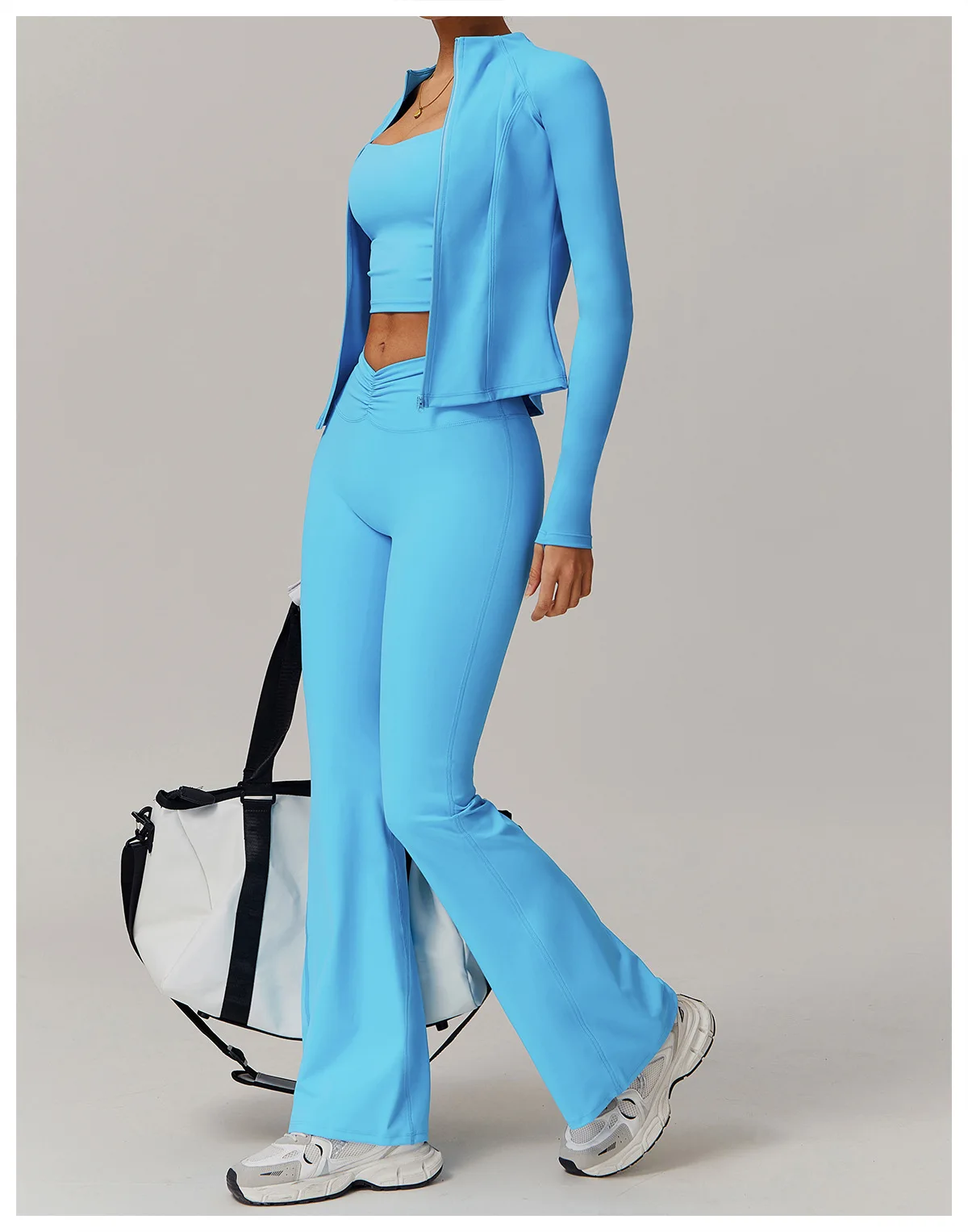 Custom Logo 2025 Gym Fitness Yoga Clothes Breathable Sports Tank Top Shorts Flared Pants Leggings Athletic Wear 4pcs Workout Set