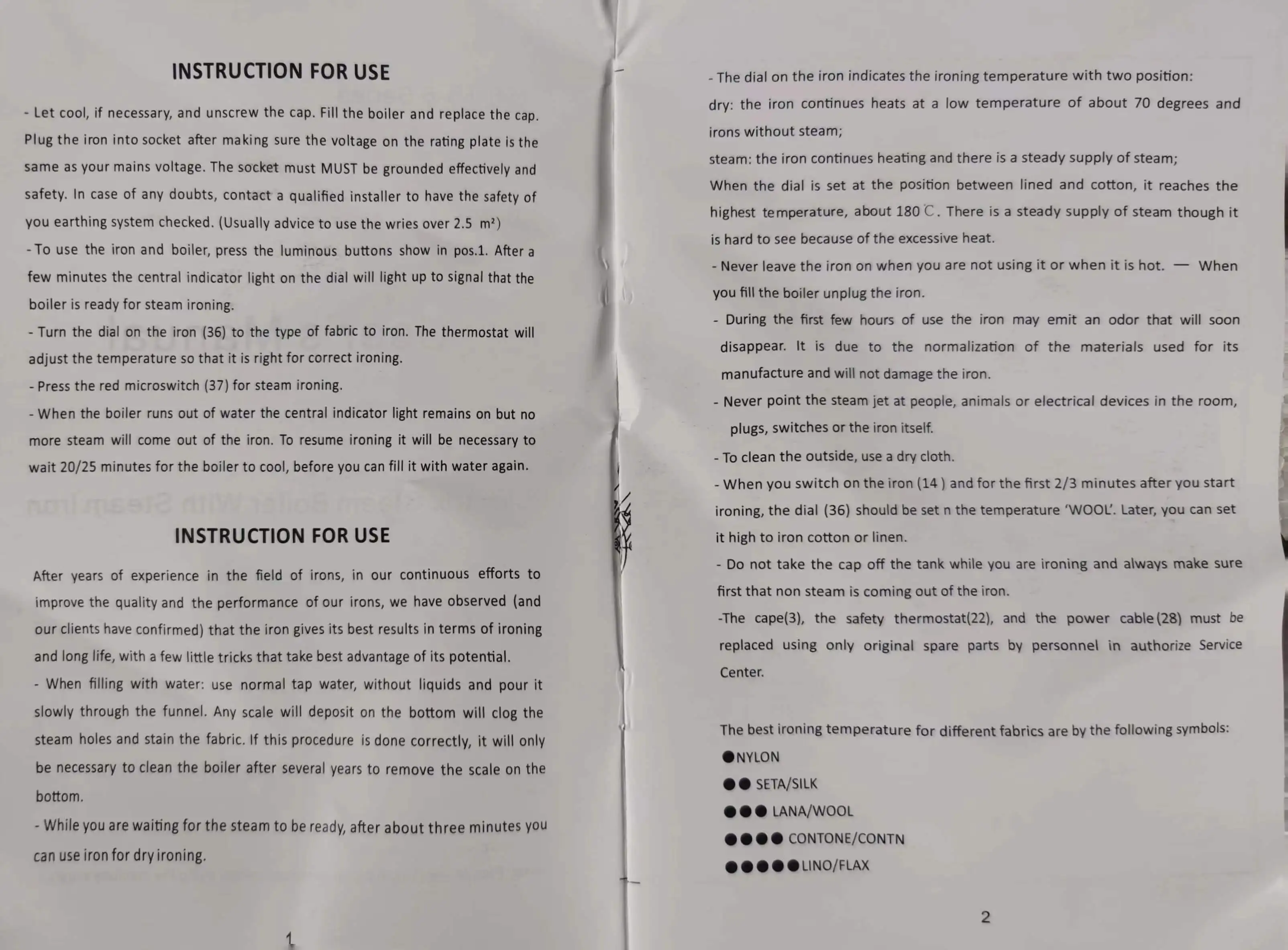 1 | Boiler Heater | 1600W | 3 | Iron Heater | 900W |