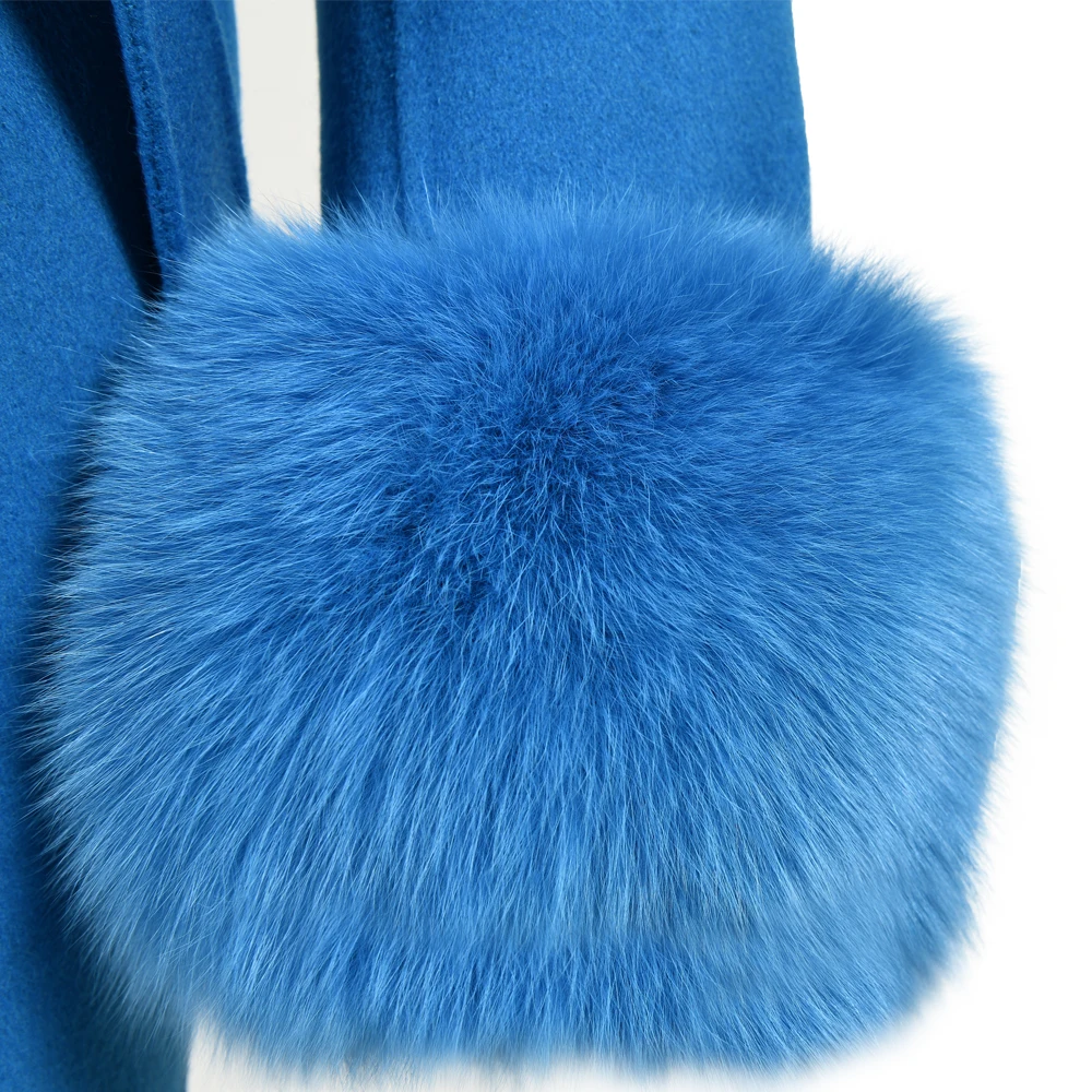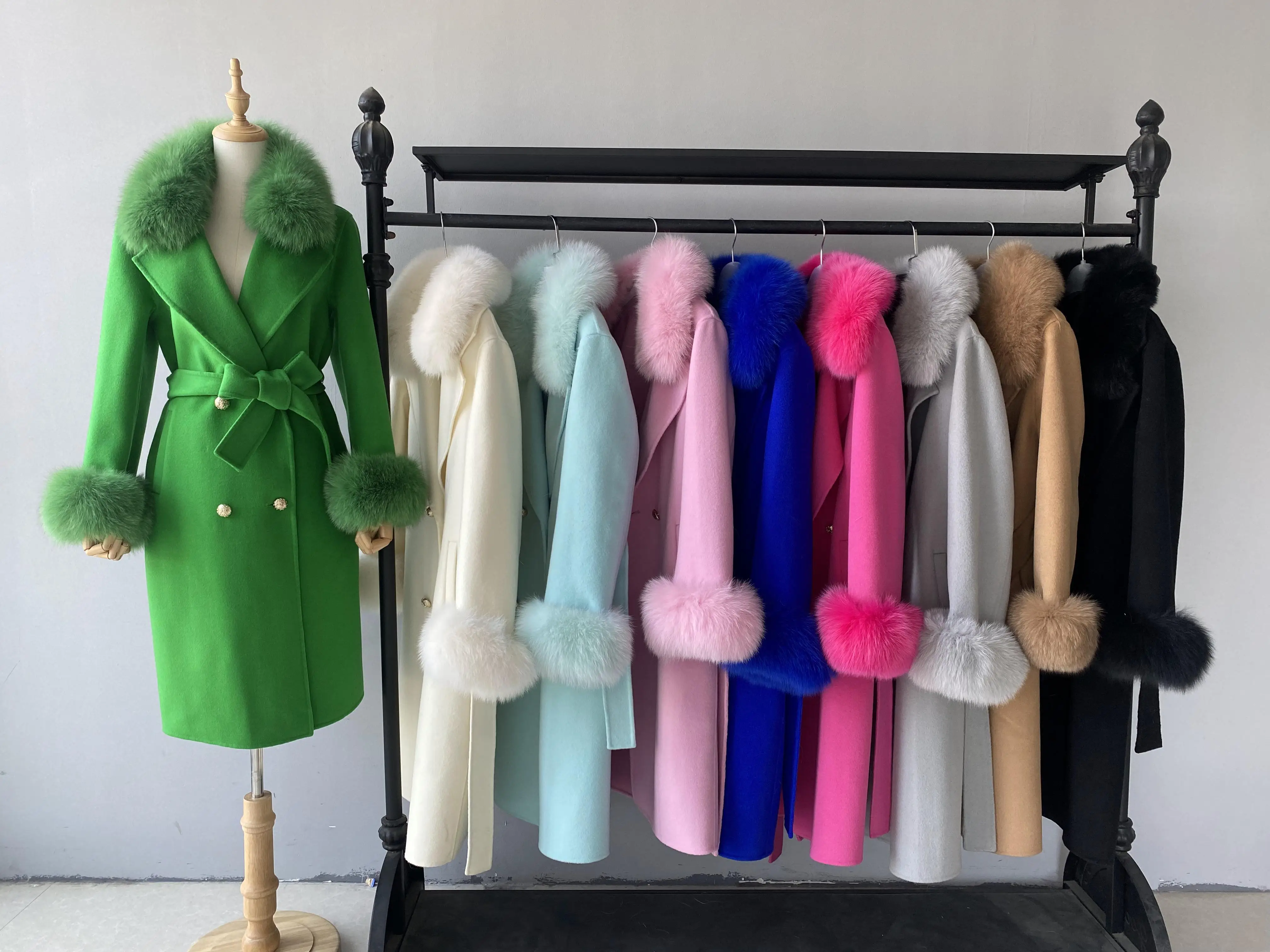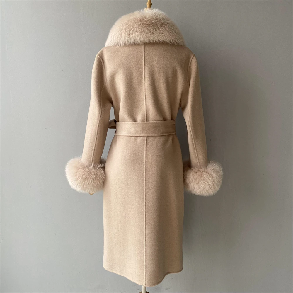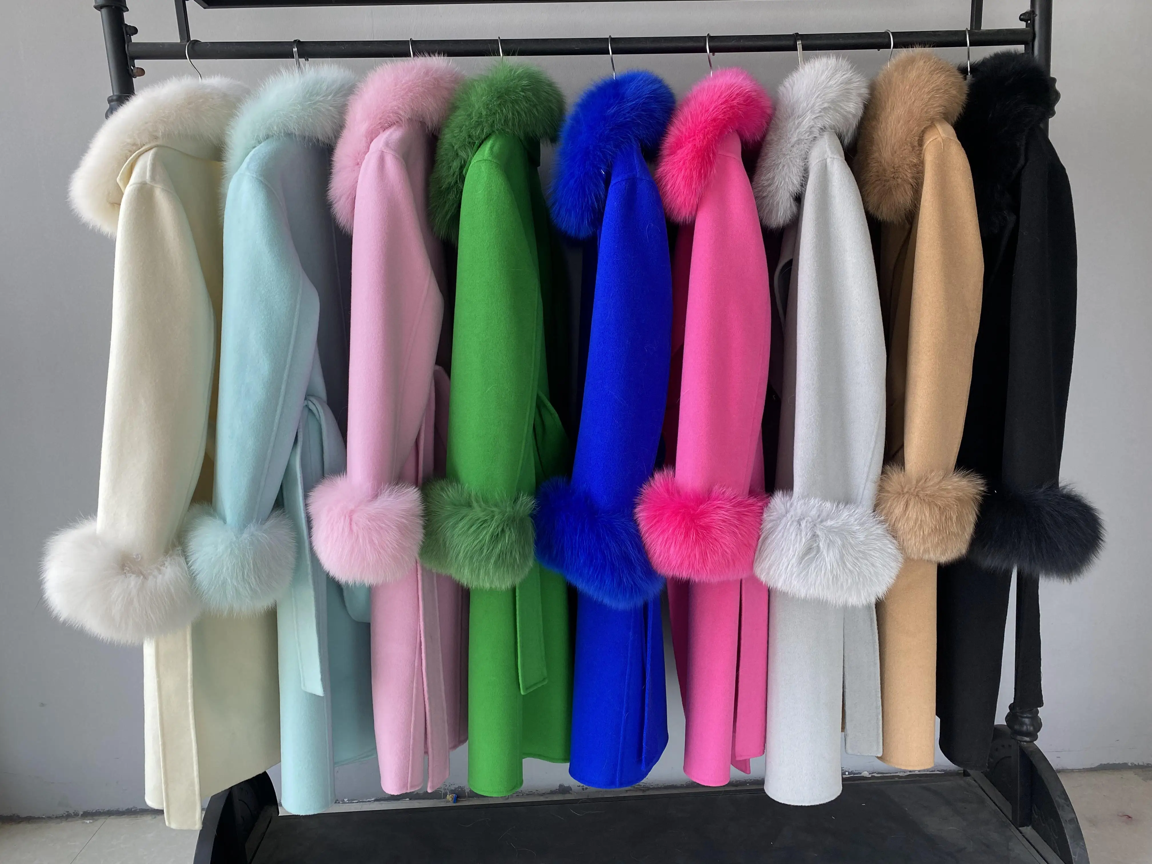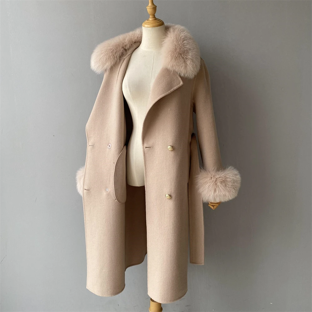 Classic Style Women Double Layer Wool Handmade Sew Coat Wholesale Women Cashmere Wool Coat With Real Fur