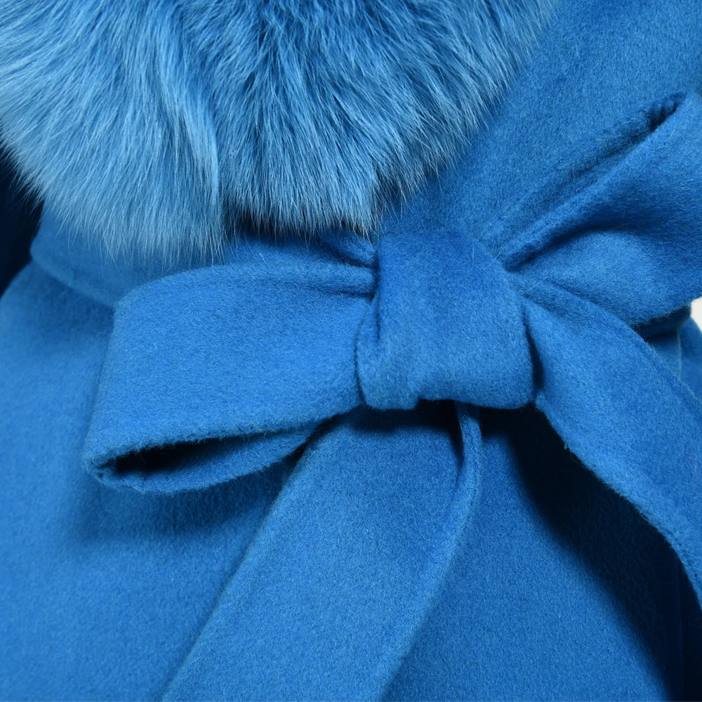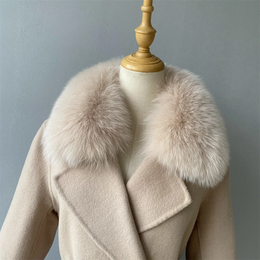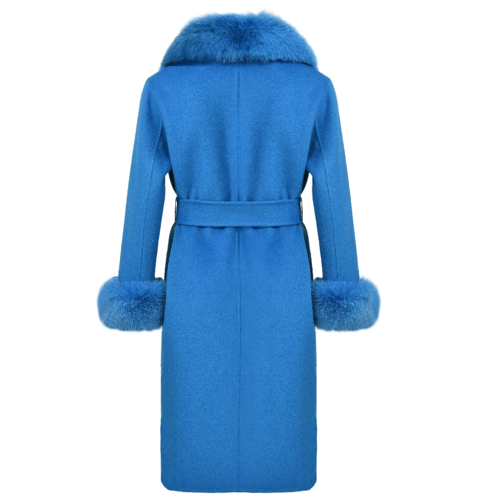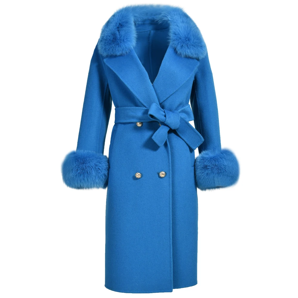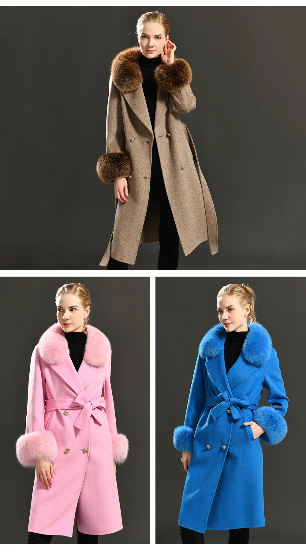 Classcial Style Women Double Layer Wool Handmade Sew Coat Wholesale Women Cashmere Wool Coat With Real Fur